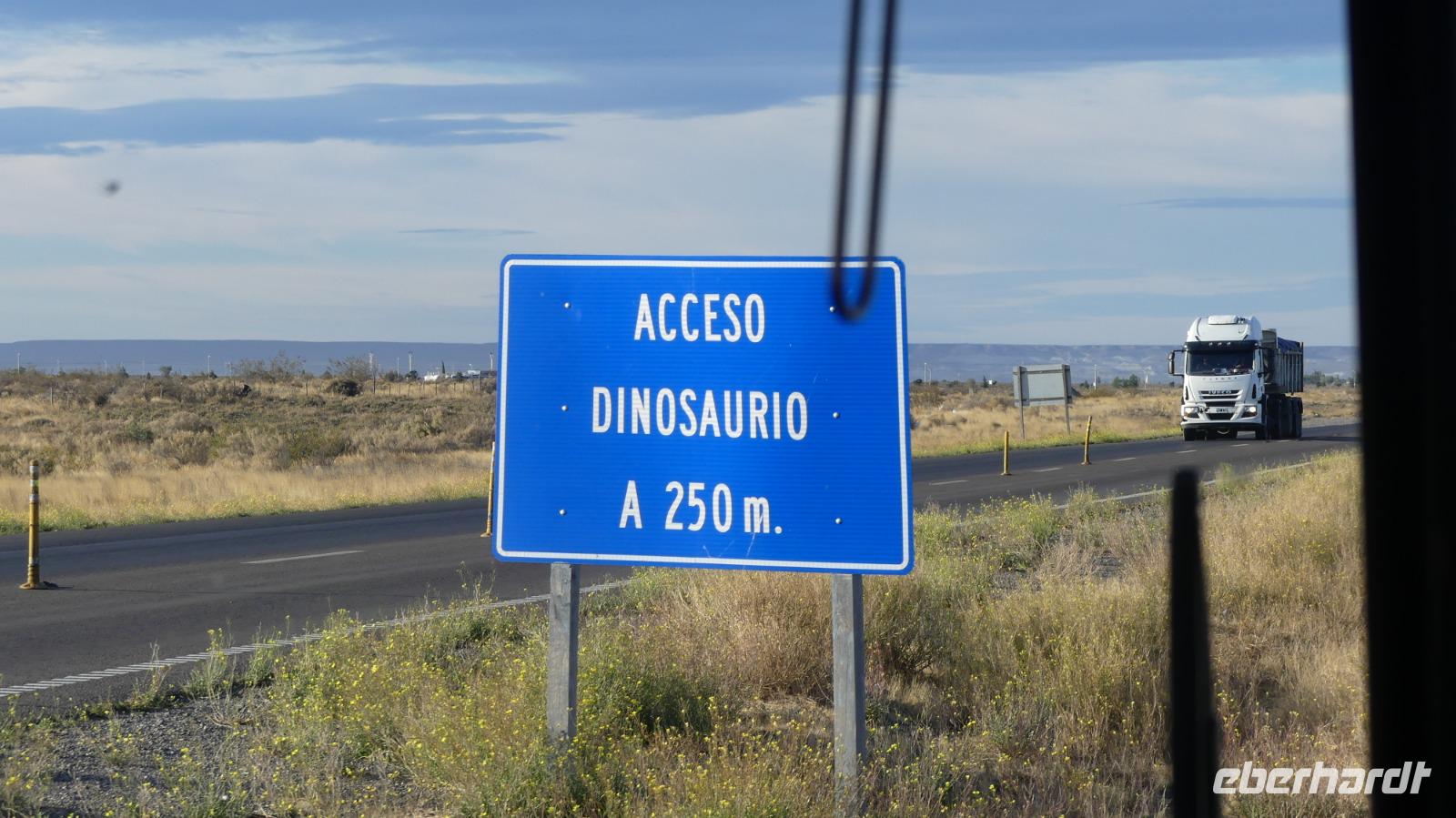 Bei der Stadt Trelew erinnert ein Sauriermodell in Echtgröße an den Fund des Saurierskeletts in dieser Region. Es soll sich um die weltweit größte Saurierart handeln. Zehn Uhr erreichen wir Punta Tombo und können auf einem ca. 1,5 Kilometer langen Pfad die Welt der Magellan Pinguine erkunden. Einige sehen wir ganz aus der Nähe wie sie sich putzen oder Schutz vor der Sonne suchen unter einem Strauch oder in ihrer Erdhöhle. Am Ende des Pfades sind es wohl einige tausend Pinguine, die sich am Strand tummeln - beeindruckend! Insgesamt sollen es ca. 60.000 Magellan Pinguine sein, die an diesem Küstenabschnitt nisten, bis sie im März in den Atlantik zurückkehren. Dort bringt ihnen der warme Brasilstrom reichlich Nahrung.