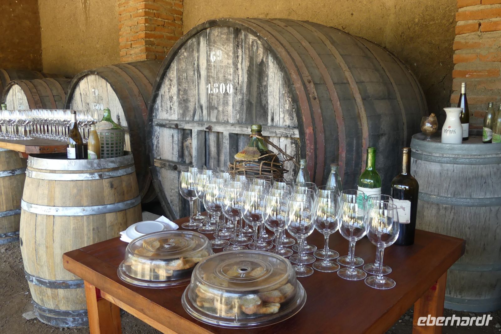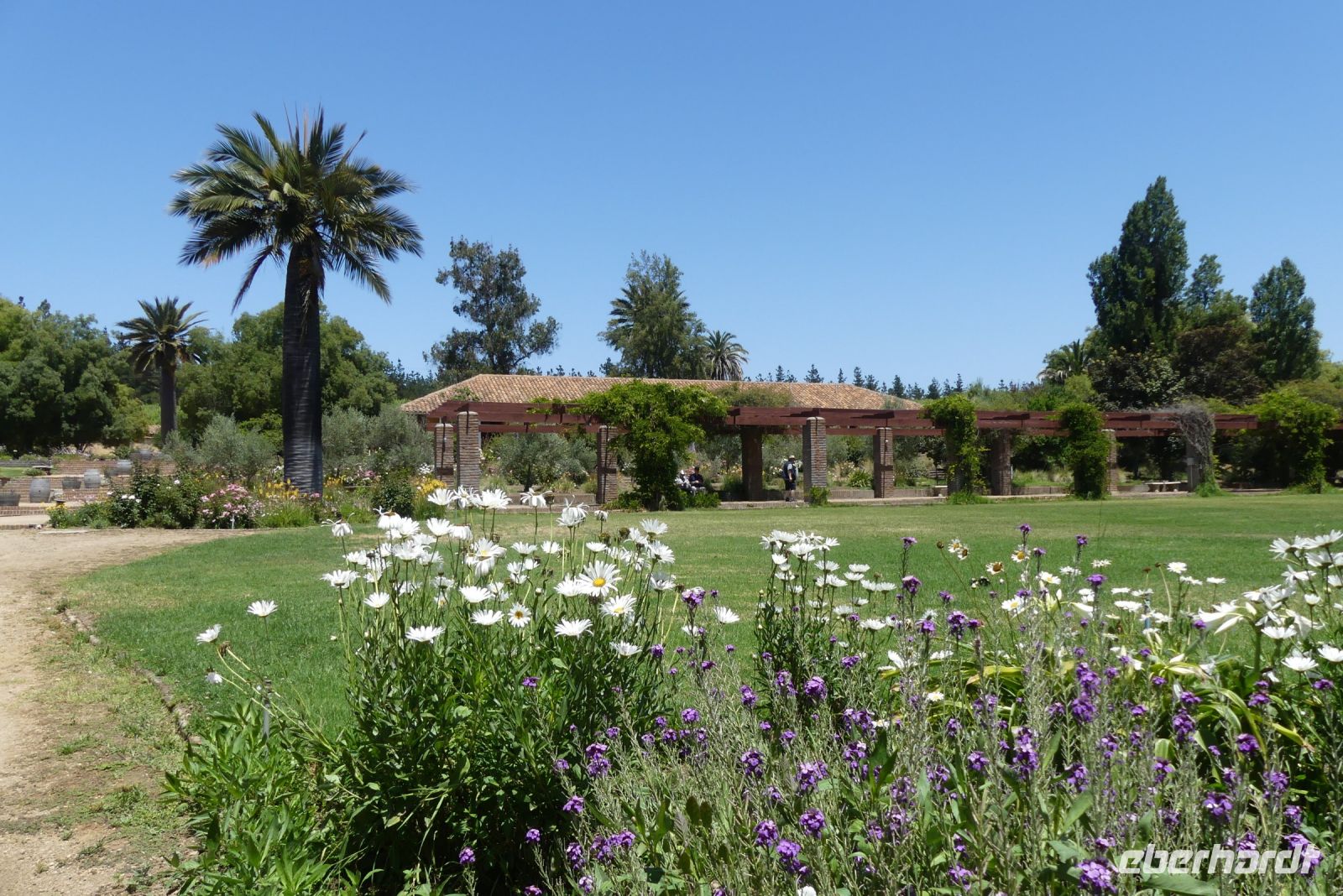 Inzwischen hat die Sonne den Nebel besiegt und für uns geht es weiter zum Matetic Weingut. Der Name des Weingutes geht auf die kroatische Gründerfamilie zurück. Es ist ein schönes Anwesen mit einer Park ähnlichen Anlage in der viele Sommerblumen blühen. Nach dem Mittagessen, natürlich inklusive Wein aus dem hiesigen Keller, bekommen wir eine fachkundige Führung zum Weingut und zum ökologischen bzw. biodynamischen Weinanbau. Die Führung geht dann über in die Verkostung von vier Weinen. Etwas ungewohnt ist dabei allerdings, dass die Weinprobe im Stehen stattfindet.