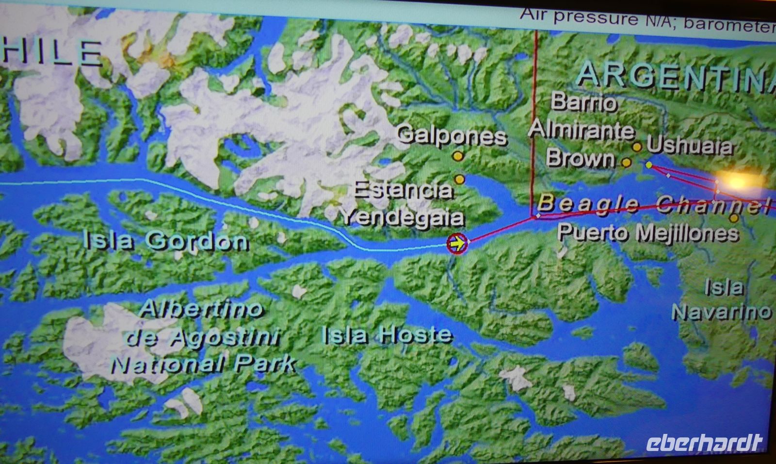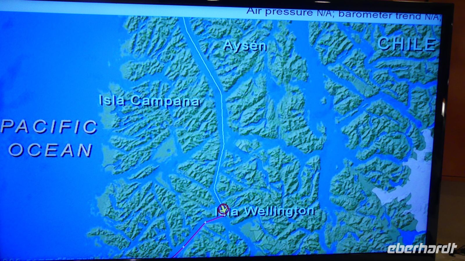 Nach ruhiger Nacht aufgrund der Passage ruhiger Gewässer in den Fjorden treffen wir uns vormittags im Vortragsraum „Borneo“. Ich habe einen Powerpointvortrag zu Patagonien, Feuerland und den nächsten Stationen vorbereitet.
