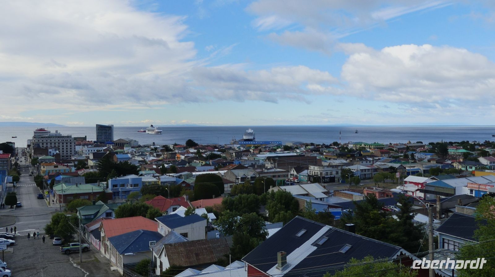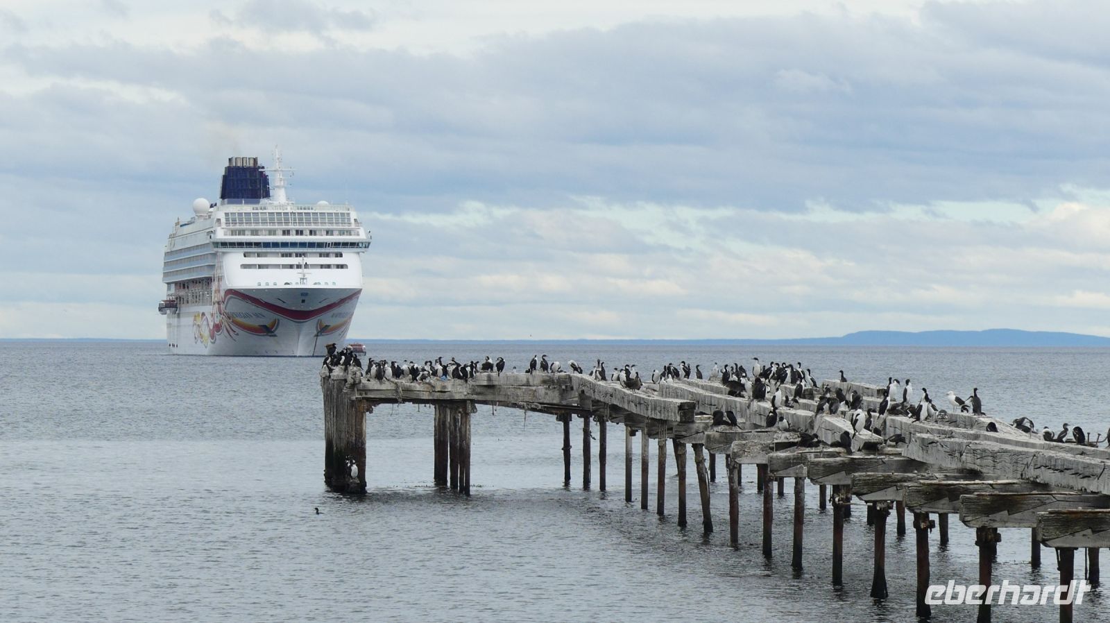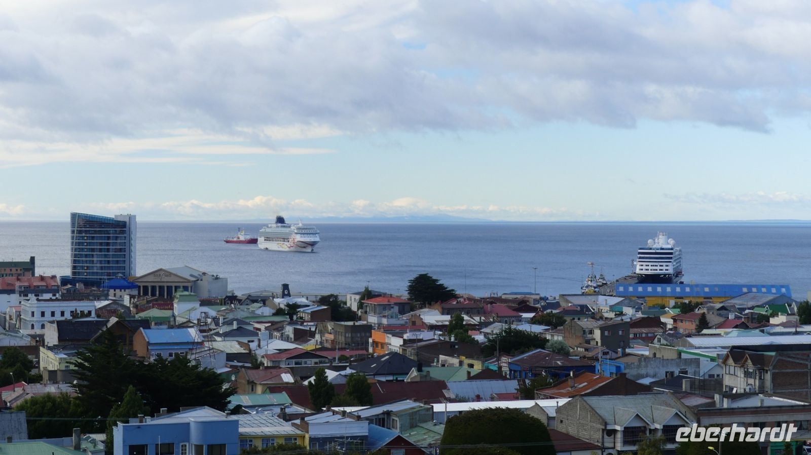 Wir liegen von 6.00 Uhr bis 18.00 Uhr vor Punta Arenas, der südlichsten Kontinentalstadt der Welt und an der Magellanstraße gelegen. Für heute sind 10 bis 15 Grad angesagt, bei einem trockenem Sonne-Wolken-Mix. Also gute Bedingungen für Erkundungen in und um Punta Arenas. Fünf Gäste starten bereits am frühen Morgen mit einem Katamaran zu einer Pinguinkolonie. Sie werden am Nachmittag voller Begeisterung zurückkehren und von vielen Magellanpinguinen, Kormoranen, Möwen, Delphinen, Robben und Walen berichten.