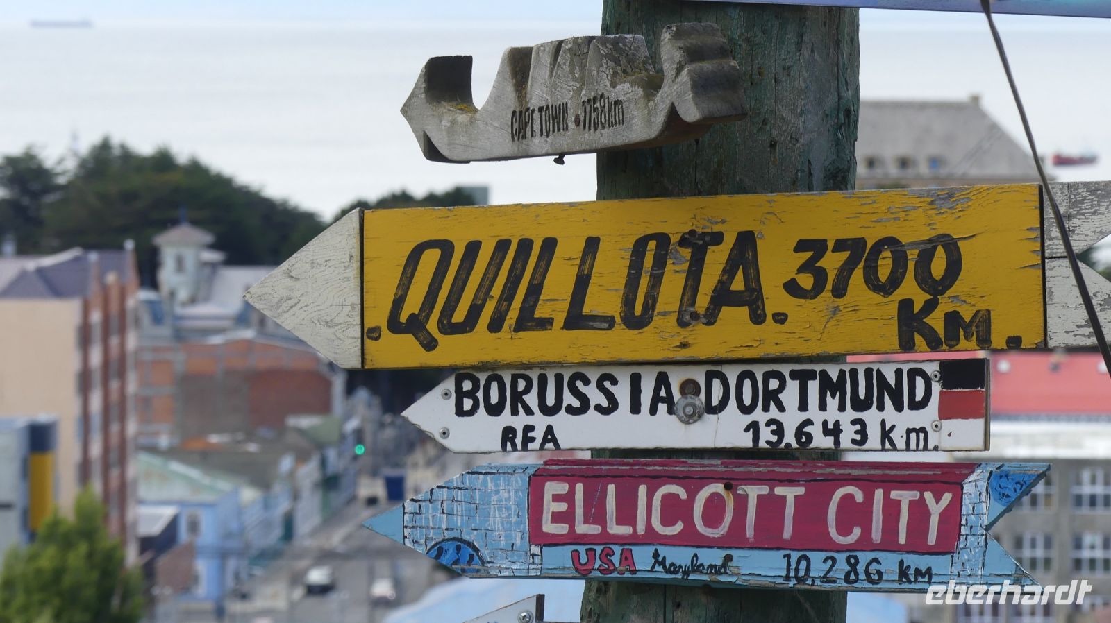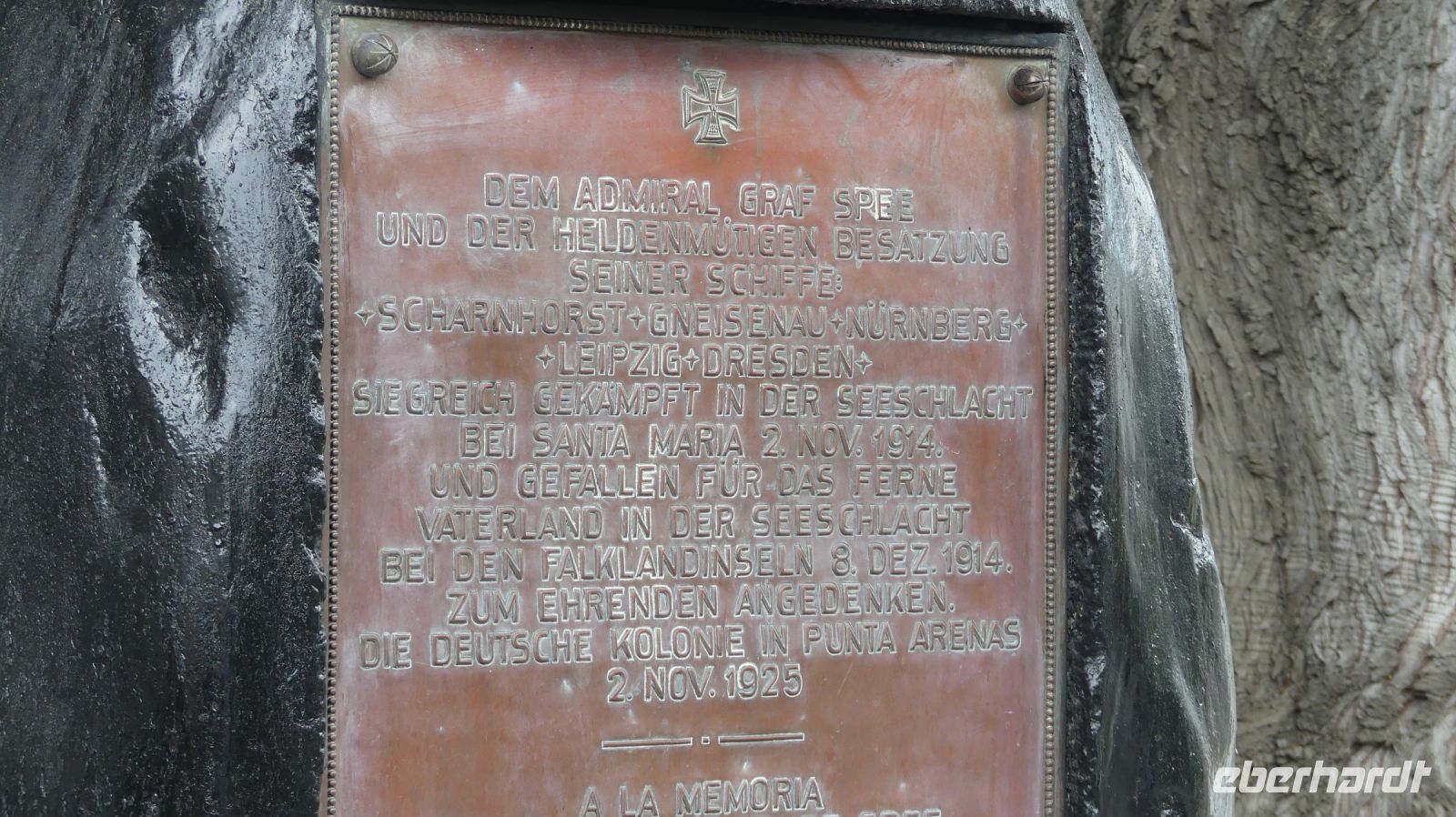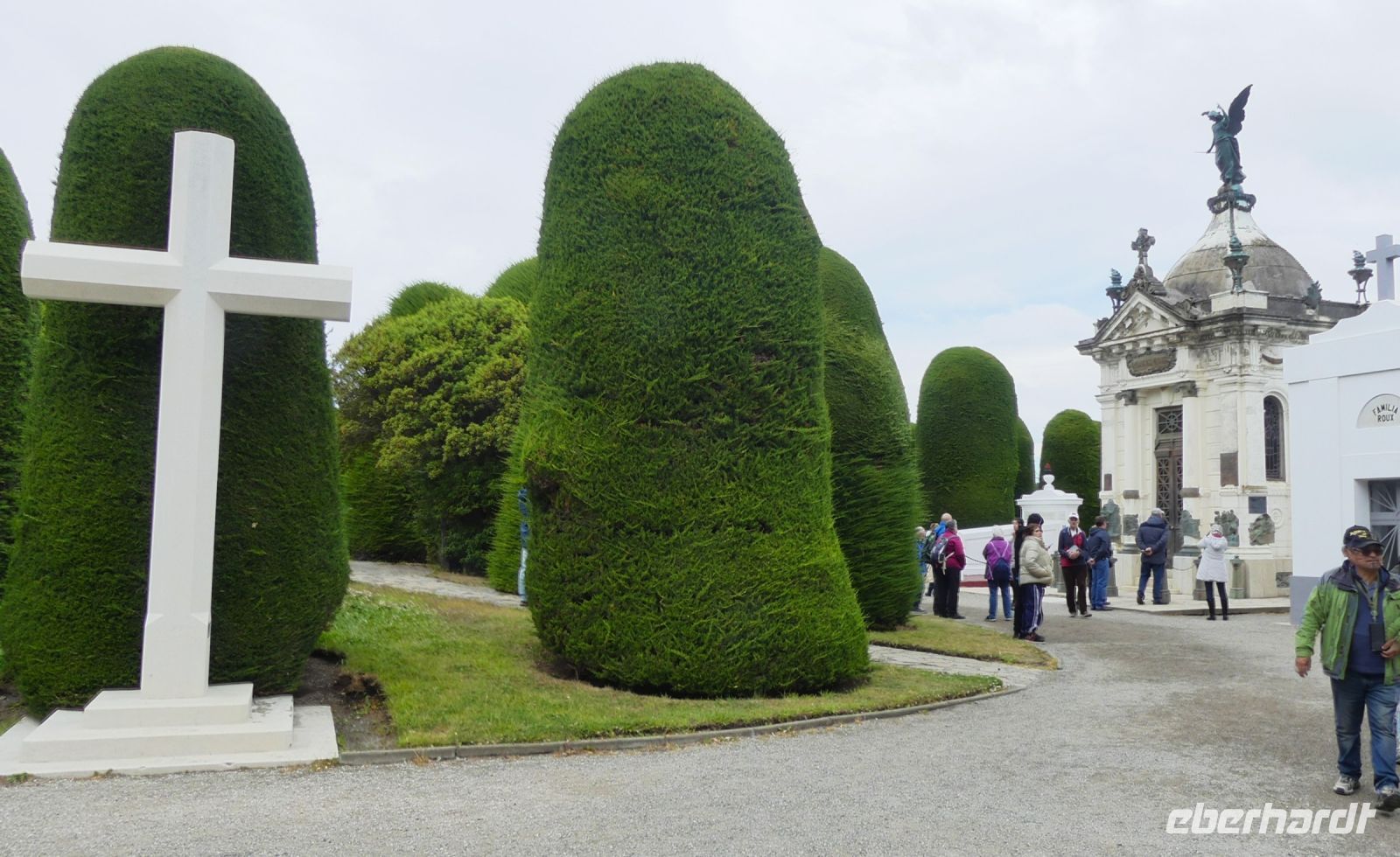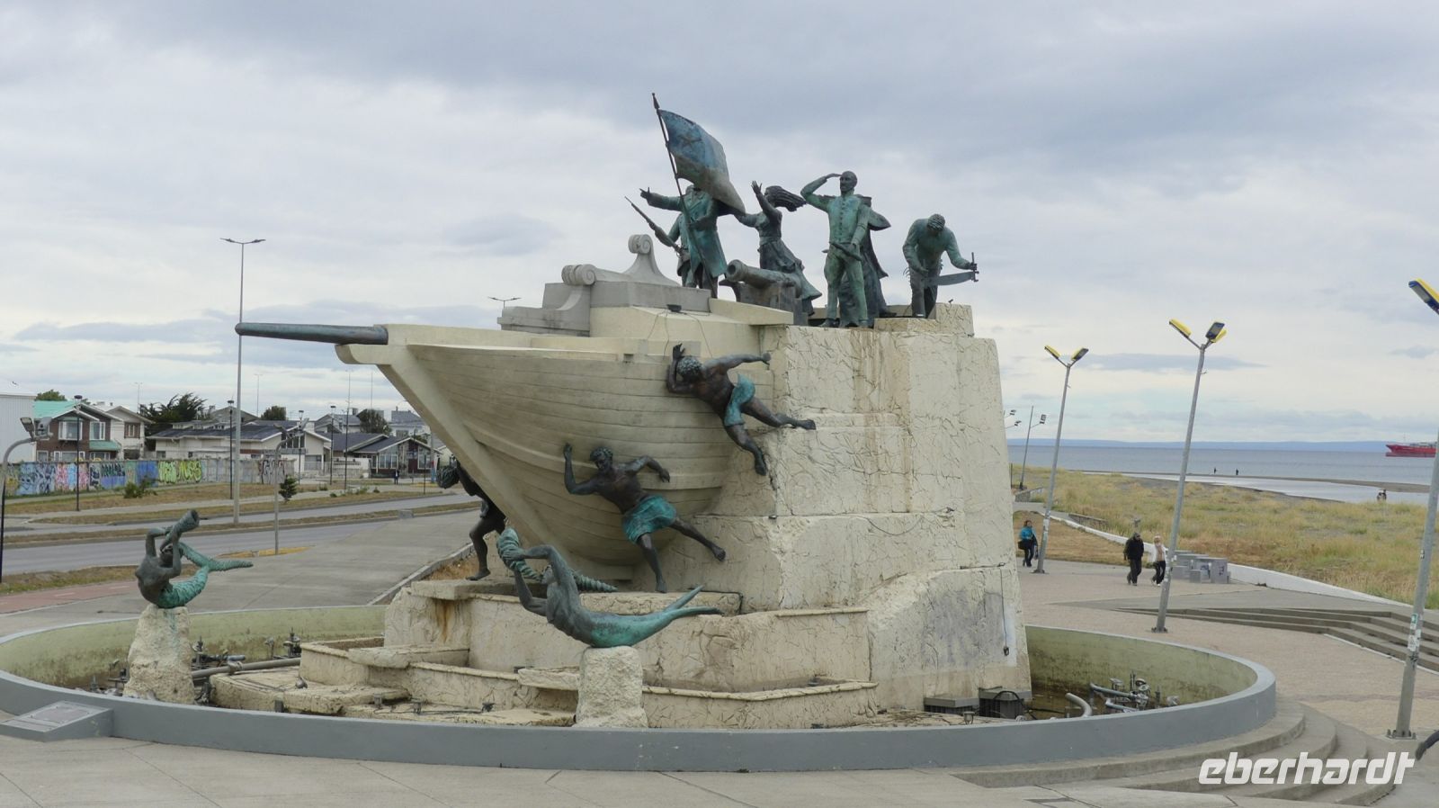 Unser nächstes Ziel ist der berühmte Friedhof der Stadt. Er gehört zum chilenischen Nationalerbe und wird gern mit dem Friedhof in Buenos Aires verglichen. Allerdings muss man hier 5.000 Peso Eintritt bezahlen. Auf dem Friedhof sehen wir monumentale Familienmausoleen von Schafbaronen und anderen Einwandererfamilien, die in den goldenen Zeiten zu Reichtum gekommen sind. Für andere wurden Sammelgräber angelegt, darunter das der Deutschen Krankenkasse. Daneben befindet sich der Gedenkstein für Graf Spee und die deutschen Matrosen, welche im ersten Weltkrieg gefallen sind. Letztendlich kommen wir zur Uferpromenade, wo sich das Denkmal für den Schoner Ancud sowie der Schriftzug von Punta Arenas befinden.