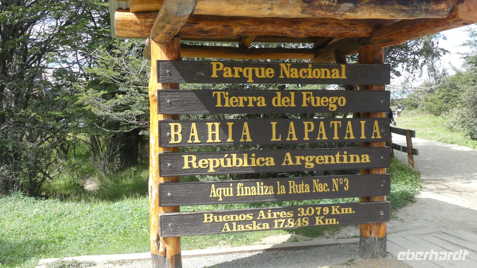 1.) Lapataia Bucht mit Aussichtspunkt und dem Ende der Route 3 von Buenos Aires,