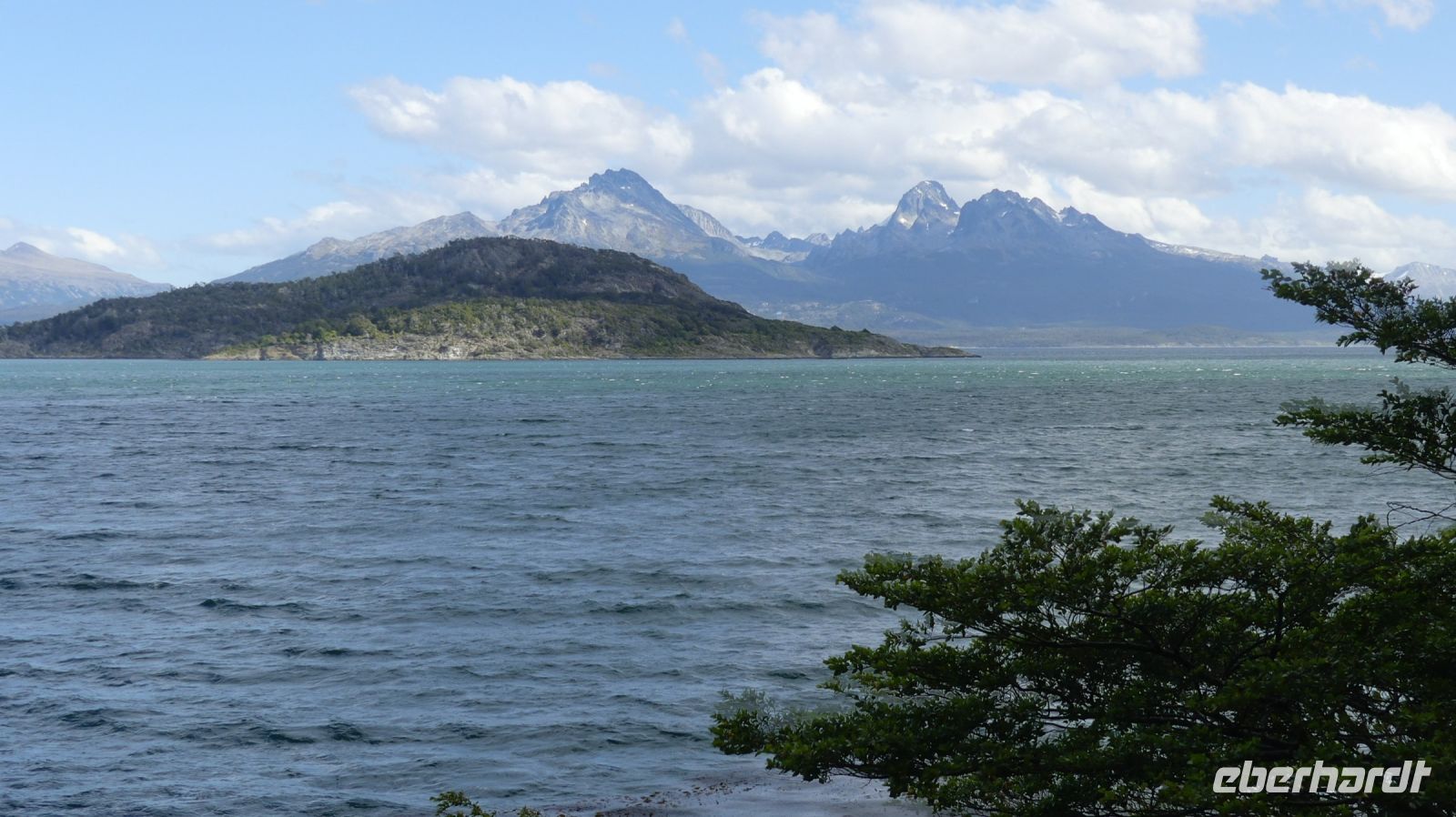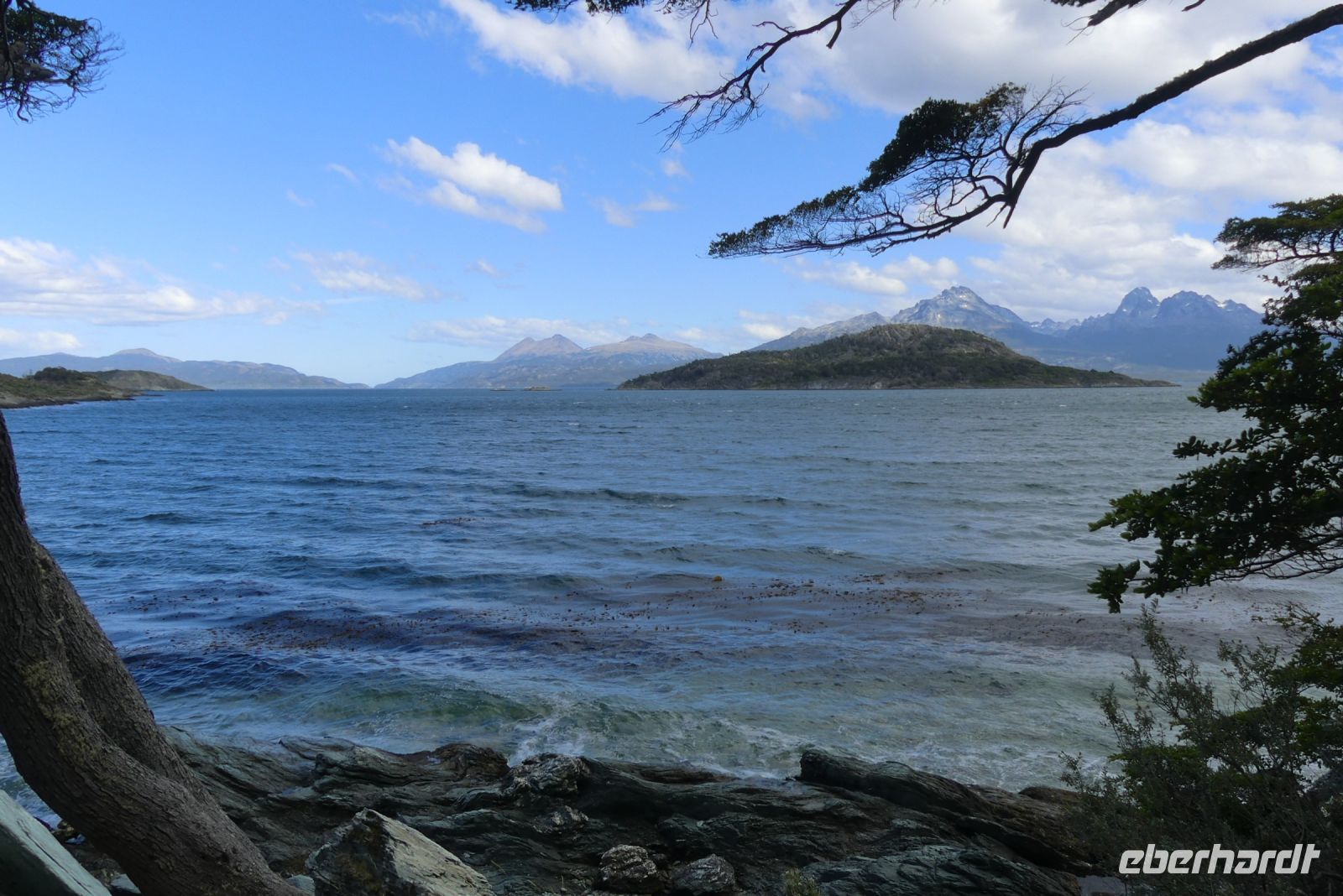 Die meisten Gäste unternehmen bei Sonnenschein und ca. 16 Grad einen Ausflug zum Feuerland Nationalpark. Elisabeth Groß ist unsere deutschsprechende örtliche Reiseleiterin. Sie ist Geographielehrerin und hat während der Sommerferien Zeit für diesen Job. Elisabeth meint, dass Ushuaia gerade mal so 36 Sonnentag im Jahr hat. Wir haben also wieder mal Wetterglück. Wir erfahren viel über die Natur Feuerlands. Bemerkenswert sind die Informationen über die Biberplage, deren Vorfahren einst aus Kanada eingeführt wurden und sich hier mangels natürlicher Feinde stark vermehren. Im Nationalpark halten wir an folgenden Punkten: