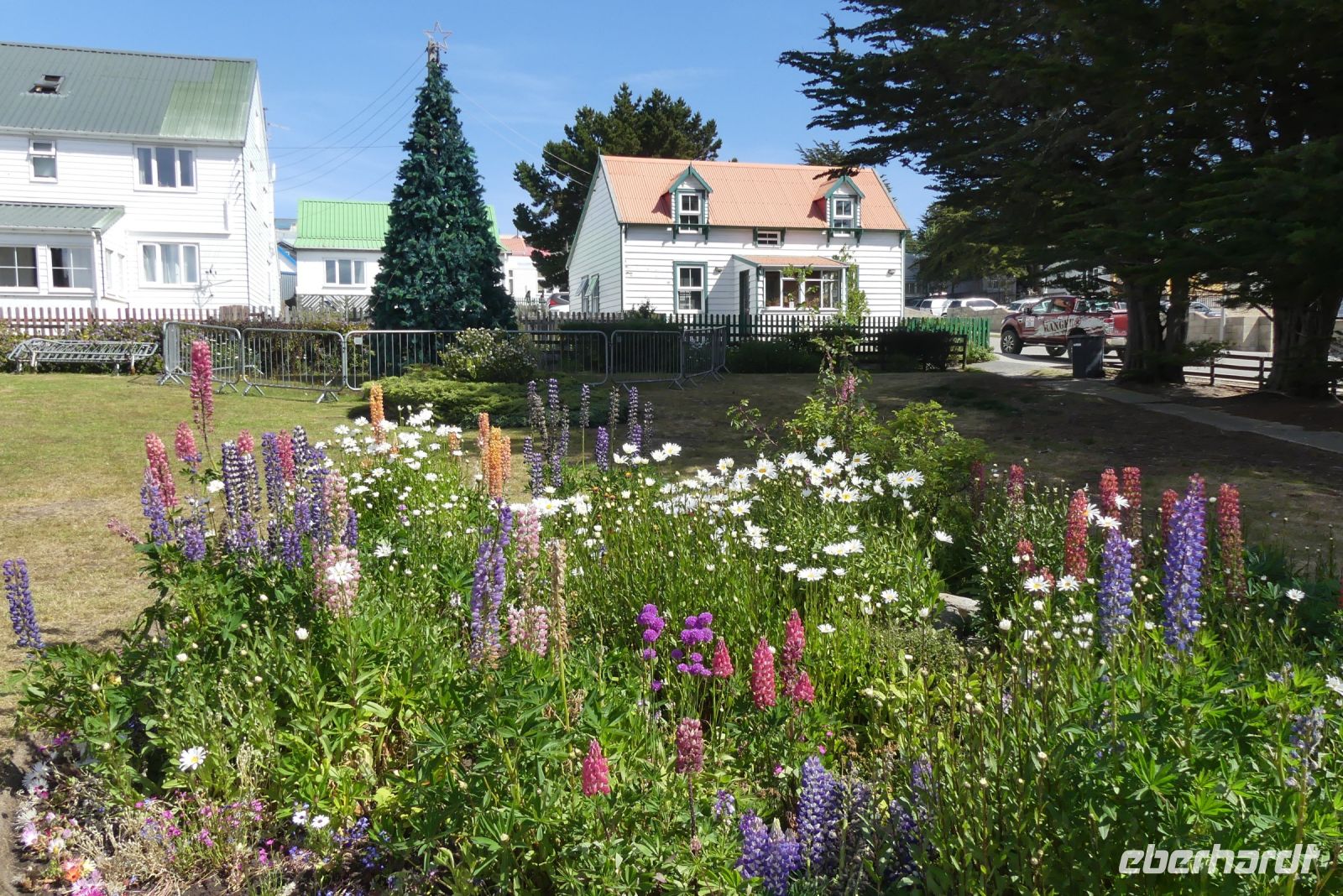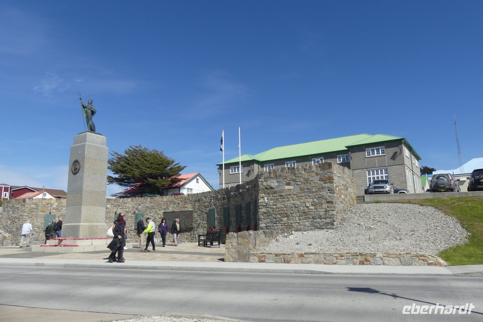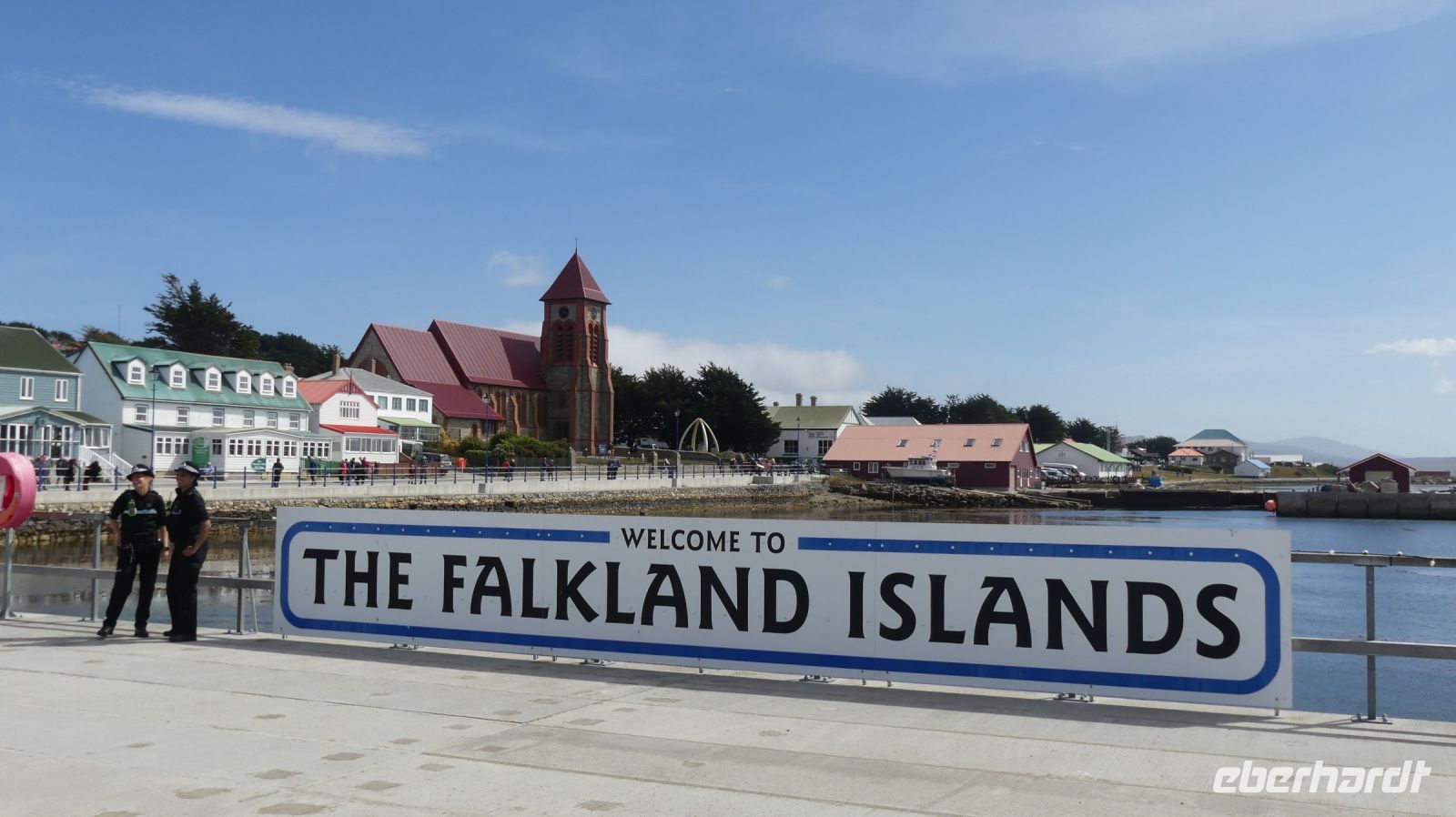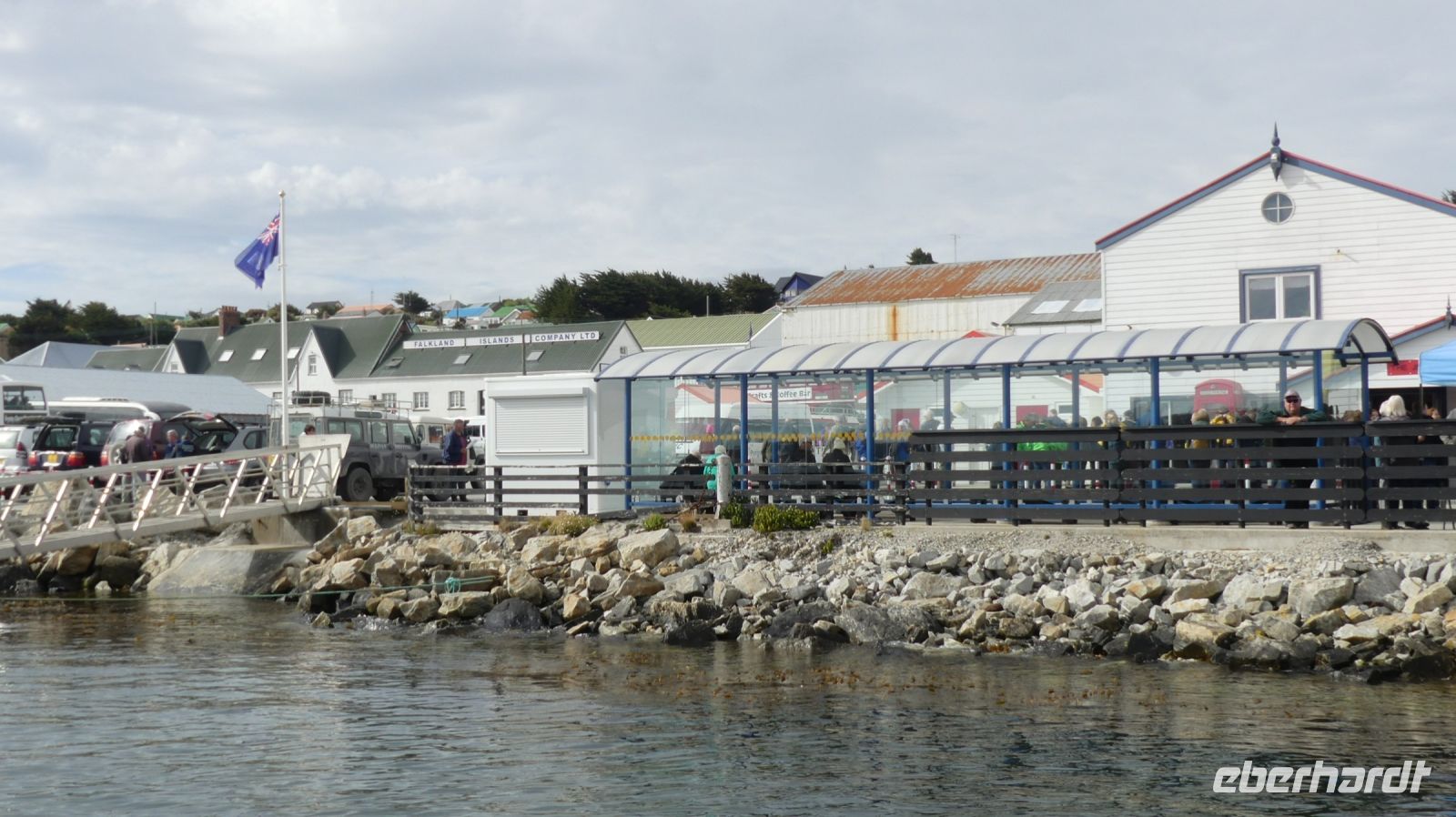Die Hauptstadt Port Stanley kann man mit einem Spaziergang gut erkunden. Entlang der Uferstraße kommt man zur südlichsten Kathedrale der Welt. Auch eine anglikanische Kirche gibt es. Insgesamt sind drei Kirchen und sechs Kneipen im Ort. Auch ein Gefängnis gibt es. Beliebt ist das Postamt mit Sondermarken der Falkland Inseln für Briefmarkensammler. Etwas weiter befinden sich Denkmäler, die an die Gefallenen des Ersten Weltkrieges und des Falklandkrieges von 1982 erinnern. Für Margret Thatcher wurde eine Büste aufgestellt. Übrigens herrscht auf den Straßen Linksverkehr, da wir uns auf einem britischem Überseeterritorium befinden.