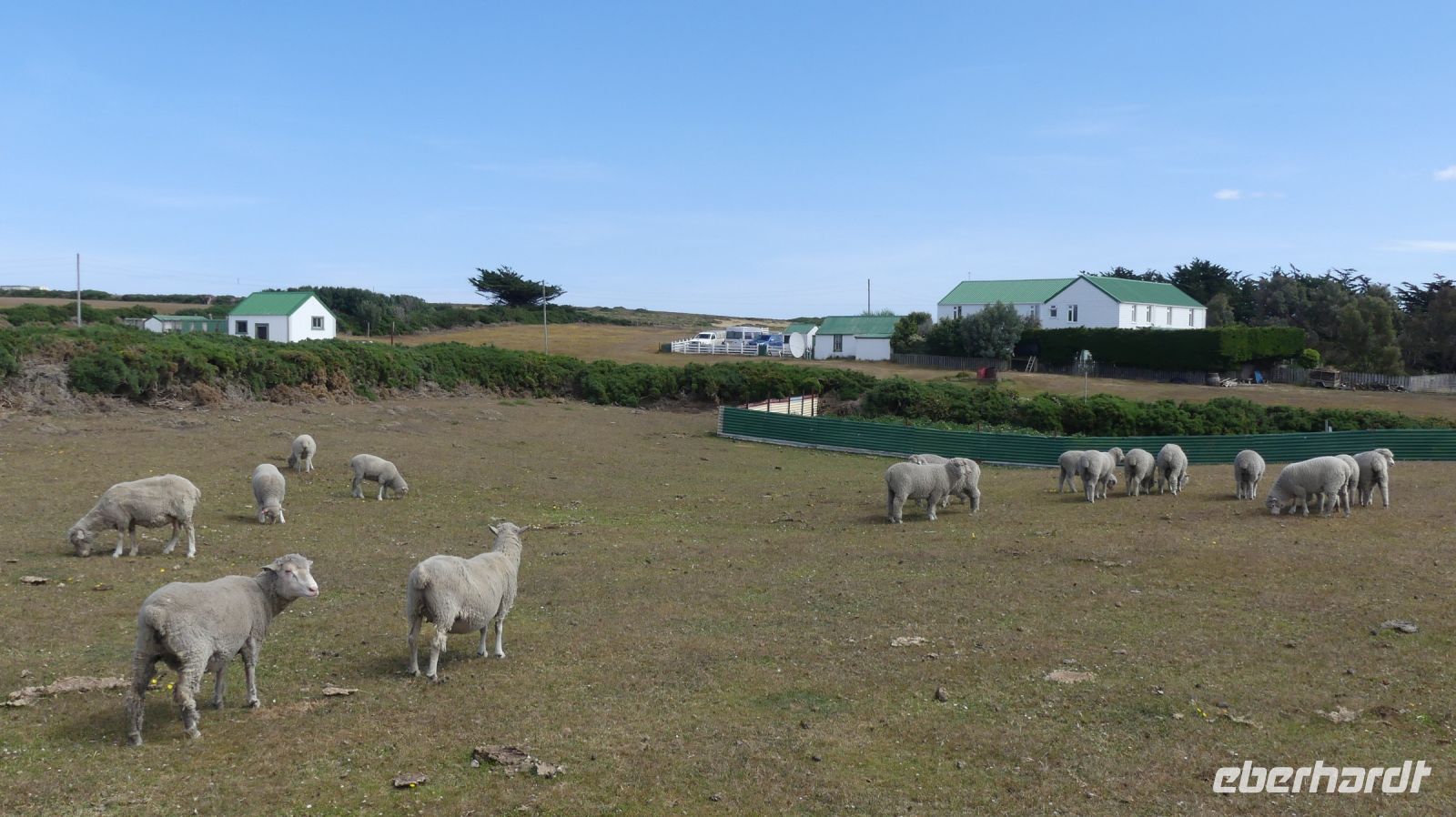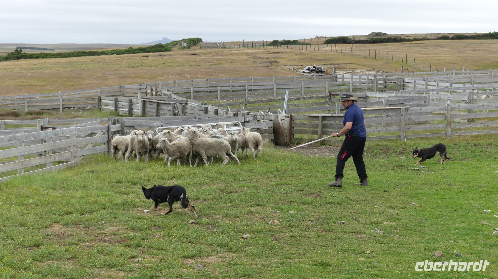Mit der Ankunft der Norwegian Sun und eines weiteren Kreuzfahrtschiffes in Port Stanley verdoppelt sich auf einen Schlag die Einwohnerzahl der Falkland Inseln. Unsere Gruppe verteilt sich heute auf verschiedene Ausflüge und individuelle Unternehmungen. Ich bin mit einigen Gästen auf einem Ausflug zur Fitz Roy Farm, wo es ca. 20.000 Schafe gibt. Neben der Führung über die Farm erfahren wir auch Interessantes über die Falkland Inseln: die Bewohner haben im Vergleich zu Großbritannien einige Privilegien. So zahlen sie weniger Einkommensteuer, sind kostenfrei krankenversichert und bekommen ein Studium in Großbritannien finanziert.