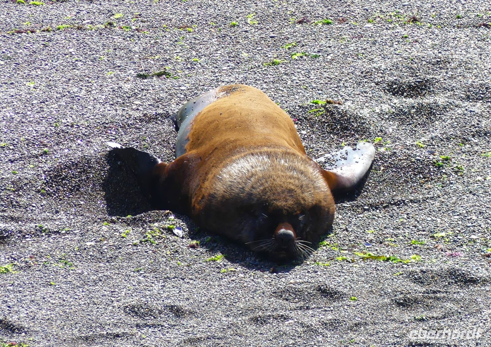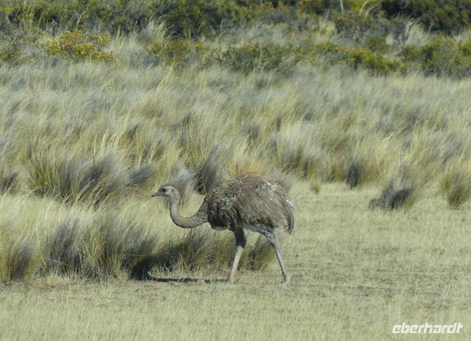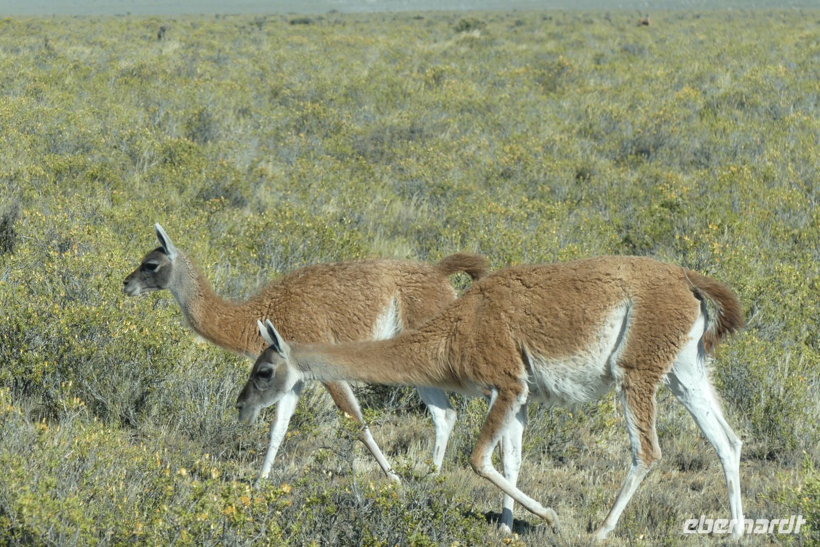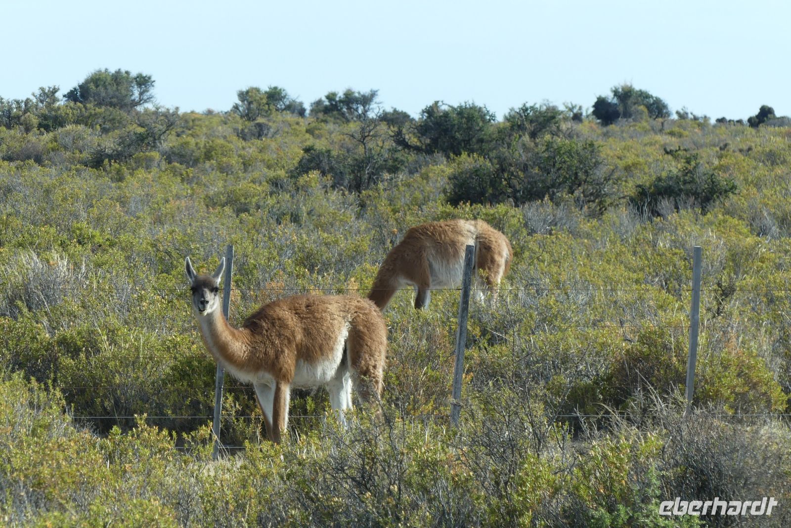 Zuerst halten wir am Informationszentrum an der Zufahrt zur Halbinsel. Blickfang hier ist ein großes Walskelet. Auch auf das traurige Kapitel, dass früher von Menschen mehr als 260.000 Seelöwen getötet wurden, um ihr Fell und Fett zu vermarkten, wird hier eingegangen. Heute stehen die Seelöwen unter Schutz. Am nördlichsten Punkt der Halbinsel = Punta Norte sehen wir dann auch eine große Kolonie von Seelöwen am Strand. Auch einige Seeelefanten sind zu sehen. Die Fahrt zu Punta Norte selbst war wie eine kleine Safari – häufig waren Guanakos sowie Maras und Nandus zu sehen.