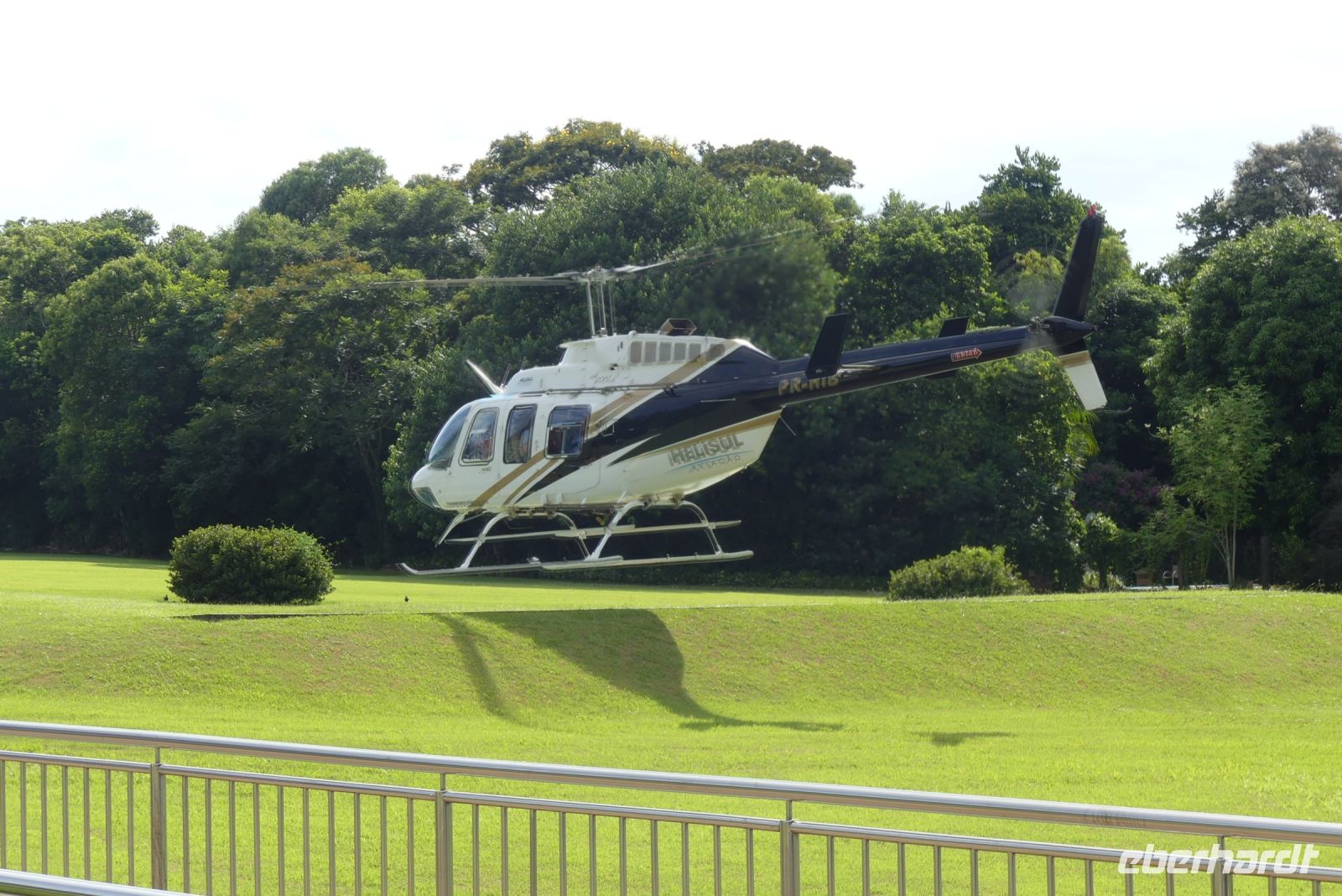 Zwölf Gäste aus unserer Gruppe unternehmen heute Morgen einen Hubschrauberrundflug über die Wasserfälle. Bei dem 10-minütigem Rundflug kann man die gewaltigen Ausmaße von Iguazú sehr gut erkennen - ein fantastisches Erlebnis.