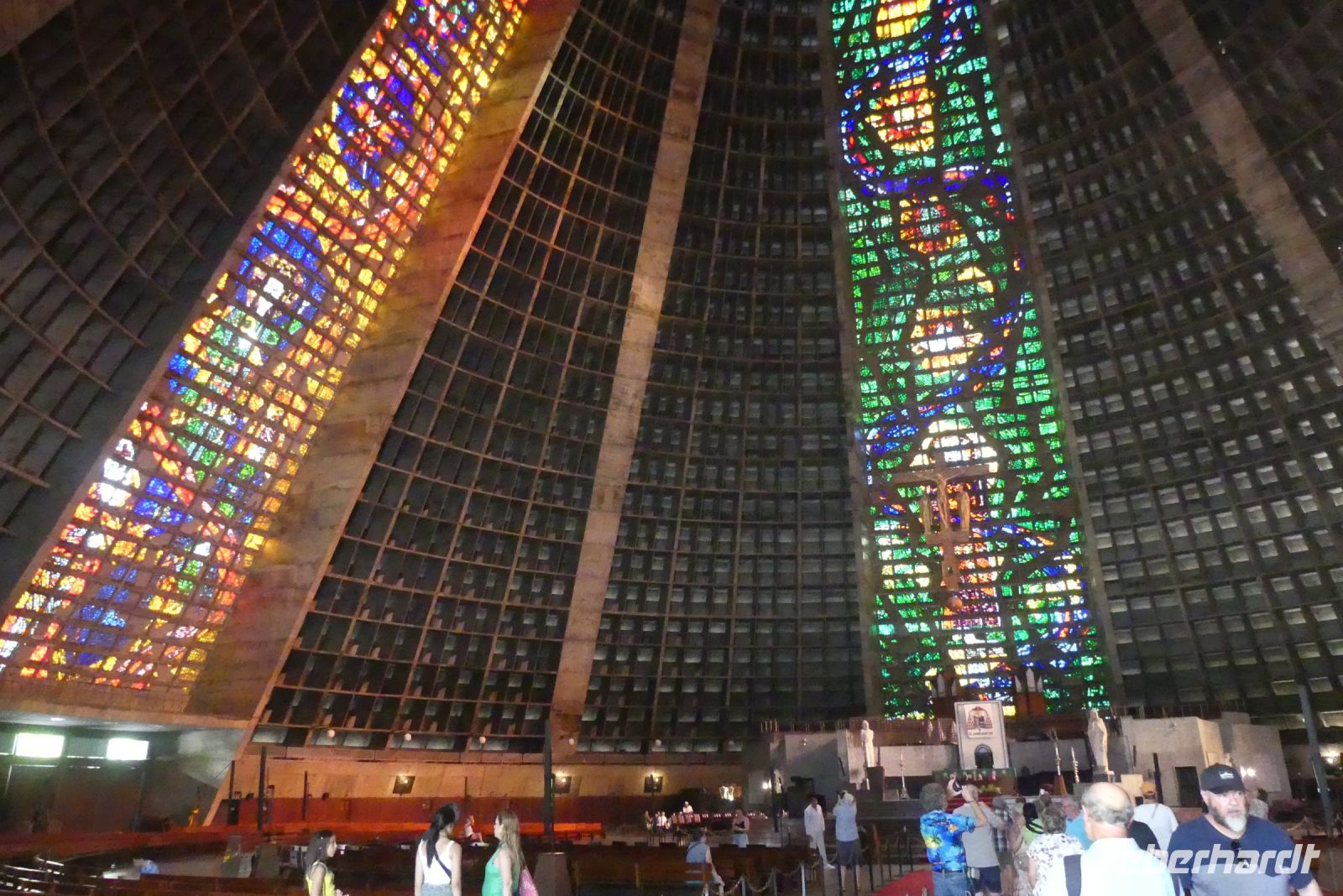 • der Kathedrale San Sebastian. Der moderne Bau gleicht einem Kegelstumpf und bietet 20.000 Menschen Platz. Im Inneren gibt es beeindruckende Effekte durch die Lichteinfälle an den farbigen Glasfenstern;