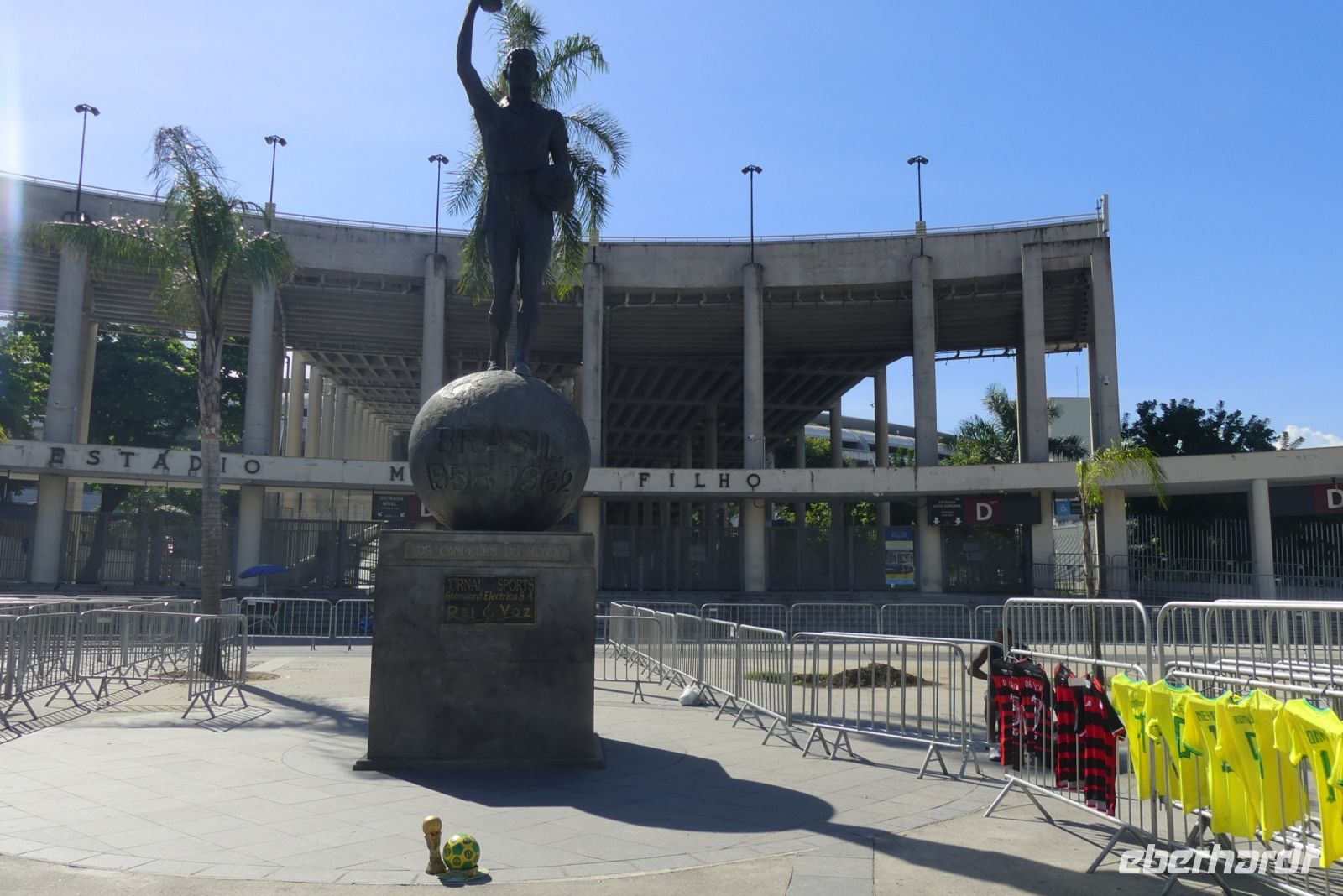Auf dem Weg zum Flughafen legen wir noch einen Fotostopp am berühmten Fußballstadion ein. Das Estádio Jornalista Mário Filho an der Avenida Maracanã ist weltweit als Maracanã Stadion bekannt. Es wurde für die Fußball-Weltmeisterschaft 1950 als damals größtes Fußballstadion gebaut und war Ort legendärer aber auch schmerzhafter Fußballspiele, wie das 1:7 gegen Alemanha ??