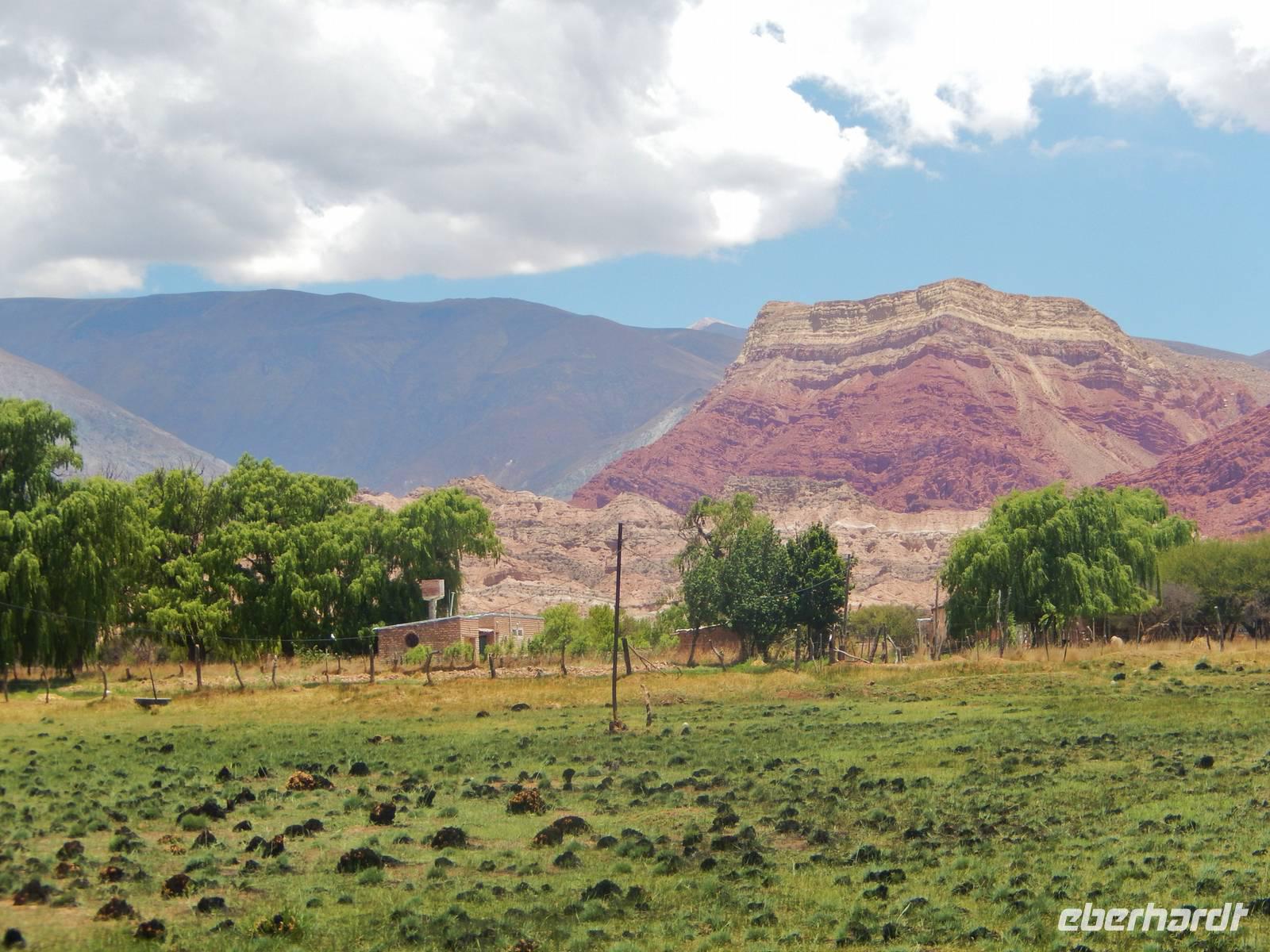 Kurze Zeit später treffen wir schon in dem Dörfchen Tilcara ein und begeben uns zum Pucará de Tilcara, eine Inka-Festung die heute zu den wichtigsten archäologischen Stätten Nordargentiniens zählt. In einer Höhe von 2450 Metern geniessen wir hier einen wunderbaren Ausblick über das gesamte Tal. Umringt wird die kleine Pyramide hier oben von vielen Kakteen und restaurierten Hütten aus der Inkazeit, welche wir besichtigen. Nun geht es weiter auf die andere Seite des Berges, wir möchten nach Humahuaca. Auf dem Weg passieren wir in Huacalera den südlichen Wendekreis, den Wendekreis des Steinbocks. Gegen Mittag kommen wir in Humahuaca an und geniessen ein Mittagessen mit Ziegeneintopf und Empanadas bei deiner traditionellen Folkloreaufführung, der "Peña". Anschließend verbringen wir Freizeit in Humhuaca und begeben uns gegen nachmittag zurück ins schöne Purmamarca. Auf der Rückfahrt fahren wir eine andere Strecke und bekommen auch hier noch eine Attraktion zu Gesicht. Ein besonders bunter und ansehnlicher Berg trägt hier aufgrund seiner Chevronfalten den Beinahmen"La Paleta del Pintor", übersetzt "Die Palette des Malers".
