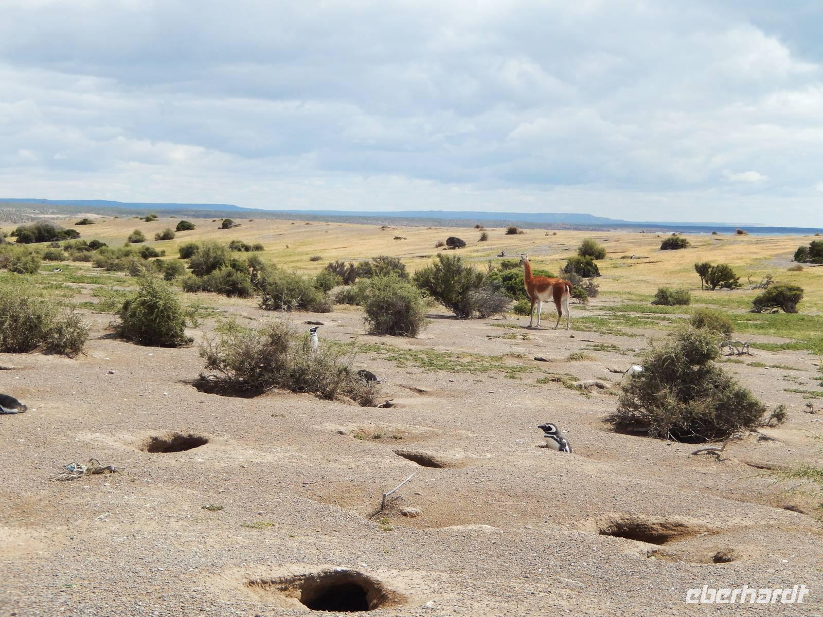 Heute starten wir am morgen ins ca. 120 km entfernte Naturschutzreservat Punta Tombo. Hier wohnen Zehntausende von Magellan Pinguinen. Den Namen Magellan Pinguine erhielten die Tiere von dem Entdecker Magellan, der die Tiere übrigens immer als Gänse gezeichnet hatte. Auf dem Weg dahin pausieren wir noch an einer der vielen Gauchito Gill Mahnstätten. Diese erkennt man an den roten Tüchern und Wimpeln. Autofahren hupen zum Gruß, wenn Sie daran passieren. Gauchito Gill war der Argentinische Robin Hood, er hat die Reichen beklaut um den Armen zu geben. Eine Legende besagt, dass er dem Soldaten der ihn töten wollte, darum gebeten hatte, dies zu unterlassen. Er wollte dem Kind des Soldat, welches sehr krank sei, helfen. Der Soldat jedoch wusste nichts von seinem kranken Kind und tötete Gauchito Gill. Als er nach Hause kam, fand er sein Kind totkrank auf. Er rannte zurück zu der Stelle, an der er Gauchito Gill vergraben hatte und flehte ihn an seinem Kind zu helfen. Der Wunsch wurde erhört, und das Kind des Soldaten wurde wieder gesund. Daher legen Reisende und Bewohner an den Gedenkstätte kleine Geschenke für den Gauchito Gill nieder, sei es etwas Wasser, eine Zigarette oder ein Bonbon. Auch wir bitten hier für schönes Wetter, denn nicht jeder hat das Glück die Tiere im Naturschutzgebiet auch zu sehen. Gauchito Gill hat uns geholfen, wir hatten an diesem Tag schönstes Wetter und sahen viele Pinguine. In der Pinguinkolonie gibt es einen Besucherpfad, der sich quer durch die Kolonie schlängelt und Aussichtspunkte an den zwei Buchten hat, an denen die Pinguine immer schwimmen und fressen gehen. Bei Betreten der Kolonie, gilt es einige Benimmregeln einzuhalten. Nur entlang des markierten Weges, dürfen Besucher gehen. Und möchte ein Pinguin über die Straße gehen, so hat dieser "Vorfahrt", man wartet bis der Pinguine über die Straße gewatschelt ist und darf dann erst weitergehen. Wir spazieren durch die Kolonie und sehen viele brütende Pinguine in ihren Bodenlöchern sitzen, Möwen die geklaute Pinguineier fressen, kleine Rebhühner, Streifenhörnchen und Guanacos. Besonders putzig sind die Pinguine, die gerade vom Jagen im Meer zurückkommen und mit dickem Bauch schwerfällig zurück zu Ihrer Höhle watscheln. Zum Mittagessen haben wir diesmal Lunchboxen mitebracht, die wir hier an der Pinguinkolonie verzehren. Anschließend fahren wir weiter in das walisische Dörfchen Gaiman, welches so gar nicht in die patagonische Steppenlandschaft zu passen scheint. Hier im Dörchen Gaiman wird die walisische Sprache noch immer intensiv gehegt. Nach einer kurzen Rundfahrt erwartet uns ein weiteres Highlight: eine typisch walisische Teatime. In einem reizenden Häuschen werden wir mit Süßgebäck, wie z. B. Scones und kleinen Küchlein und walisischen Keksen überhäuft und trinken dazu Tee, traditionell mit Milch und Zucker. Wir entspannen und geniessen die gemütliche Atmosphäre. Plötzlich vernehmen wir einen Krach und Musik auf der Straße. Wir laufen der Musik hinterher zur Dorfmitte und erleben eine Jugendgruppe, die gerade für den Karneval übt und in ihren bunten Kostümen tanzen und singen. Eine Zeitlang beobachten wir das bunte Treiben und fahren dann zurück nach Puerto Madryn, um noch einen Sonnenuntergangspaziergang am Meer zu unternehmen.