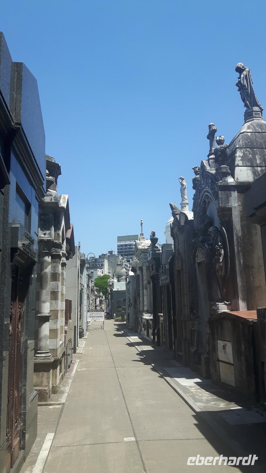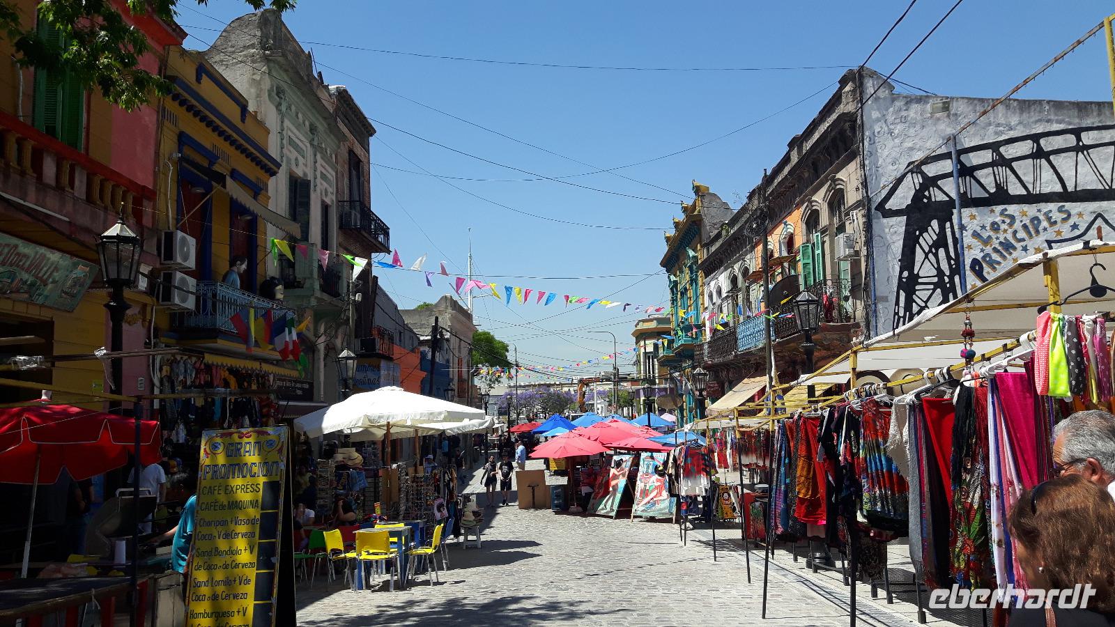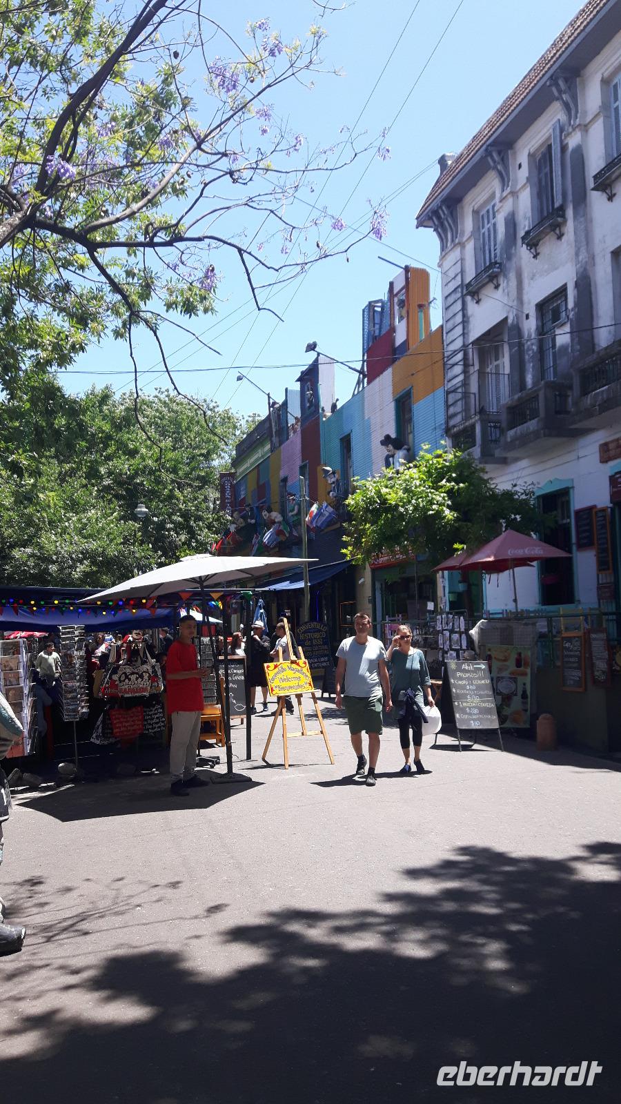 Nach ca. 13 Flugstunden, wo wir zumindest immer wieder versuchten etwas Schlaf zu finden, kamen wir überpünktlich gegen 8 Uhr in Buenos Aires an. Schnell waren die Einreiseformalitäten erledigt und auch unser Gepäck glücklicherweise wohlbehalten angekommen, bevor wir dann freudig von unserer sympathischen Reiseleiterin Mariel in Empfang genommen wurden. Es ging zunächst zu unserem zentral gelegenen Hotel im Stadtteil San Telmo, wo allerdings noch kein Zimmer-Bezug möglich war, aber zumindest konnten wir hier unser Gepäck deponieren. Anschließend begann die Stadtrundfahrt durch die belebte argentinische Hauptstadt. Wir starteten im wohl bekanntesten Stadtviertel La Boca, der Geburtsstätte des Tangotanzes und der Wirkungsstätte des großen Fußballstars Diego Maradonna. Ein gemeinsamer Spaziergang führte uns an besonders beeindruckenden außergewöhnlichen Häusern aus buntem Schiffsblech vorbei, denn mangels Alternativen errichtete die Bevölkerung ihre Behausungen aus dem Blech von Schiffswracks, die die verschiedensten Farben teilweise bereits aufwiesen und manchmal noch mit farbenfrohem Schiffslack gestrichen wurden. Demnach zeigen sich die Fassaden La Bocas als prächtiges Gemisch aus allen Farben - das ist einfach toll anzusehen! Dazu ertönte fast überall Tango-Musik und auf offener Straße wurde ausgelassen getanzt - pure Lebensfreude! Später wurde es etwas ernster, denn wir statteten dem berühmten Stadtfriedhof La Recoleta einen Besuch ab, der letzten Ruhestätte zahlreicher wohlhabender Einwohner und bekannter politischer Persönlichkeiten. Hoch aufragende Mausoleen, lebensgroße Statuen und prächtige Grabstätten stehen in dichten Reihen hinter hohen Mauern und man könnte sagen, der Friedhof gleicht einer kleinen Stadt in der Stadt. Hauptattraktion war natürlich auch für uns das Grab der in Argentinien vergötterten Eva Perón (bekannt als „Evita"), die auch als „Engel der Armen" bekannt war. Von Buenos Aires aus wird übrigens das Land auch gelenkt und regiert und somit ging es zu guter Letzt auch zum berühmten Hauptplatz der Stadt, der Plaza de Mayo. Dieser älteste Platz der Stadt beherbergt unter anderem den Präsidentenpalast und an keinem anderen Platz der Stadt ist die Stimmung des Volkes angeblich so gut spürbar wie hier, denn auf diesem Platz wurde immerhin schon Evita Perón bejubelt! So langsam bekamen wir Hunger und somit nahmen wir am frühen Nachmittag ein erstes gemeinsames argentinisches Mittagessen im Restaurant „El Querandi" ein. Gut gestärkt checkten wir schließlich im Hotel ein, denn zum Glück waren alle unsere Zimmer mittlerweile bezugsfertig. Den restlichen Nachmittag nutzten wir zum Erholen, denn jetzt machten sich etwas Müdigkeit vom langen Flug und auch die Zeitverschiebung von immerhin 4 Stunden bemerkbar! Auch die veränderten Wetterverhältnisse gegenüber Deutschland mussten verkraftet werden - hier waren immerhin an die 30 Grad und eine relativ hohe Luftfeuchtigkeit! Wir sehnten uns alle nach etwas Ruhe...!