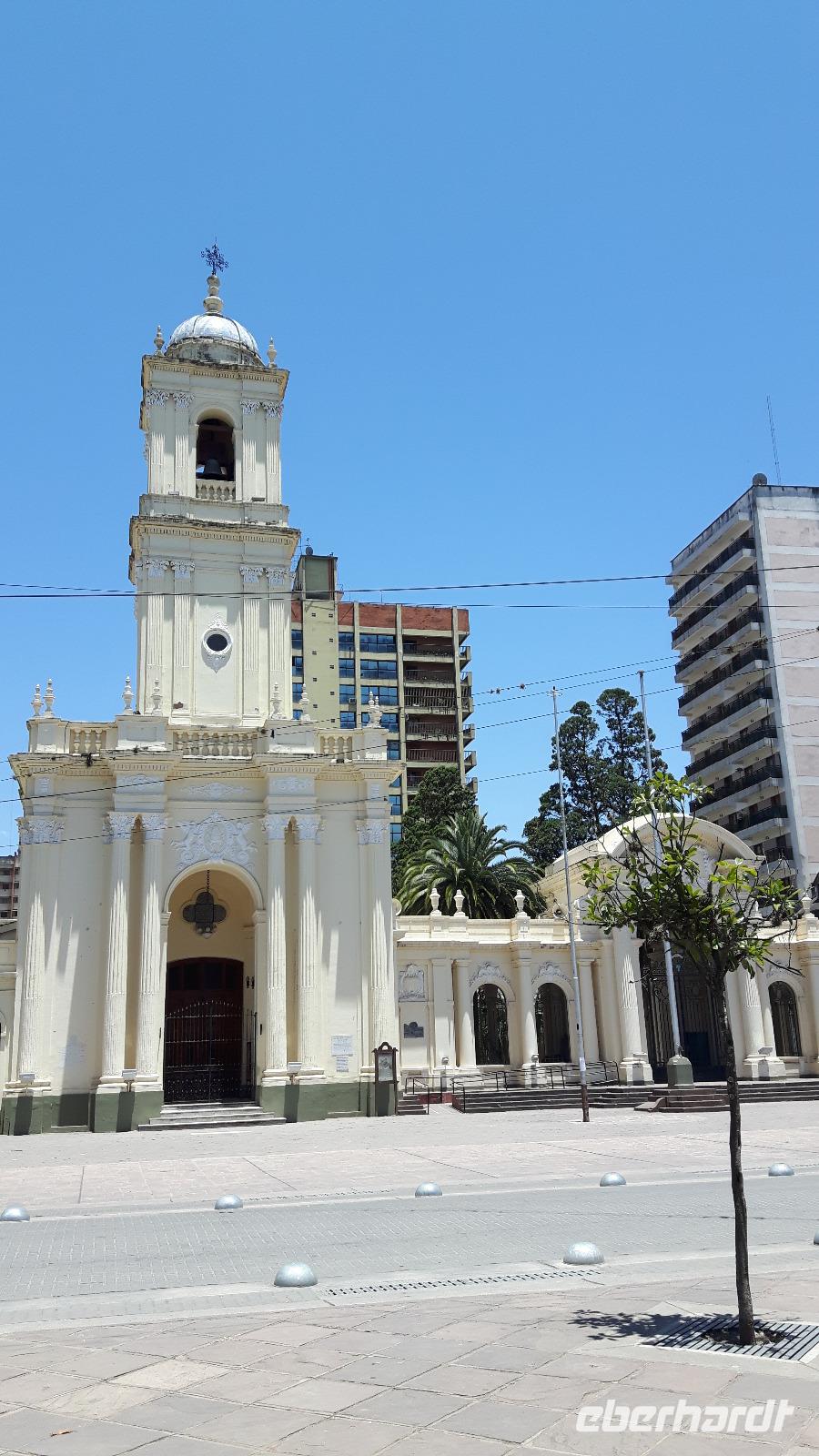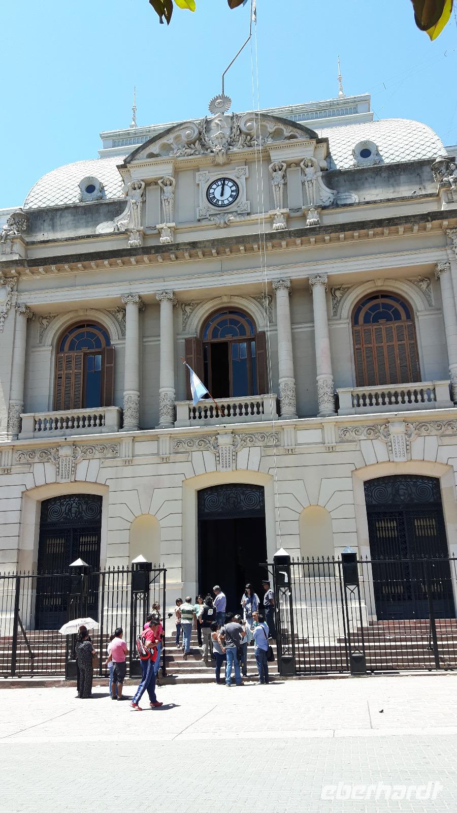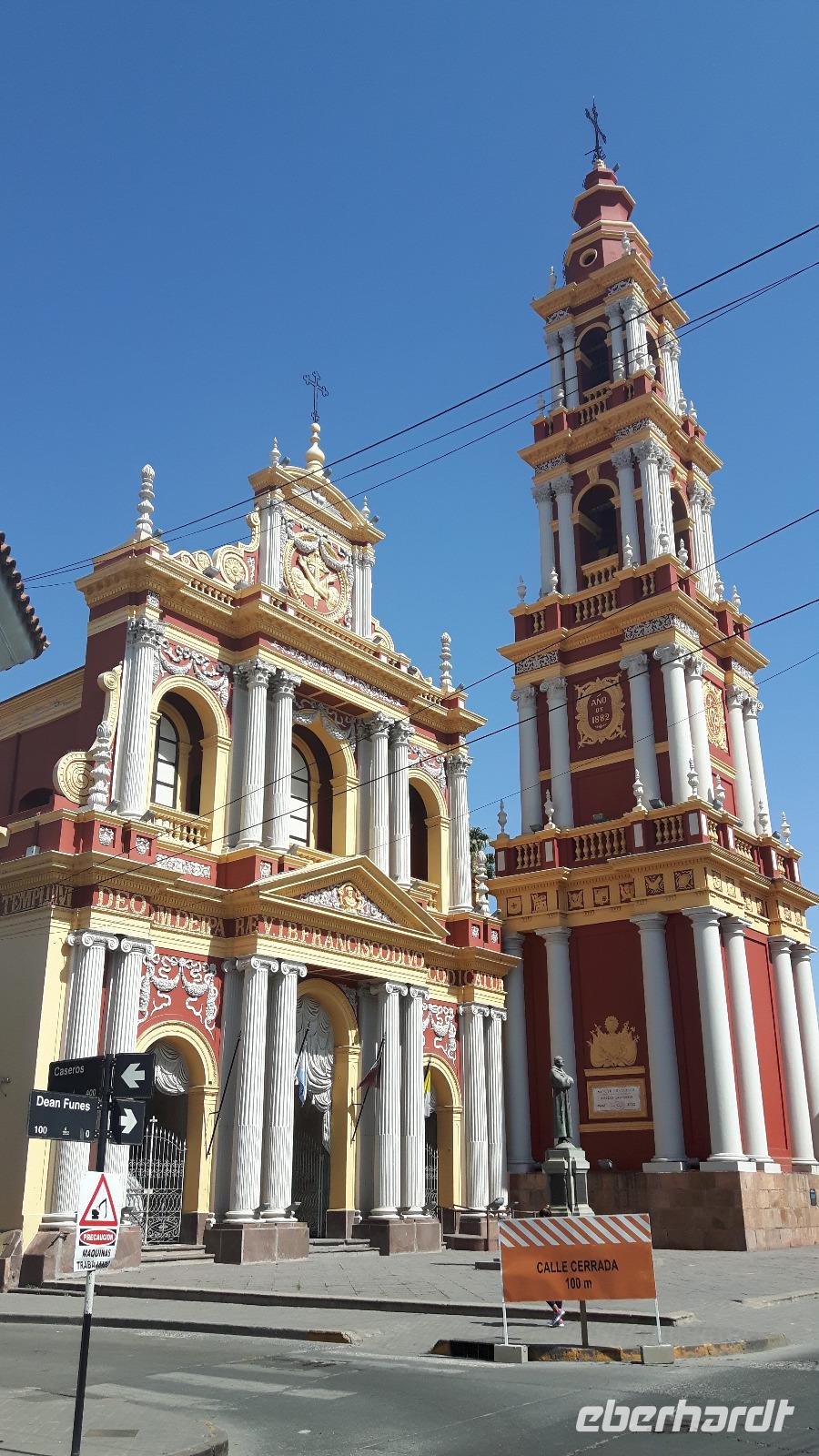 In Argentinien war heute ein Feiertag, der „Tag der nationalen Souveränität". Dabei wurde an die See-Schlacht von Vuelta de Obligado im Jahre 1845 erinnert. Vor genau 165 Jahren standen sich im Rio Paraná die noch junge argentinische Konföderation und ein anglo-französischer Flottenverband gegenüber. Die zur damaligen Zeit stärkste Streitmacht der Welt stieß auf erheblichen Widerstand und konnte in der Obligado-Biegung in einem elf Stunden andauernden Kampf von den argentinischen Freiheitskämpfern aufgehalten werden. Franzosen und Engländer erkannten danach die argentinische Hoheit über die Schifffahrtswege im Land an, was das Land als Festigung der eigenen Souveränität feierte. Heute mussten wir uns von Purmamarca verabschieden und gemeinsam mit Ingrid und David steuerten wir wiederum die Humahuaca-Schlucht, diesmal allerdings den südlichen Teil, an. Wir erreichten San Salvador de Jujuy, in einem herrlichen Talkessel gelegen. Hier besichtigten wir natürlich das Herz von San Salvador de Jujuy, die Plaza Belgrano, wo sich die Kathedrale, das alte Rathaus, der Regierungspalast sowie der Bischofspalast befinden. Den 1907 erbauten Regierungspalast konnten wir sogar von innen anschauen, denn dieser beherbergt immerhin die erste Nationalflagge, die die Stadt 1812 von Manuel Belgrano geschenkt bekam. Leider blieb uns der Flaggensaal des Regierungspalastes noch lange in eher unangenehmer Erinnerung, da genau hier unser Dieter von einer Schwarzen Biene gestochen wurde! Es war zwar zu guter Letzt nicht dramatisch, da der Stich sofort ärztlich behandelt wurde, aber der Schrecken saß erst einmal tief! Mittlerweile ist alles verheilt, aber diese Episode der Reise bleibt sicherlich im Kopf haften! Zurück nach Salta nahmen wir die alte, landschaftlich reizvolle Strecke. Diese schmale Straße zog sich in endlosen Serpentinen durch Wälder und Ebenen, bis sie aus nördlicher Richtung schließlich auf Salta traf. Am späten Nachmittag checkten wir wiederum im uns bereits bekannten Hotel „Amerian Salta" ein. Jetzt machten sich dann doch etwas Müdigkeit und Erschöpfung breit, denn die letzten Tage waren zwar wunderschön, aber durch die enormen Höhenunterschiede auch sehr anstrengend. Nichts desto trotz, unser Abschiedsabend mit Ingrid und David stand an und den wollte natürlich niemand verpassen! Gemeinsam spazierten wir zum stilvollen Restaurant „Solar del Convento", wo wir ein vorzügliches Abendessen genießen konnten. In diesem Zusammenhang bedankten wir uns auch beim wirklich besten Team der gesamten Reise, unserer Reiseleiterin Ingrid und unserem Buschauffeur David - Ihr ward einfach Spitze!!!