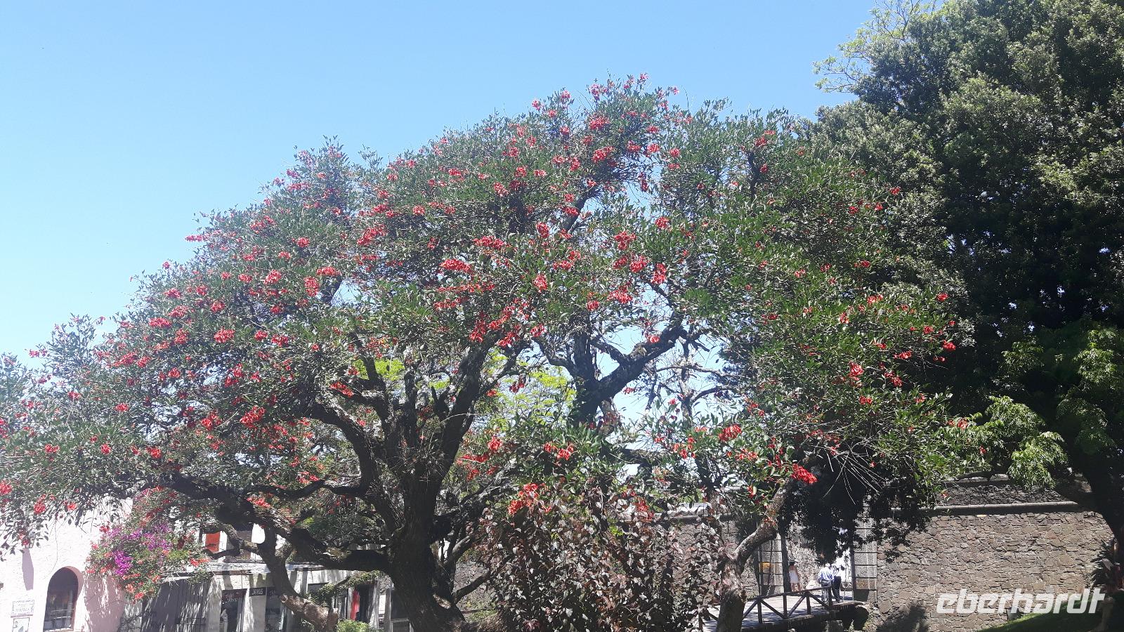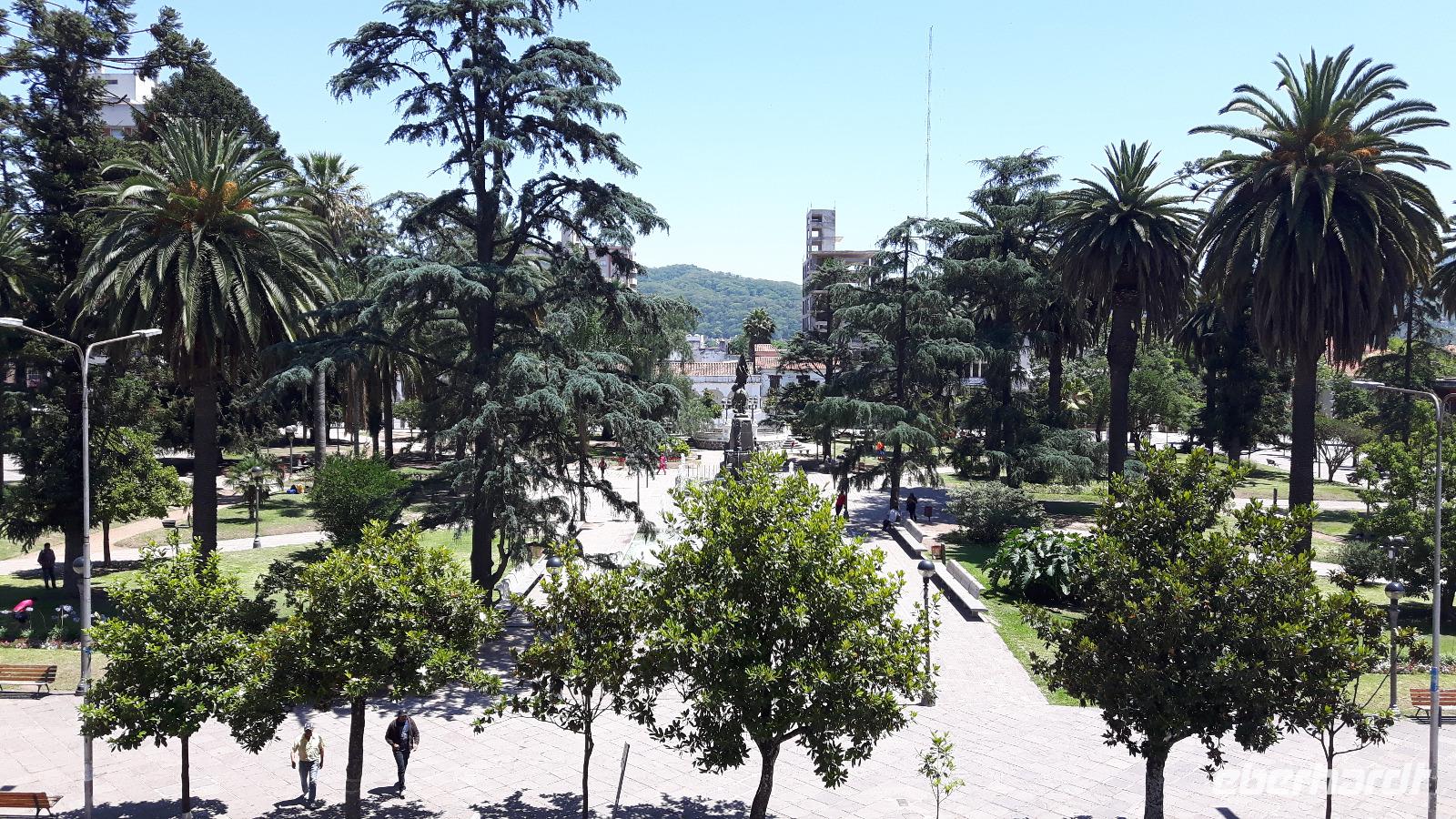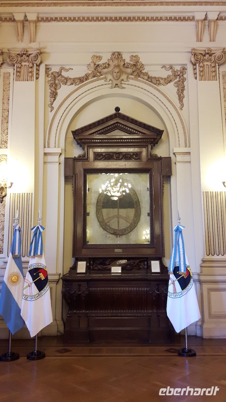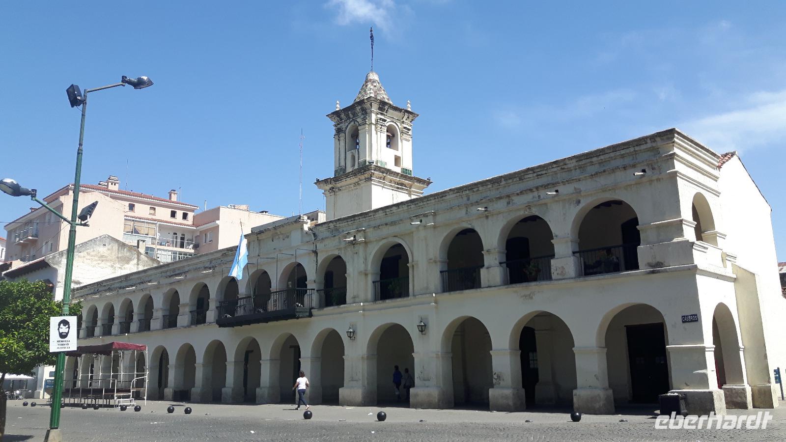 In Argentinien war heute ein Feiertag, der „Tag der nationalen Souveränität". Dabei wurde an die See-Schlacht von Vuelta de Obligado im Jahre 1845 erinnert. Vor genau 165 Jahren standen sich im Rio Paraná die noch junge argentinische Konföderation und ein anglo-französischer Flottenverband gegenüber. Die zur damaligen Zeit stärkste Streitmacht der Welt stieß auf erheblichen Widerstand und konnte in der Obligado-Biegung in einem elf Stunden andauernden Kampf von den argentinischen Freiheitskämpfern aufgehalten werden. Franzosen und Engländer erkannten danach die argentinische Hoheit über die Schifffahrtswege im Land an, was das Land als Festigung der eigenen Souveränität feierte. Heute mussten wir uns von Purmamarca verabschieden und gemeinsam mit Ingrid und David steuerten wir wiederum die Humahuaca-Schlucht, diesmal allerdings den südlichen Teil, an. Wir erreichten San Salvador de Jujuy, in einem herrlichen Talkessel gelegen. Hier besichtigten wir natürlich das Herz von San Salvador de Jujuy, die Plaza Belgrano, wo sich die Kathedrale, das alte Rathaus, der Regierungspalast sowie der Bischofspalast befinden. Den 1907 erbauten Regierungspalast konnten wir sogar von innen anschauen, denn dieser beherbergt immerhin die erste Nationalflagge, die die Stadt 1812 von Manuel Belgrano geschenkt bekam. Leider blieb uns der Flaggensaal des Regierungspalastes noch lange in eher unangenehmer Erinnerung, da genau hier unser Dieter von einer Schwarzen Biene gestochen wurde! Es war zwar zu guter Letzt nicht dramatisch, da der Stich sofort ärztlich behandelt wurde, aber der Schrecken saß erst einmal tief! Mittlerweile ist alles verheilt, aber diese Episode der Reise bleibt sicherlich im Kopf haften! Zurück nach Salta nahmen wir die alte, landschaftlich reizvolle Strecke. Diese schmale Straße zog sich in endlosen Serpentinen durch Wälder und Ebenen, bis sie aus nördlicher Richtung schließlich auf Salta traf. Am späten Nachmittag checkten wir wiederum im uns bereits bekannten Hotel „Amerian Salta" ein. Jetzt machten sich dann doch etwas Müdigkeit und Erschöpfung breit, denn die letzten Tage waren zwar wunderschön, aber durch die enormen Höhenunterschiede auch sehr anstrengend. Nichts desto trotz, unser Abschiedsabend mit Ingrid und David stand an und den wollte natürlich niemand verpassen! Gemeinsam spazierten wir zum stilvollen Restaurant „Solar del Convento", wo wir ein vorzügliches Abendessen genießen konnten. In diesem Zusammenhang bedankten wir uns auch beim wirklich besten Team der gesamten Reise, unserer Reiseleiterin Ingrid und unserem Buschauffeur David - Ihr ward einfach Spitze!!!