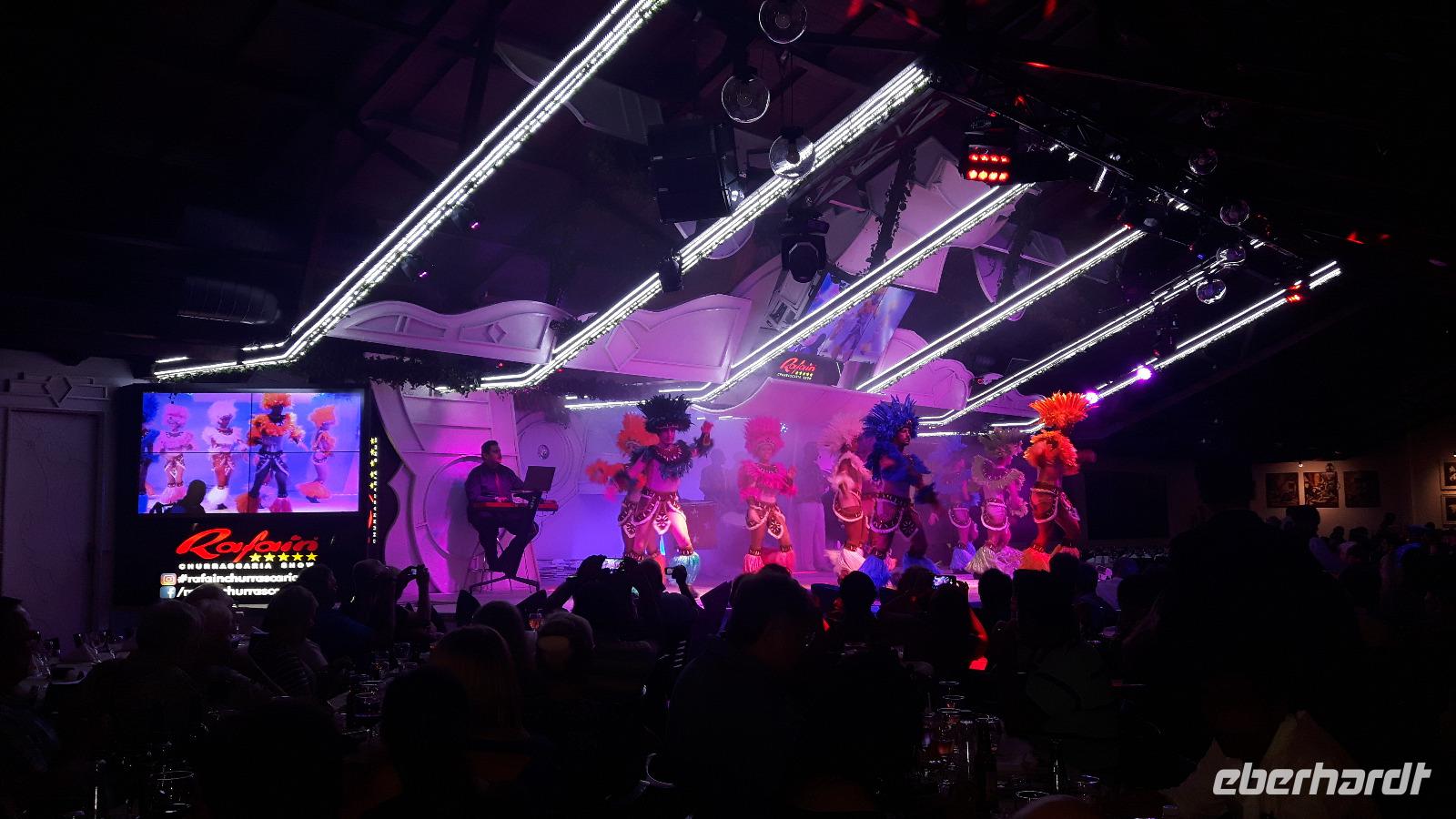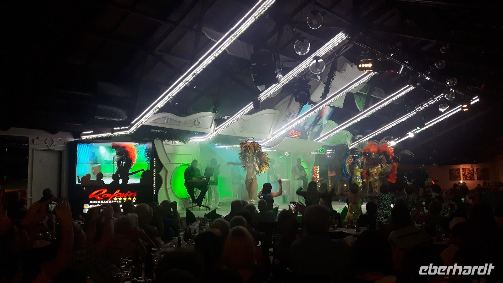 Es handelt sich hier immerhin um die größten Wasserfälle Südamerikas und sie gehören zum UNESCO-Weltnaturerbe. Besonders erlebnisreich ist die Wanderung zum sogenannten „Teufelsschlund", dem Herzen der Iguazú Wasserfälle. Erst hier wurde einem richtig bewusst, welche gigantischen Wassermengen hier jede Sekunde des Tages hinabstürzen! Temperaturen von über 30 Grad und eine sehr hohe Luftfeuchtigkeit - das bedeutete für uns auch, viel Wasser zu trinken! Aber kein Problem, denn innerhalb des Parks konnte man genialer-weise seine Plasteflaschen an verschiedenen Stellen mit Trinkwasser auffüllen! Am Abend erreichten wir die argentinisch-brasilianische Grenze und schließlich unser Quartier für weitere zwei Nächte, das Hotel „Viale Cataratas Hotel" in Foz do Iguazú/Brasilien. Im benachbarten Grill-Restaurant „Rafain" konnten wir uns vom Abend-Buffet bedienen - einige Spezialitäten wurden sogar vor unseren Augen frisch zubereitet! Auch hier gab es ein Show-Programm mit Tänzen und Musik aus diversen Staaten Südamerika - leider kam dieses Programm nicht bei allen unseren Gästen gut an. Zugegeben - es war sehr laut und man konnte sich schlecht unterhalten, aber das Programm selbst war mit tollen Kostümen und Tänzen gespickt! Naja, die Geschmäcker sind eben verschieden...!