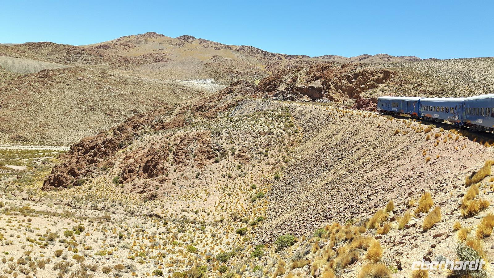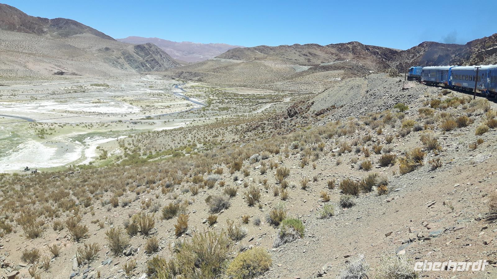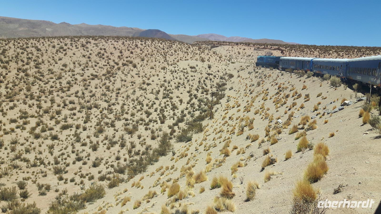 Dem heutigen Tag sahen wir mit großen Erwartungen entgegen - schließlich wollten wir „hoch hinaus" - die berühmte Anden-Gebirgskette erwartete uns! Wir folgten von Salta aus der Strecke des berühmten Zuges zu den Wolken zunächst parallel der Schienen entlang der Straße, da der Zug momentan nur auf einem kleinen Teilstück verkehrt. Trotzdem gewannen wir schnell an Höhe, fuhren vorbei an dichtem Grün und weiter durch atemberaubende Schluchten mit Kakteen. Wir sahen Viadukte und Brücken bzw. stoppten im kleinen Ort Santa Rosa de Tastil. Ingrid zeigte uns auch, wie man Coca-Blätter gegen die Höhenkrankheit verwendet. Gegen Mittag erreichten wir schließlich die ruhige Bergstadt San Antonio de los Cobres, wo sich der Ausgangspunkt für unsere Zugfahrt im „Trén a las nubes" befand. Dies ist eine der letzten Zugfahrten in Argentinien, nachdem das Land einst sehr gut mit Eisenbahnverbindungen versorgt war. Der Startpunkt ist aktuell in San Antonio de los Cobres auf 3.774 m ü.d.M. Von dort aus fährt man dann zum berühmten Polvorilla-Viadukt und wieder zurück. Der „Zug in die Wolken" heißt übrigens so, weil aufgrund der erreichten Höhe oftmals die Wolken unterhalb des Zuges zu sehen sind - wir sahen übrigens heute nicht eine einzige Wolke! Höhepunkt war zweifelsfrei die Überfahrt über das Polvorilla-Viadukt auf 4.220 m ü.d.M. - mit passender musikalischer Umrahmung war das ein „Gänsehaut pur-Gefühl"! Hier oben legten wir auch einen kleinen Aufenthalt ein und begegneten Anden-Bewohnern, die ihre selbst gefertigten Waren zum Verkauf anboten. Besonders emotional war die Begegnung mit kleinen Kindern, die sich über Kleinigkeiten, wie Bleistifte und Papier freuten. In San Antonio de los Cobres zurück, wurden wir von unserer Reiseleiterin Ingrid und dem stets umsichtigen Busfahrer David erwartet und von nun an fuhren wir mit unserem Bus etwa einhundert Kilometer extreme Schotterpiste quer durch die Puna-Hochebene weiter bis zu den berühmten Salzseen „Salinas Grandes", welche in einem Hochtal auf etwa 3.450 m ü.d.M. liegen. Auf einer Fläche von ca. 820 Quadratkilometern erstrecken sich die Salinas Grandes - zum Vergleich: die Fläche von Hamburg beträgt ca. 755 Quadratkilometer. Es handelt sich also um ein extrem großes Gebiet! Die Salzschicht ist etwa 30 cm dick und ohne Sonnenbrille kann man die Augen kaum öffnen, so stark sind die Reflektion und die Helligkeit! Besonders beeindruckend fand ich, dass mitten durch den Salzsee, der ja nichts als steinhartes Salz ist, eine Straße verläuft, auf welcher sogar schwere Lkw´s fahren. Von den Salinas Grandes ging es entlang der Ruta 52, der nördlichsten geteerten Andenpassstraße Südamerikas, über den knapp 4.200 Meter hohen Pass Cuesta de Lipán nach Purmamarca. Die Aussicht war atemberaubend und die Abfahrt trägt zurecht den Namen „Safari in die Wolken", denn die Wolken lagen nun unterhalb der Straße und boten spektakuläre Fotomotive. Die Abfahrt ging hinab ins malerische Dorf Purmamarca, wo wir unser Domizil für die nächsten drei Nächte im Hotel „Terrazas de la Posta Hosteria" bezogen. Purmamarca ist ein kleines, idyllisches Städtchen auf etwa 2.200 Metern Höhe, das seinen Platz zwischen dem Berg der sieben Farben und den angrenzenden Kordilleren gefunden hat. Ein gemeinsames Abendessen rundete diesen langen, aber auch sehr eindrucksvollen Tag ab.