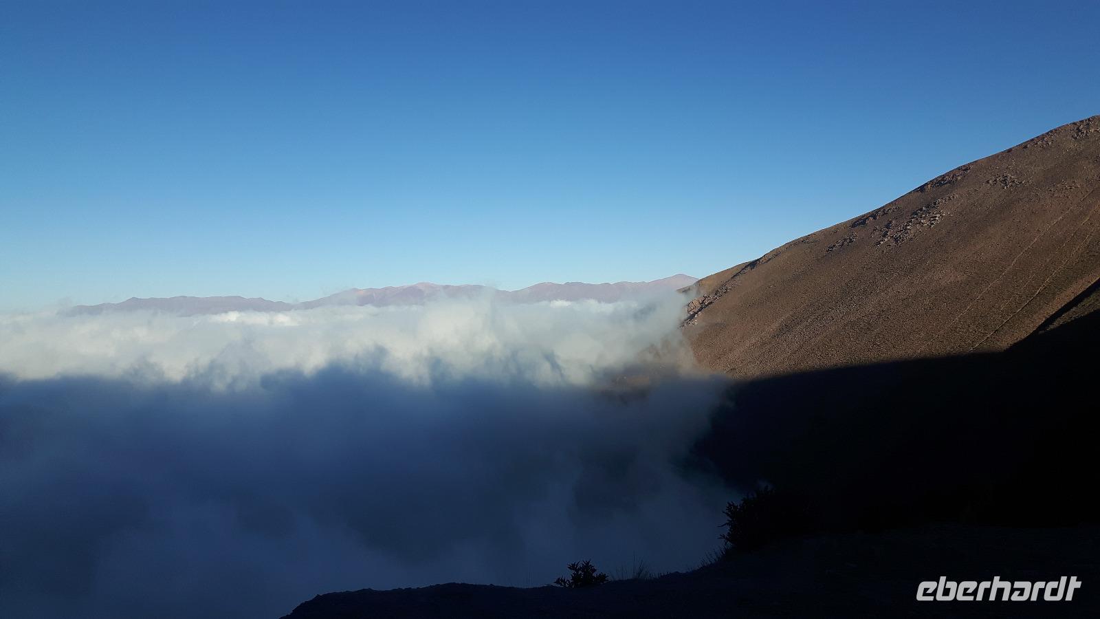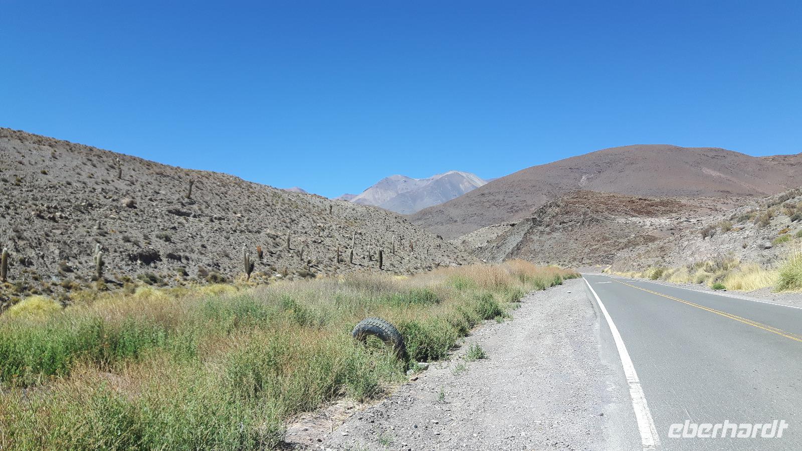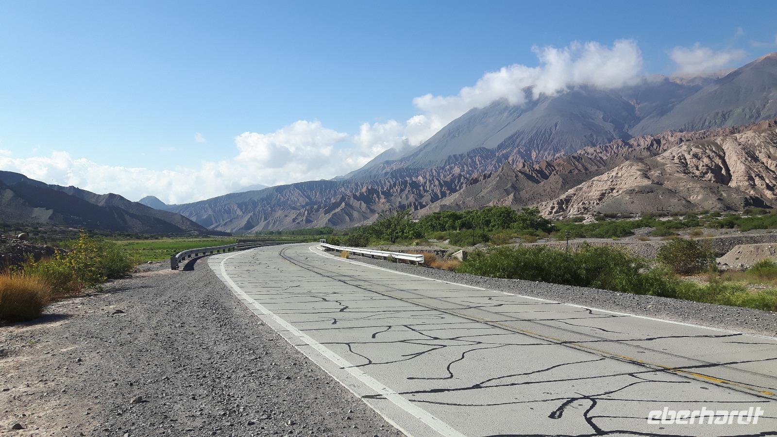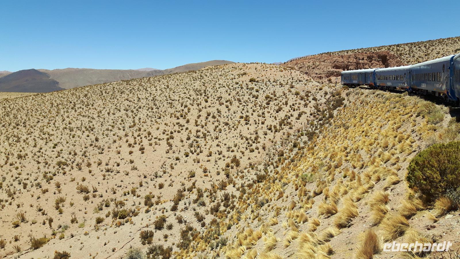 Dem heutigen Tag sahen wir mit großen Erwartungen entgegen - schließlich wollten wir „hoch hinaus" - die berühmte Anden-Gebirgskette erwartete uns! Wir folgten von Salta aus der Strecke des berühmten Zuges zu den Wolken zunächst parallel der Schienen entlang der Straße, da der Zug momentan nur auf einem kleinen Teilstück verkehrt. Trotzdem gewannen wir schnell an Höhe, fuhren vorbei an dichtem Grün und weiter durch atemberaubende Schluchten mit Kakteen. Wir sahen Viadukte und Brücken bzw. stoppten im kleinen Ort Santa Rosa de Tastil. Ingrid zeigte uns auch, wie man Coca-Blätter gegen die Höhenkrankheit verwendet. Gegen Mittag erreichten wir schließlich die ruhige Bergstadt San Antonio de los Cobres, wo sich der Ausgangspunkt für unsere Zugfahrt im „Trén a las nubes" befand. Dies ist eine der letzten Zugfahrten in Argentinien, nachdem das Land einst sehr gut mit Eisenbahnverbindungen versorgt war. Der Startpunkt ist aktuell in San Antonio de los Cobres auf 3.774 m ü.d.M. Von dort aus fährt man dann zum berühmten Polvorilla-Viadukt und wieder zurück. Der „Zug in die Wolken" heißt übrigens so, weil aufgrund der erreichten Höhe oftmals die Wolken unterhalb des Zuges zu sehen sind - wir sahen übrigens heute nicht eine einzige Wolke! Höhepunkt war zweifelsfrei die Überfahrt über das Polvorilla-Viadukt auf 4.220 m ü.d.M. - mit passender musikalischer Umrahmung war das ein „Gänsehaut pur-Gefühl"! Hier oben legten wir auch einen kleinen Aufenthalt ein und begegneten Anden-Bewohnern, die ihre selbst gefertigten Waren zum Verkauf anboten. Besonders emotional war die Begegnung mit kleinen Kindern, die sich über Kleinigkeiten, wie Bleistifte und Papier freuten. In San Antonio de los Cobres zurück, wurden wir von unserer Reiseleiterin Ingrid und dem stets umsichtigen Busfahrer David erwartet und von nun an fuhren wir mit unserem Bus etwa einhundert Kilometer extreme Schotterpiste quer durch die Puna-Hochebene weiter bis zu den berühmten Salzseen „Salinas Grandes", welche in einem Hochtal auf etwa 3.450 m ü.d.M. liegen. Auf einer Fläche von ca. 820 Quadratkilometern erstrecken sich die Salinas Grandes - zum Vergleich: die Fläche von Hamburg beträgt ca. 755 Quadratkilometer. Es handelt sich also um ein extrem großes Gebiet! Die Salzschicht ist etwa 30 cm dick und ohne Sonnenbrille kann man die Augen kaum öffnen, so stark sind die Reflektion und die Helligkeit! Besonders beeindruckend fand ich, dass mitten durch den Salzsee, der ja nichts als steinhartes Salz ist, eine Straße verläuft, auf welcher sogar schwere Lkw´s fahren. Von den Salinas Grandes ging es entlang der Ruta 52, der nördlichsten geteerten Andenpassstraße Südamerikas, über den knapp 4.200 Meter hohen Pass Cuesta de Lipán nach Purmamarca. Die Aussicht war atemberaubend und die Abfahrt trägt zurecht den Namen „Safari in die Wolken", denn die Wolken lagen nun unterhalb der Straße und boten spektakuläre Fotomotive. Die Abfahrt ging hinab ins malerische Dorf Purmamarca, wo wir unser Domizil für die nächsten drei Nächte im Hotel „Terrazas de la Posta Hosteria" bezogen. Purmamarca ist ein kleines, idyllisches Städtchen auf etwa 2.200 Metern Höhe, das seinen Platz zwischen dem Berg der sieben Farben und den angrenzenden Kordilleren gefunden hat. Ein gemeinsames Abendessen rundete diesen langen, aber auch sehr eindrucksvollen Tag ab.