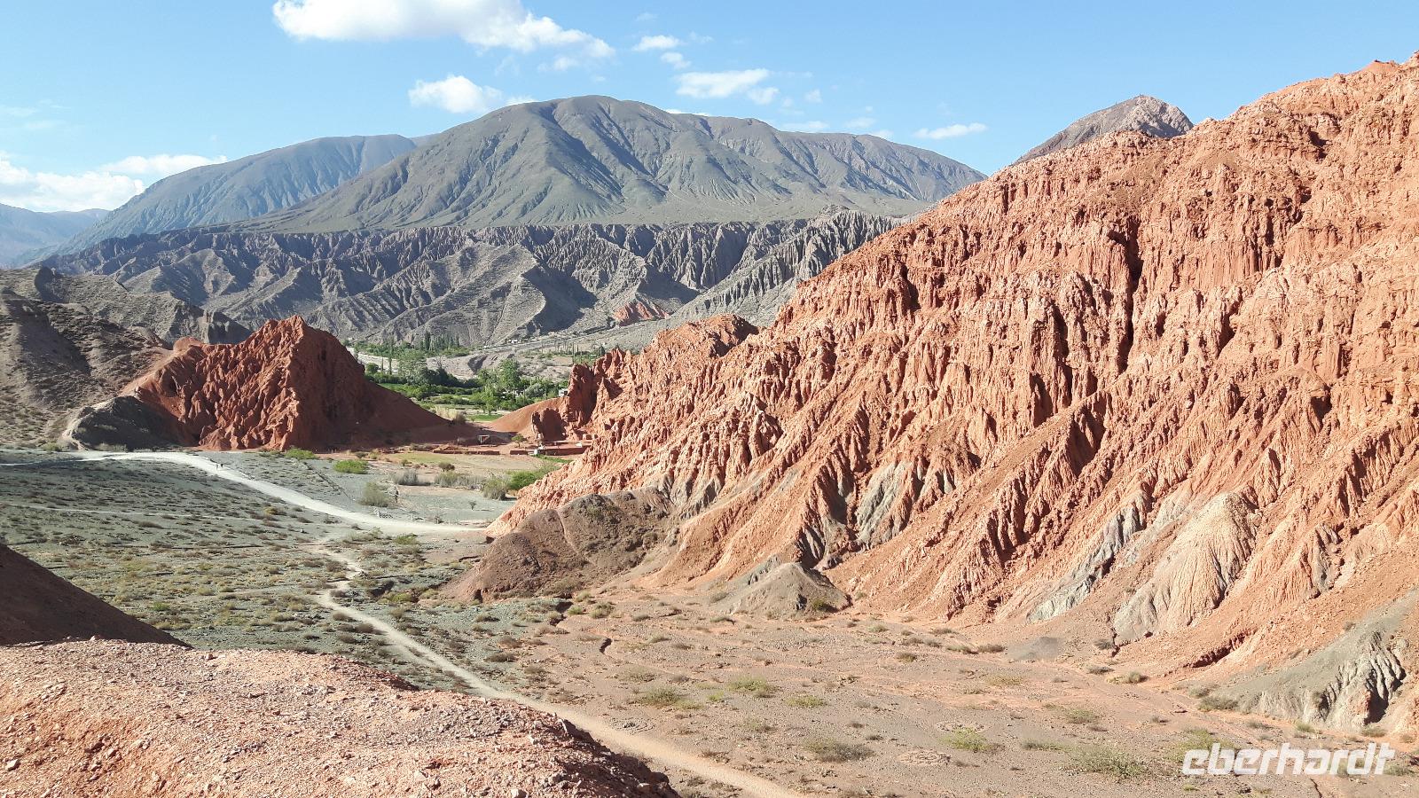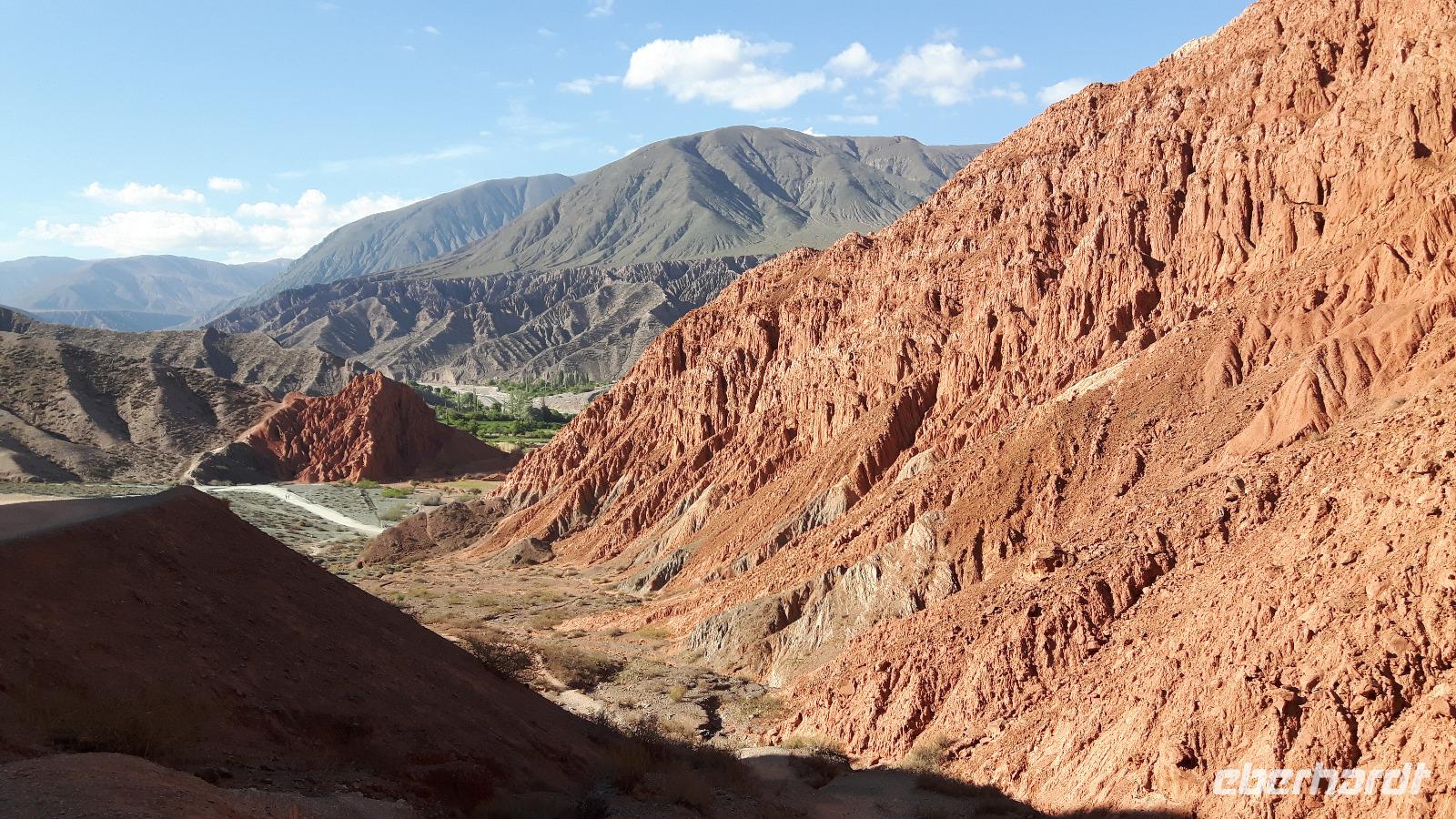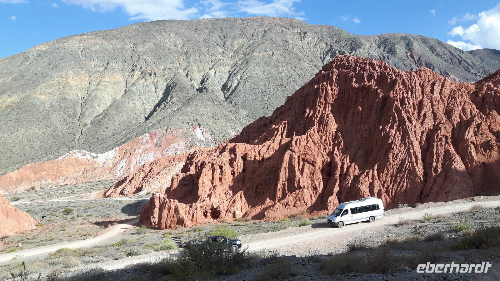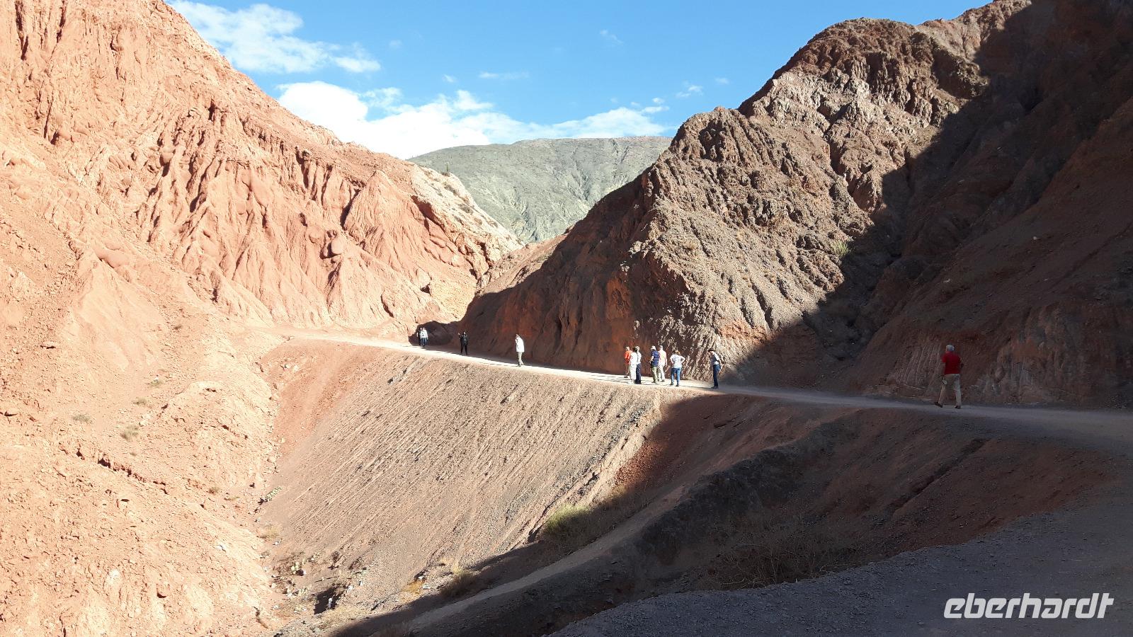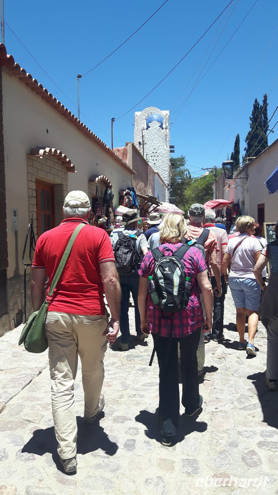 Wir freuten uns auf einen weiteren Tag mit unserem tollen Team Ingrid & David! Ein erster Fotostopp an der größten Attraktion des Ortes Purmamarca folgte sogleich, am „Cerro de los Siete Colores", dem siebenfarbigen Berg. Es hat immerhin über 600 Millionen Jahre gedauert, bis sich seine heutige Erscheinung durch komplexe geologische Prozesse herausgebildet hat - einfach grandios anzusehen! Kurze Zeit später erreichten wir bereits die etwa 150 Kilometer lange Humahuaca-Schlucht, die vor allem durch die einzigartige Färbung ihrer Felswände berühmt ist. Wir erreichten Tilcara, wo wir uns die Zeit für eine ausgiebige Besichtigung der rekonstruierten Festung der Omaguaca-Indianer nahmen. Diese schützte die Eingeborenen immerhin erfolgreich im Kampf gegen die einfallenden Spanier. Von der El Pucará de Tilcara aus hatten wir immer wieder spektakuläre Blicke über das gesamte Tal. Auch der äußerst sehenswerten Stadt Humahuaca selbst, die Ende des 16. Jahrhunderts im Kolonialstil errichtet wurde, statteten wir einen Besuch ab. Wir stellten voller Respekt fest, dass die Einwohner der Humahuaca-Schlucht nach wie vor hauptsächlich Indios sind, die hier ungestört ihrer eigenen Kultur und Religion nachgehen können. Immer wieder faszinierten uns die verschiedenen Farbspiele der Schlucht - fast überall gab es interessante Foto-Motive! Ihre steilen Wände schimmern in allen Farben des Regenbogens. Leuchtend roter Sandstein wechselt sich ab mit schwarzem, schroffem Fels, und lehmfarbigen Hängen, zwischen denen immer wieder Baumgruppen als grüne Farbkleckse auftauchen - unglaublich schön! Einige Abschnitte tragen sogar zurecht Namen wie „Maimara" („Malerpalette"). Heute waren wir bereits am Nachmittag in Purmamarca zurück und zusätzlich zum eigentlichem Programm machten wir uns dort zum „Hügel der sieben Farben" auf. Mit unserem Bus ging es hinauf, teilweise stiegen wir aus und spazierten weiter, aber immer wieder bestaunten wir das Farb-Spektrum von fast Weiß über Rosa und Grün bis hin zum ans Schwarze grenzenden Dunkelrot. Unschwer erkannten wir in den Marmorierungen die sieben Farbtöne, die dem Berg ihren Namen gegeben haben. Mit ein wenig gutem Willen könnten es sogar noch mehr sein! Wir waren uns einig - das war der gelungene Abschluss unseres heutigen Besichtigungsprogramms! Diesen Abend ließen wir bei einem geselligen Beisammensein gemütlich ausklingen!