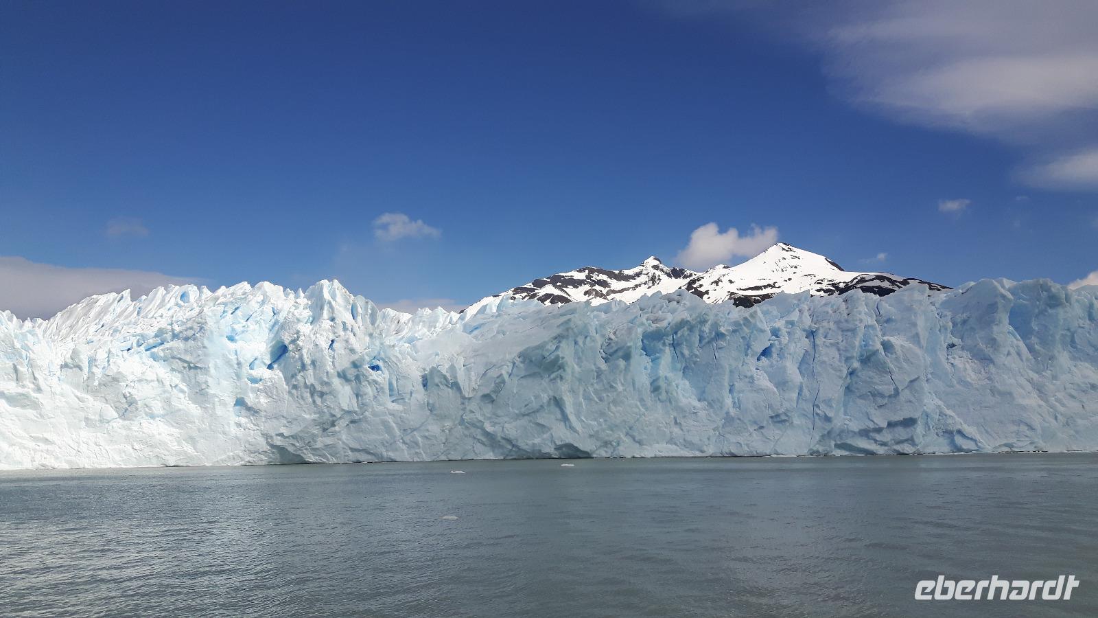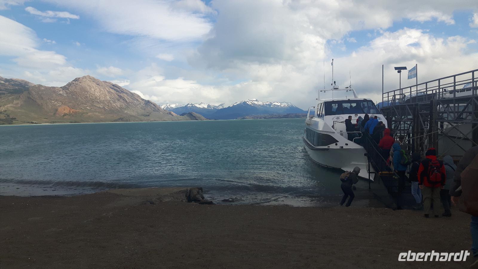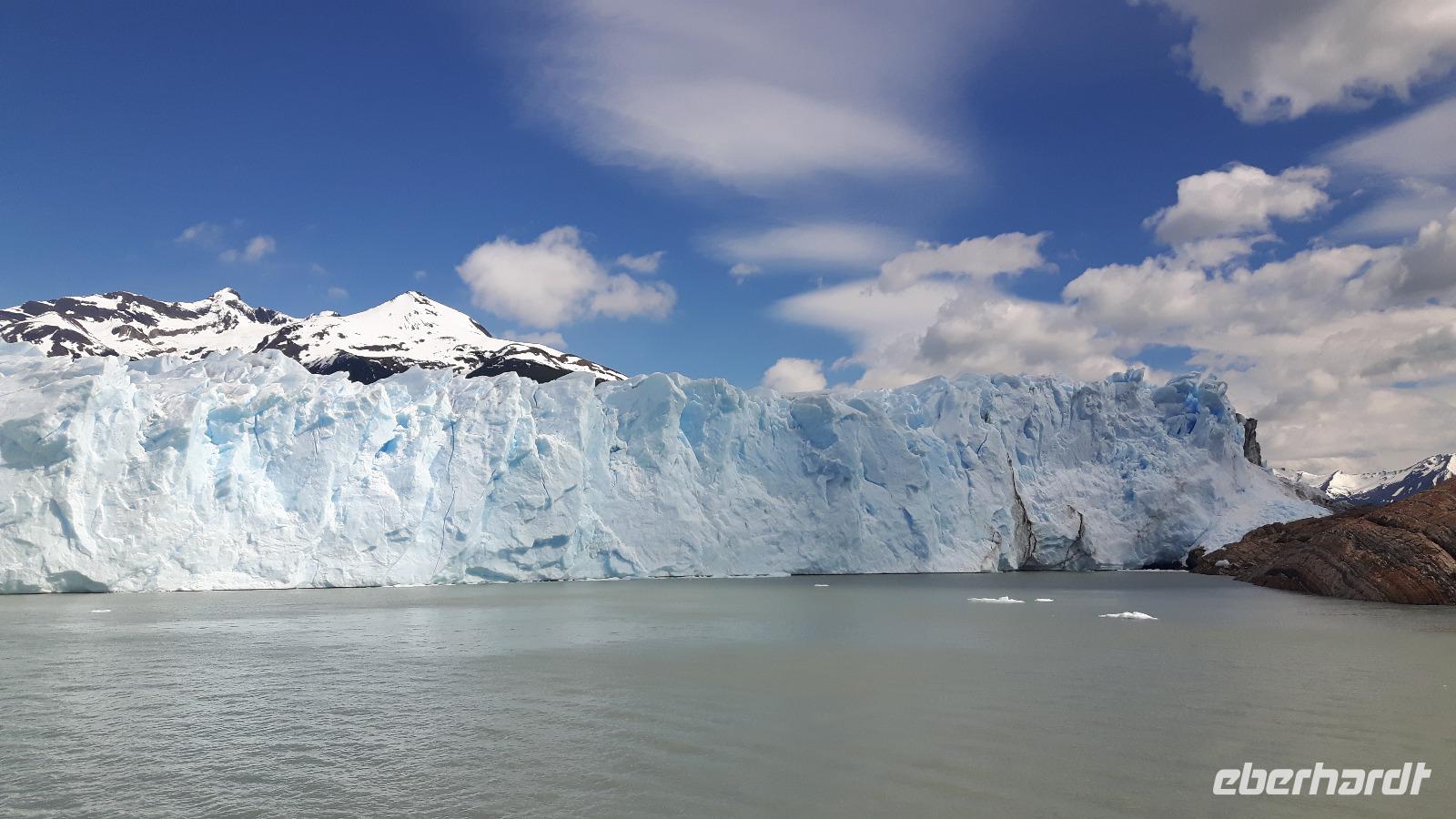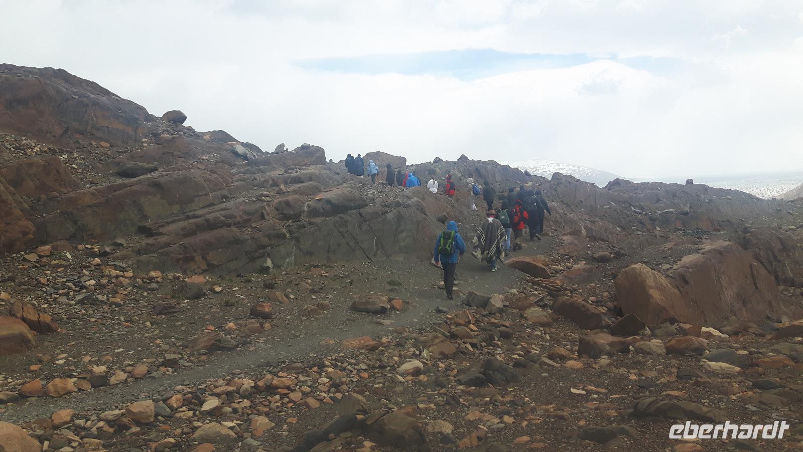 Eigentlich war heute ein Tag zum „Ausspannen" angesagt, aber wir wollten natürlich so viel wie möglich erleben und so entschied sich unsere komplette Reisegruppe für einen ganztägigen Ausflug zu einer typischen Estancia. Zunächst fuhren wir mit einem Bus nach Puerto Banderas und von dort ging es mit dem Schiff über den Lago Argentino weiter. Diese insgesamt fast 3-stündige Bootsfahrt führte uns an mächtigen Eisbergen vorbei, bis dann schließlich auch der über 50 Kilometer lange Upsala-Gletscher zu sehen war. Wie alle Gletscher dieser Region wird er aus dem südpatagonischen Eisfeld gespeist und mündet in den Lago Argentino. Gegen Mittag erreichten wir die Estancia Cristina, ein südamerikanisches Landgut in einem Tal, umgeben von Seen, Bergen, Gletschern und Wald. Hier wurden wir von einem Guide herzlich begrüßt, der mit uns gemeinsam eine knapp 10 Kilometer lange beeindruckende Jeep-Safari unternahm. Das Ziel war ein Aussichtspunkt mit spektakulären Blicken auf den Upsala-Gletscher. Zudem wanderten wir das letzte Stück über ehemalige Gletscherfelder - ein einmaliges Erlebnis! Der typische patagonische Wind war natürlich auch hier unser ständiger Begleiter! Zurück in der Estancia, gab es ein von Eberhardt TRAVEL spendiertes Mittags-Picknick mit kleinen Leckereien und Sekt. Gut gestärkt unternahmen wir einen anschließenden Rundgang durch das hiesige Museum und über die gesamte Farm. Die Estancia Cristina Lodge selbst wurde bereits 1904 von englischen Pionieren gegründet und diesen historischen Charme eines patagonischen Landhauses hat sie sich bis heute erhalten. Die Estancia ist der perfekte Ort für jene, die Entspannung und Abenteuer inmitten einer faszinierenden Natur suchen - ein wahrhaft schönes Fleckchen Erde! Der Tag war zwar sehr lang, denn wir kehrten erst am Abend nach El Calafate zurück, aber es war ein Tag voller beeindruckender Erlebnisse inmitten traumhafter Naturkulissen!