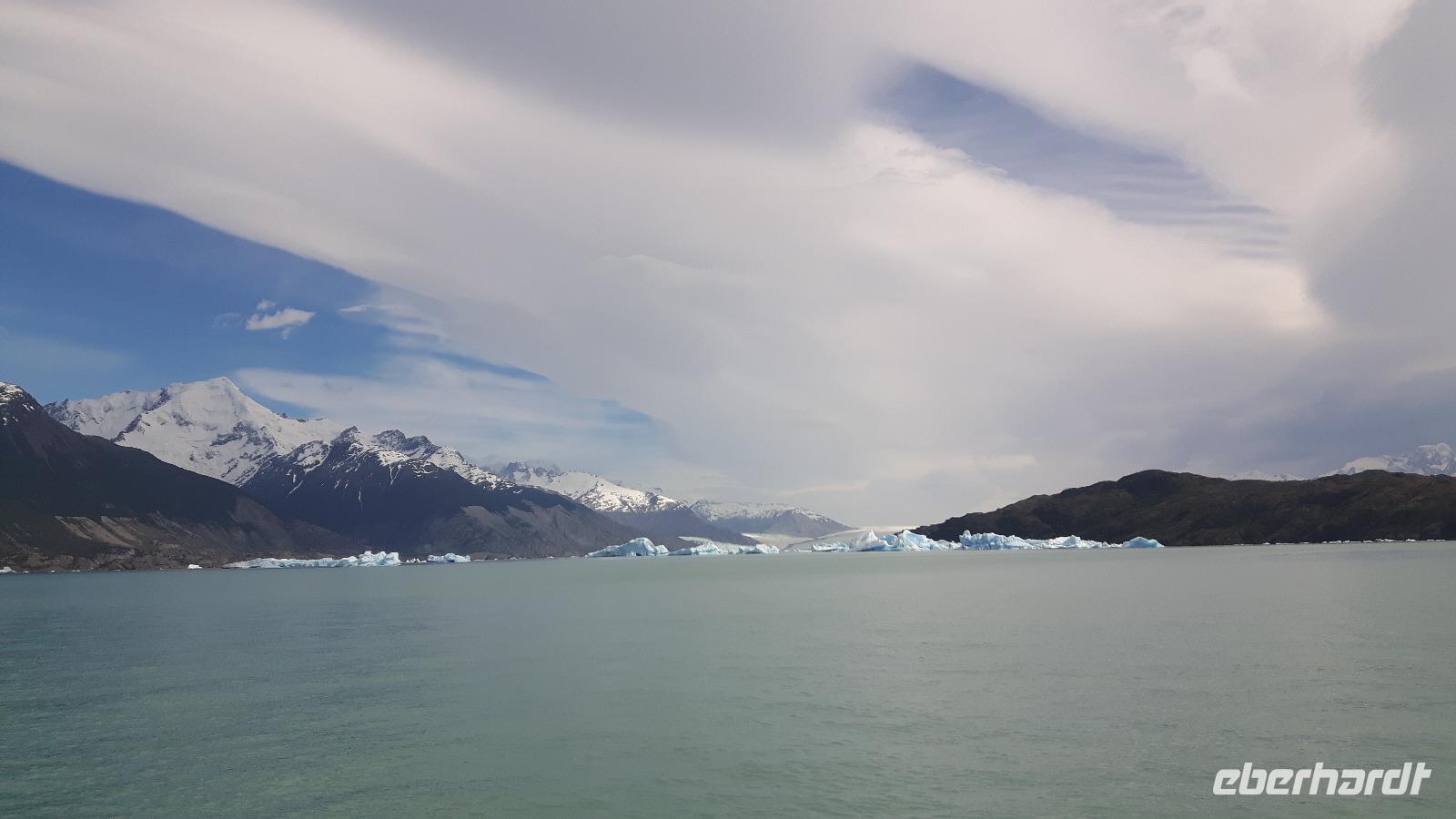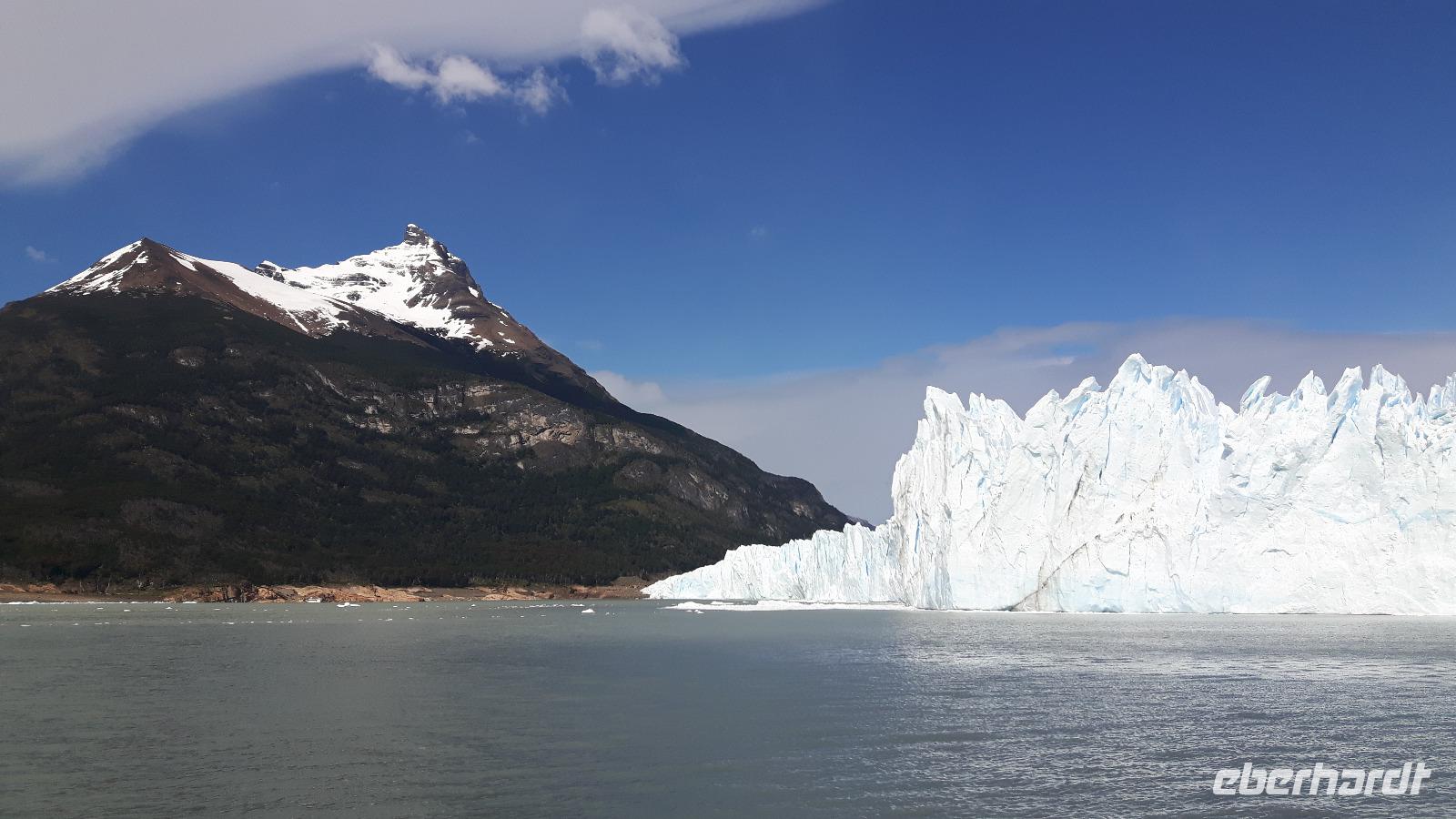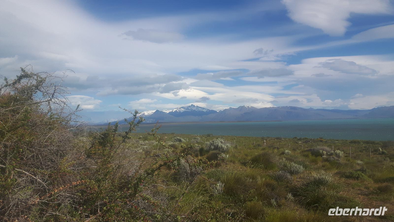 Eigentlich war heute ein Tag zum „Ausspannen" angesagt, aber wir wollten natürlich so viel wie möglich erleben und so entschied sich unsere komplette Reisegruppe für einen ganztägigen Ausflug zu einer typischen Estancia. Zunächst fuhren wir mit einem Bus nach Puerto Banderas und von dort ging es mit dem Schiff über den Lago Argentino weiter. Diese insgesamt fast 3-stündige Bootsfahrt führte uns an mächtigen Eisbergen vorbei, bis dann schließlich auch der über 50 Kilometer lange Upsala-Gletscher zu sehen war. Wie alle Gletscher dieser Region wird er aus dem südpatagonischen Eisfeld gespeist und mündet in den Lago Argentino. Gegen Mittag erreichten wir die Estancia Cristina, ein südamerikanisches Landgut in einem Tal, umgeben von Seen, Bergen, Gletschern und Wald. Hier wurden wir von einem Guide herzlich begrüßt, der mit uns gemeinsam eine knapp 10 Kilometer lange beeindruckende Jeep-Safari unternahm. Das Ziel war ein Aussichtspunkt mit spektakulären Blicken auf den Upsala-Gletscher. Zudem wanderten wir das letzte Stück über ehemalige Gletscherfelder - ein einmaliges Erlebnis! Der typische patagonische Wind war natürlich auch hier unser ständiger Begleiter! Zurück in der Estancia, gab es ein von Eberhardt TRAVEL spendiertes Mittags-Picknick mit kleinen Leckereien und Sekt. Gut gestärkt unternahmen wir einen anschließenden Rundgang durch das hiesige Museum und über die gesamte Farm. Die Estancia Cristina Lodge selbst wurde bereits 1904 von englischen Pionieren gegründet und diesen historischen Charme eines patagonischen Landhauses hat sie sich bis heute erhalten. Die Estancia ist der perfekte Ort für jene, die Entspannung und Abenteuer inmitten einer faszinierenden Natur suchen - ein wahrhaft schönes Fleckchen Erde! Der Tag war zwar sehr lang, denn wir kehrten erst am Abend nach El Calafate zurück, aber es war ein Tag voller beeindruckender Erlebnisse inmitten traumhafter Naturkulissen!