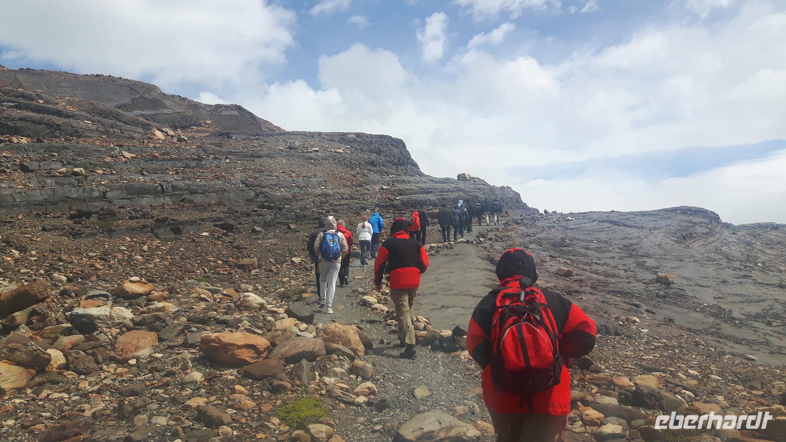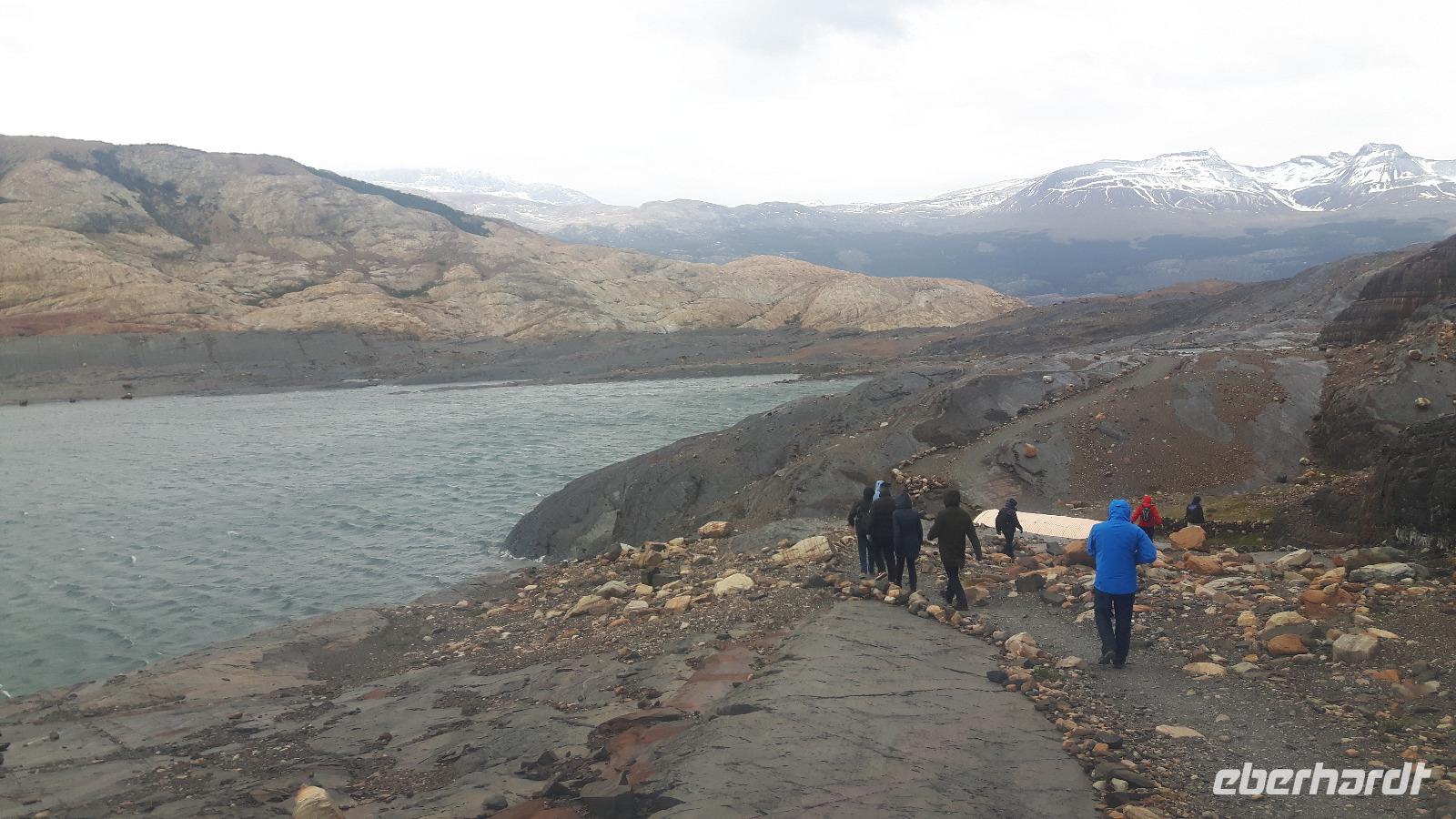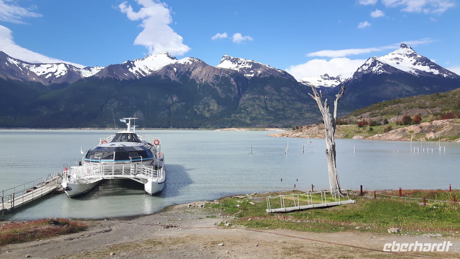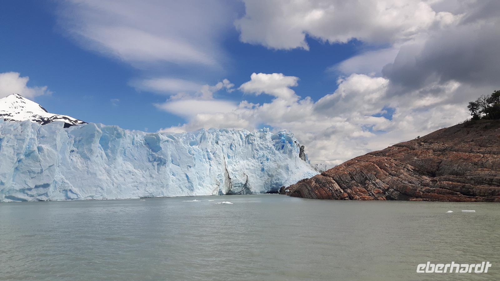 Eigentlich war heute ein Tag zum „Ausspannen" angesagt, aber wir wollten natürlich so viel wie möglich erleben und so entschied sich unsere komplette Reisegruppe für einen ganztägigen Ausflug zu einer typischen Estancia. Zunächst fuhren wir mit einem Bus nach Puerto Banderas und von dort ging es mit dem Schiff über den Lago Argentino weiter. Diese insgesamt fast 3-stündige Bootsfahrt führte uns an mächtigen Eisbergen vorbei, bis dann schließlich auch der über 50 Kilometer lange Upsala-Gletscher zu sehen war. Wie alle Gletscher dieser Region wird er aus dem südpatagonischen Eisfeld gespeist und mündet in den Lago Argentino. Gegen Mittag erreichten wir die Estancia Cristina, ein südamerikanisches Landgut in einem Tal, umgeben von Seen, Bergen, Gletschern und Wald. Hier wurden wir von einem Guide herzlich begrüßt, der mit uns gemeinsam eine knapp 10 Kilometer lange beeindruckende Jeep-Safari unternahm. Das Ziel war ein Aussichtspunkt mit spektakulären Blicken auf den Upsala-Gletscher. Zudem wanderten wir das letzte Stück über ehemalige Gletscherfelder - ein einmaliges Erlebnis! Der typische patagonische Wind war natürlich auch hier unser ständiger Begleiter! Zurück in der Estancia, gab es ein von Eberhardt TRAVEL spendiertes Mittags-Picknick mit kleinen Leckereien und Sekt. Gut gestärkt unternahmen wir einen anschließenden Rundgang durch das hiesige Museum und über die gesamte Farm. Die Estancia Cristina Lodge selbst wurde bereits 1904 von englischen Pionieren gegründet und diesen historischen Charme eines patagonischen Landhauses hat sie sich bis heute erhalten. Die Estancia ist der perfekte Ort für jene, die Entspannung und Abenteuer inmitten einer faszinierenden Natur suchen - ein wahrhaft schönes Fleckchen Erde! Der Tag war zwar sehr lang, denn wir kehrten erst am Abend nach El Calafate zurück, aber es war ein Tag voller beeindruckender Erlebnisse inmitten traumhafter Naturkulissen!