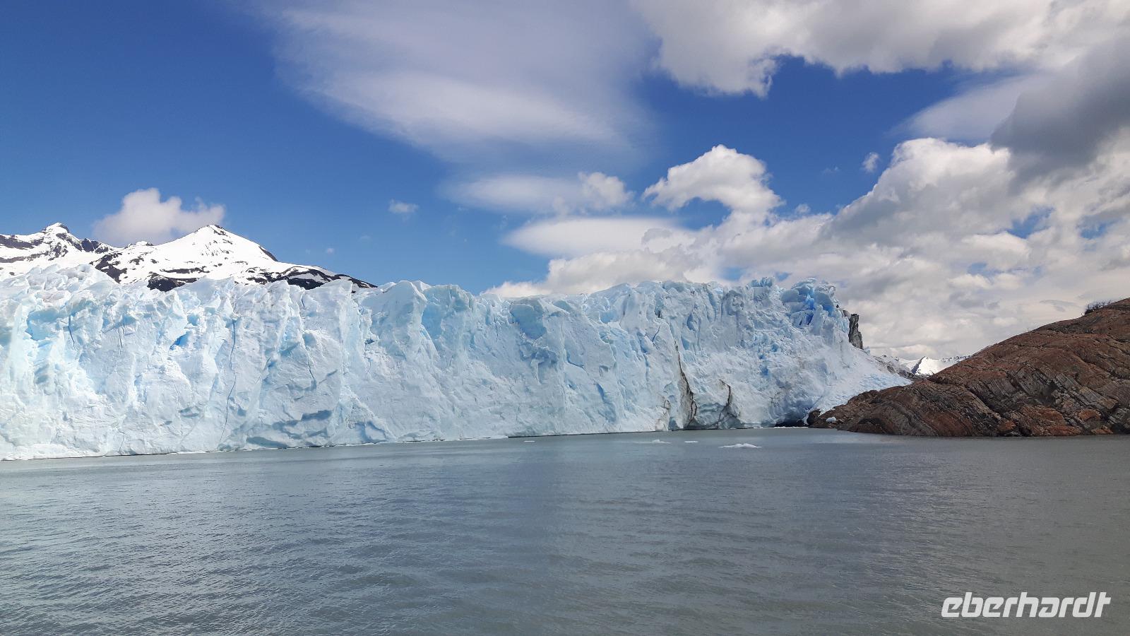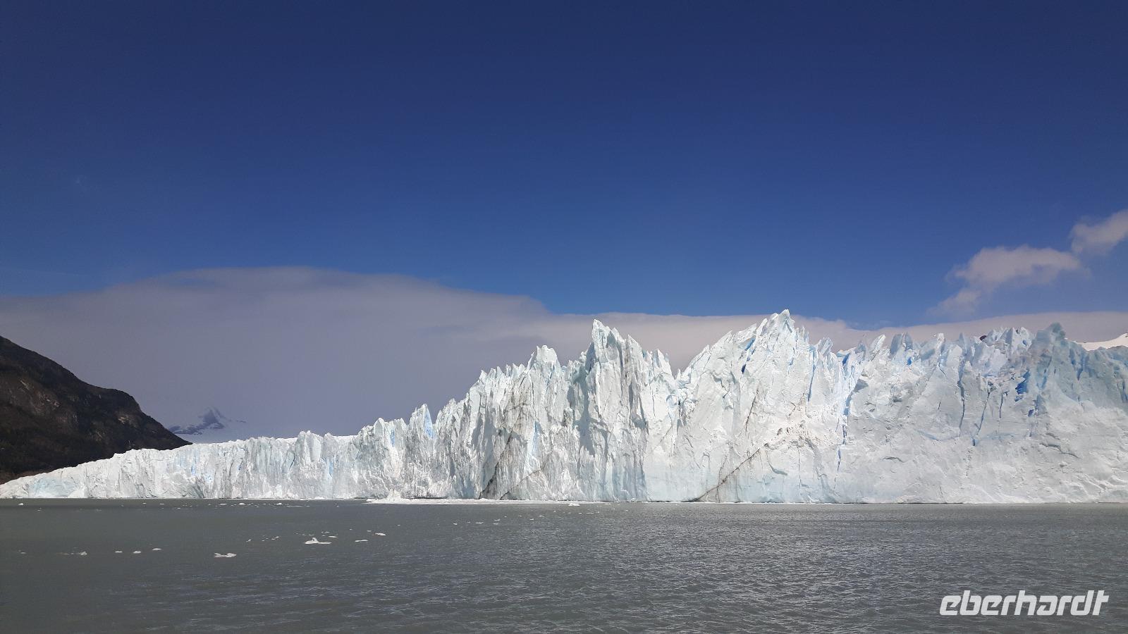 Nach dem Frühstück wurden wir von Gererdo und dem Buschauffeur Eduardo zum heutigen Ausflug in den Nationalpark Los Glaciares abgeholt. Wir verließen El Calafate in westlicher Richtung und fuhren über die patagonische Steppe in den Nationalpark hinein. Zuerst unternahmen wir eine etwa einstündige Katamaran-Fahrt, die direkt an die bis zu über siebzig Meter hohen Wände des Perito Moreno-Gletschers heran führte - die Schönheit der Natur ist nicht in Worte zu fassen! Anschließend setzen wir die Fahrt wieder im Kleinbus fort, bis zu den Panorama-Laufstegen oberhalb des Gletschers. Hier hatten wir ausreichend Zeit, um das Ausmaß des Gletschers zu erahnen und seine Schönheit mit allen Sinnen zu genießen. Immer wieder brachen Eisbrocken aus der fünf Kilometer breiten Gletscherwand ab und stürzen in den Lago Argentino - eine beeindruckende Symphonie von Farben! Der Perito Moreno-Gletscher ist, so erfuhren wir, einer der wenigen Gletscher, die noch wachsen. Die Ursache ist allerdings ungeklärt, zumal die anderen Gletscher, die wie er vom südpatagonischen Eisfeld gespeist werden, zum Teil deutlich zurückweichen. Tief beeindruckt kehrten wir am Nachmittag nach El Calafate zurück. Dieser Ausflug war grandios und gehört nicht umsonst zu den Höhepunkten einer jeden Südamerikareise, denn die Schönheit des Gletschers Perito Moreno ist wirklich unbeschreiblich!