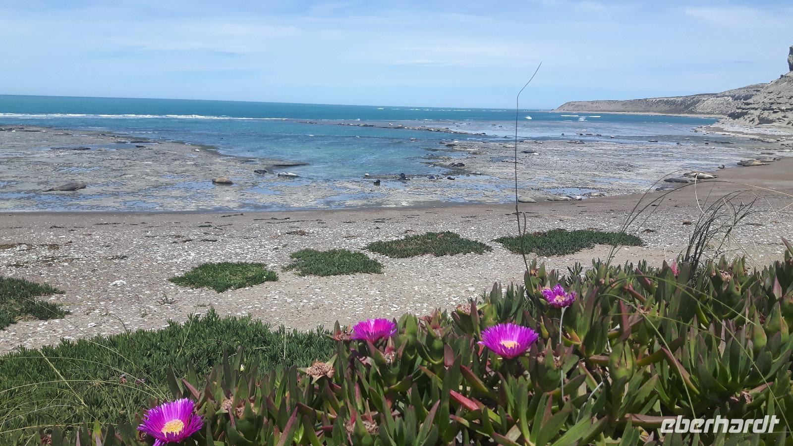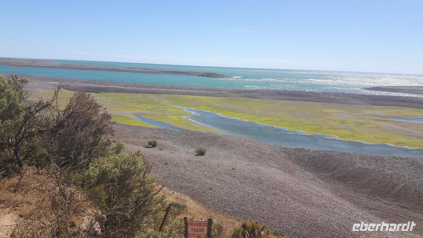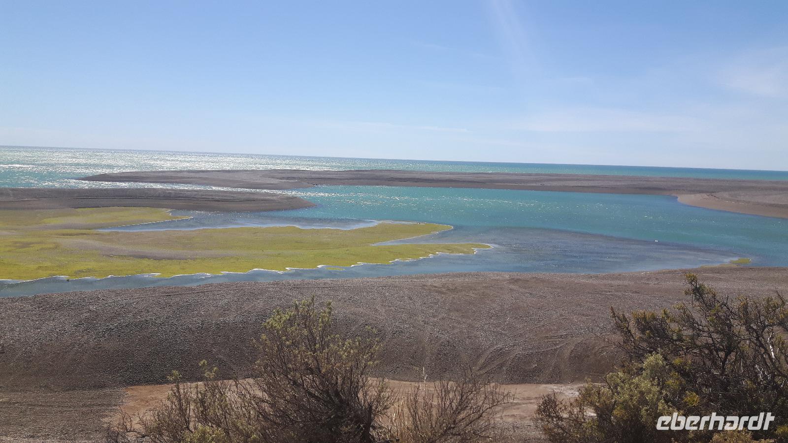 Den Vormittag verbrachten wir nochmals in El Calafate, um ein paar Einkäufe zu tätigen oder einfach nur ein bisschen zu Bummeln und die Seele baumeln zu lassen. Am Nachmittag stand dann bereits unser nächster Flug an und diesmal hieß unser Ziel Trelew, unweit der Atlantikküste gelegen. Dort wurden wir von Roswitha, einer schwäbischen Auswanderin, freudig begrüßt und es ging sofort nach Puerto Madryn weiter. Unterwegs gewannen wir bereits erste Eindrücke von der typischen Pampa, der patagonischen Steppe. Für die nächsten drei Nächte checkten wir im Hotel „Bahia Nueva" in Puerto Madryn ein. Das Hotel befand sich direkt an der Atlantikküste. Gemeinsamer erkundeten wir bereits an diesem Abend den Ferienort und unternahmen einen ersten Spaziergang entlang der Strandpromenade. Schließlich landeten wir im Restaurant „Bistro de Mar - Nautico", direkt am Strand. Nicht nur die Lage des Restaurants überzeugte, sondern auch das vorzügliche Essen!