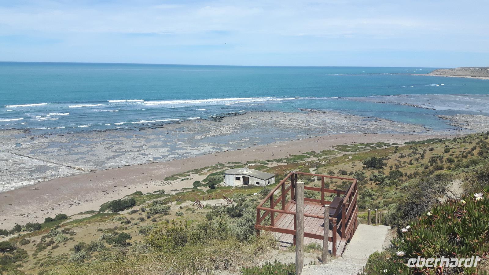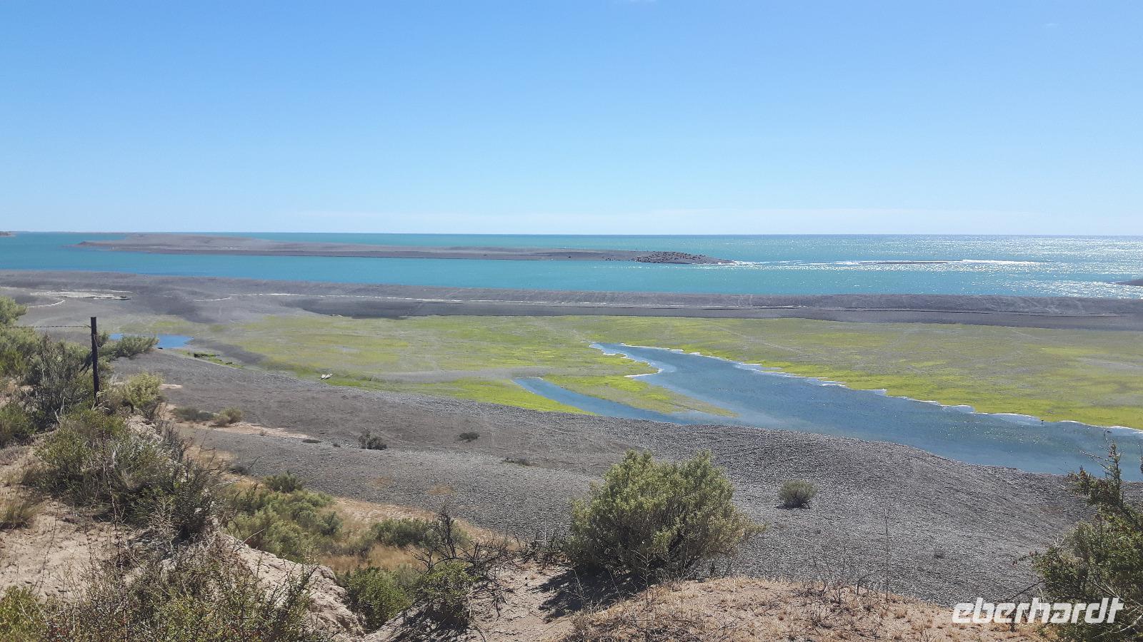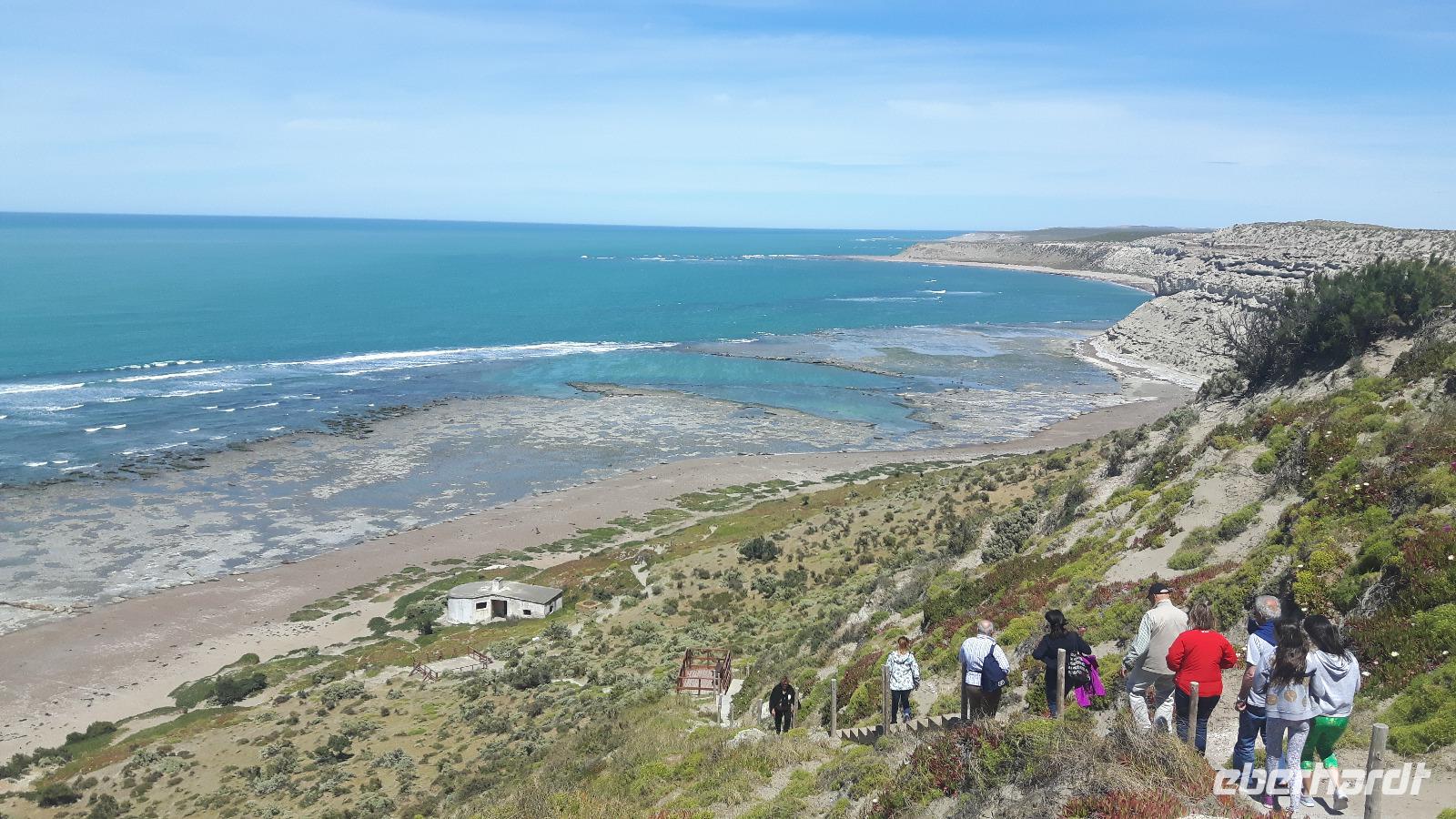 Den Vormittag verbrachten wir nochmals in El Calafate, um ein paar Einkäufe zu tätigen oder einfach nur ein bisschen zu Bummeln und die Seele baumeln zu lassen. Am Nachmittag stand dann bereits unser nächster Flug an und diesmal hieß unser Ziel Trelew, unweit der Atlantikküste gelegen. Dort wurden wir von Roswitha, einer schwäbischen Auswanderin, freudig begrüßt und es ging sofort nach Puerto Madryn weiter. Unterwegs gewannen wir bereits erste Eindrücke von der typischen Pampa, der patagonischen Steppe. Für die nächsten drei Nächte checkten wir im Hotel „Bahia Nueva" in Puerto Madryn ein. Das Hotel befand sich direkt an der Atlantikküste. Gemeinsamer erkundeten wir bereits an diesem Abend den Ferienort und unternahmen einen ersten Spaziergang entlang der Strandpromenade. Schließlich landeten wir im Restaurant „Bistro de Mar - Nautico", direkt am Strand. Nicht nur die Lage des Restaurants überzeugte, sondern auch das vorzügliche Essen!