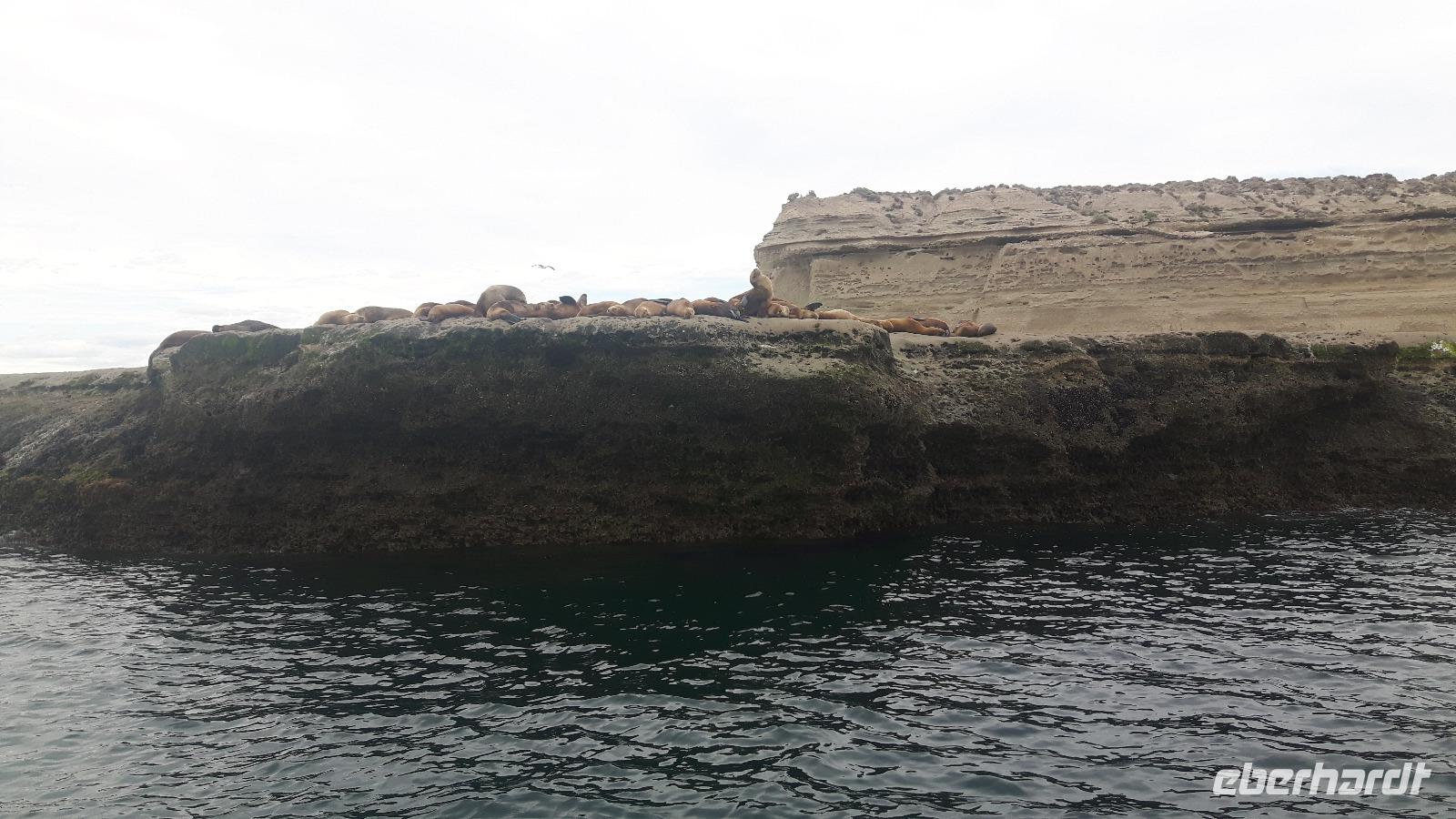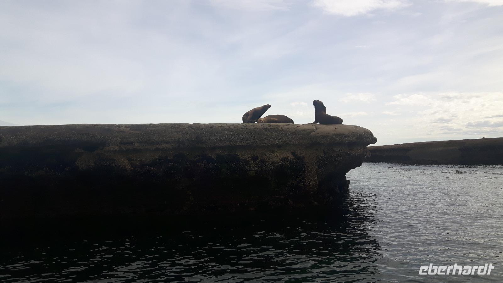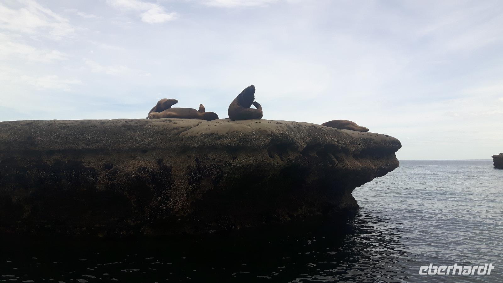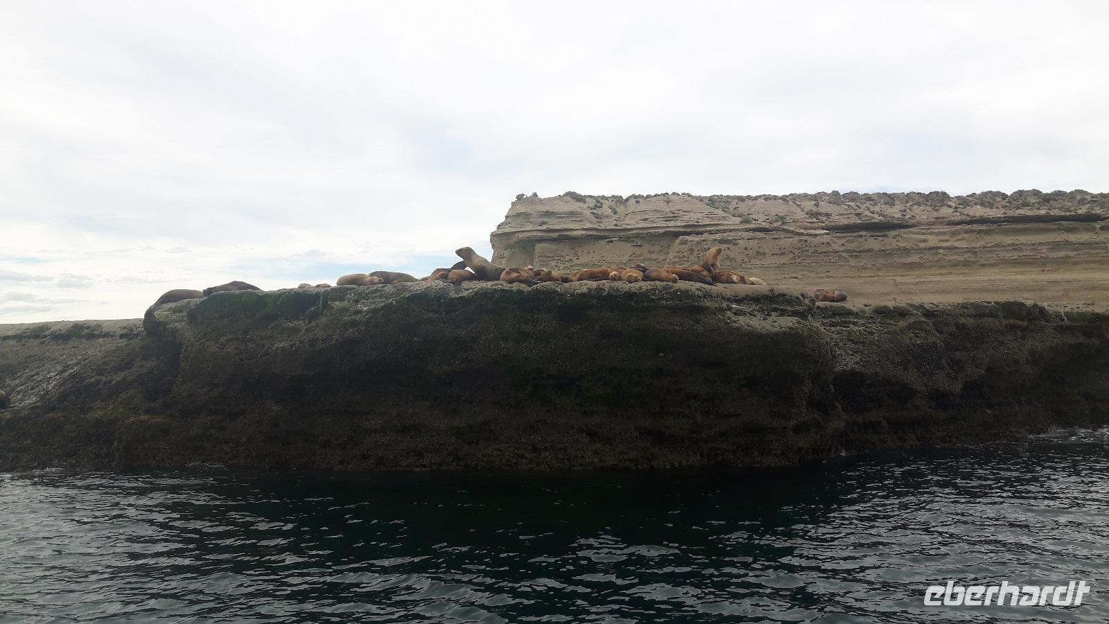 Der heutige Tag stand ganz im Zeichen spannender Tier-Beobachtungen auf der nördlich von Puerto Madryn gelegenen Halbinsel Valdés. Was wir allerdings zu sehen bekamen, konnten wir im vorab nicht planen, denn die Natur hat so ihre eigenen Regeln. Wir fuhren gemeinsam mit Reiseleiterin Roswitha und Buschauffeur Claudio kilometerweit durch die Patagonische Steppe. Zugegeben, die Landschaft war teilweise sehr eintönig, aber die Beobachtung von zahlreichen Tieren entschädigte wiederum für alles andere. Einen ersten Stopp legten wir am Informationszentrum des Naturparks mit einer interessanten Ausstellung über die Flora und Fauna der Halbinsel ein, somit hatten wir eine Idee, was uns gegebenenfalls erwarten würde. Hier gibt es auch einen kleinen Aussichtsturm, allerdings ist der Blick auf die sogenannte Vogelinsel relativ unspektakulär! Danach war dann die Asphaltstraße zu Ende und ca. 200 Kilometer Schotterpiste standen auf dem Programm...! Auf dieser Strecke konnten wir dann unter anderem Patagonische Meerschweinchen, Schopfsteißhühnern, Guanacos und Erdkeuzchen/Kaninchen-Eulen sichten! Über Punta Cantor erreichten wir am Mittag Punta Delgada, schon von weitem am Leuchtturm zu erkennen. Ein Weg, gespickt mit etwa 170 Treppenstufen, führte uns hinunter zum Strand, wo wir See-Elefanten mit ihren Jungen hautnah erleben konnten. Sie ruhen sich nämlich an den Küsten der Halbinsel aus und verschmelzen teilweise optisch mit der Landschaft. Nach einer reichlichen kulinarischen Stärkung sahen wir im weiteren Fahrtverlauf ausgedehnte Salz-Sümpfe und kamen dann schließlich in Punta Pirámide, einem kleinen Ort mit Café und ein paar wenigen Geschäften, an. Von hier aus wollten wir auf Wal-Beobachtung gehen und das Glück meinte es gut mit uns, denn wir hatten bereits nach nur wenigen Minuten Bootsfahrt die ersten zwei Wale gesichtet! Voller interessanter Tierbeobachtungs-Abenteuer fuhren wir zurück nach Puerto Madryn.