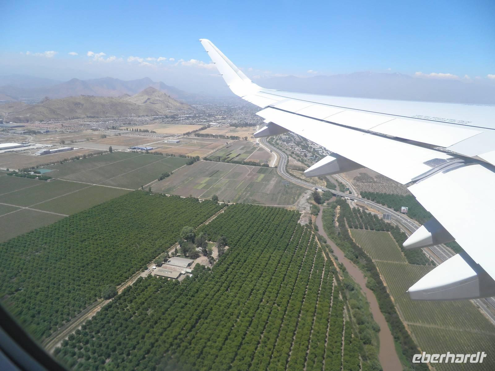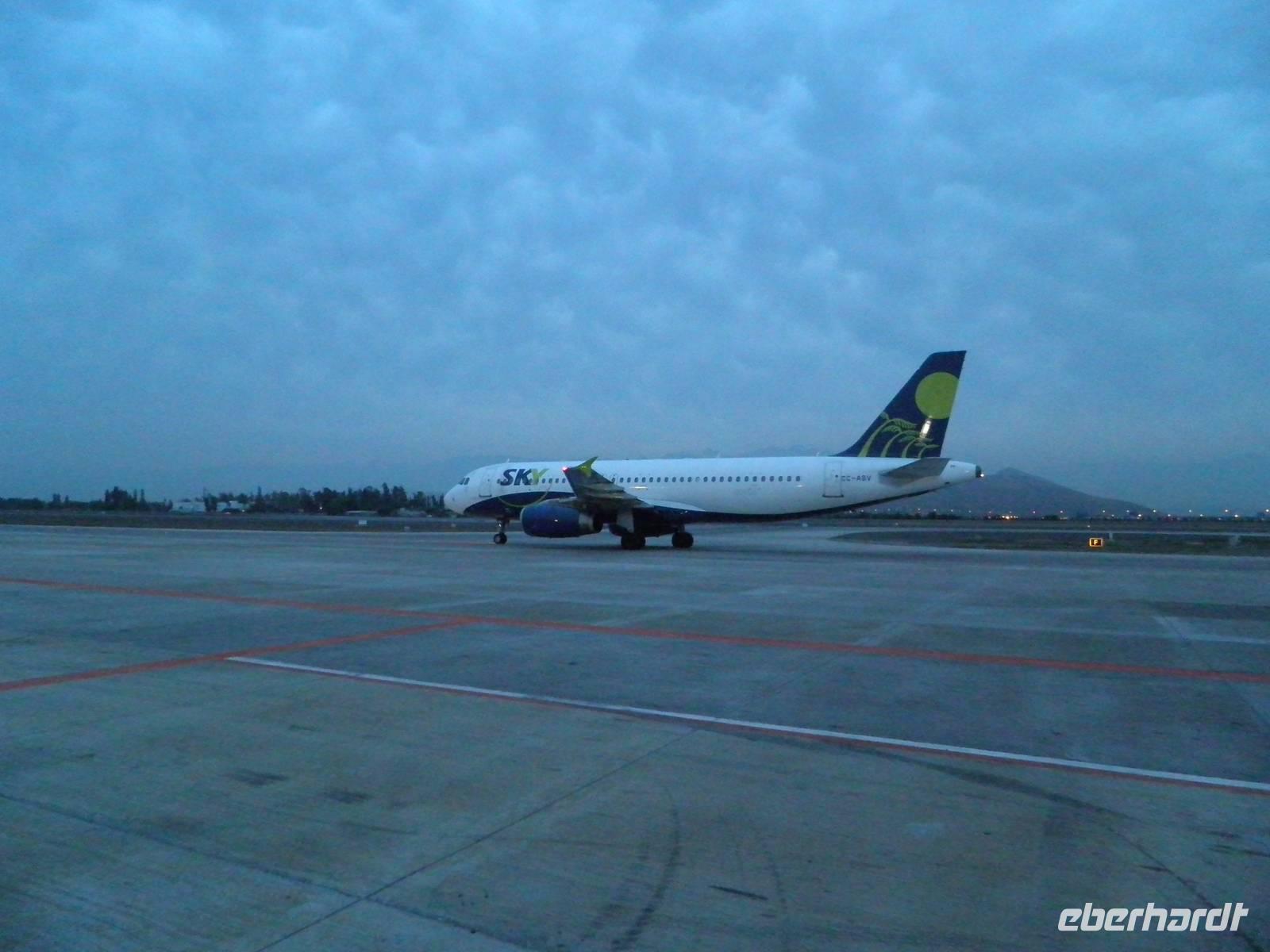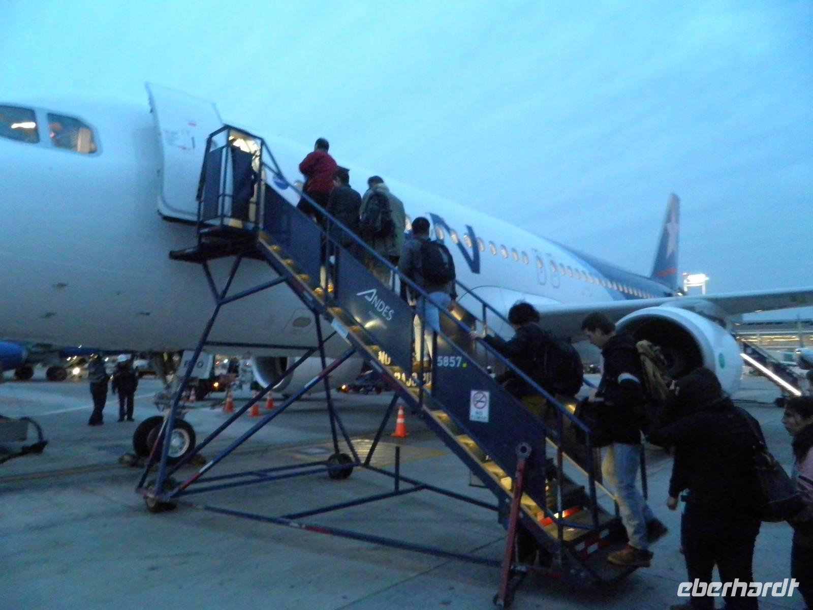 Am Abend landeten wir dort auf dem Flughafen Charles de Gaulle. Dort begaben wir uns in ein anderes Terminal, wo wir nach etwas Wartezeit schließlich unser Flugzeug nach Santiago de Chile besteigen konnten. Natürlich war der Flug von etwa 14 Stunden eine anstrengende Angelegenheit, aber auch diese Nacht sollte vergehen und wir erreichten alle wohlbehalten am nächsten Morgen unser erstes Reiseziel: Santiago de Chile
