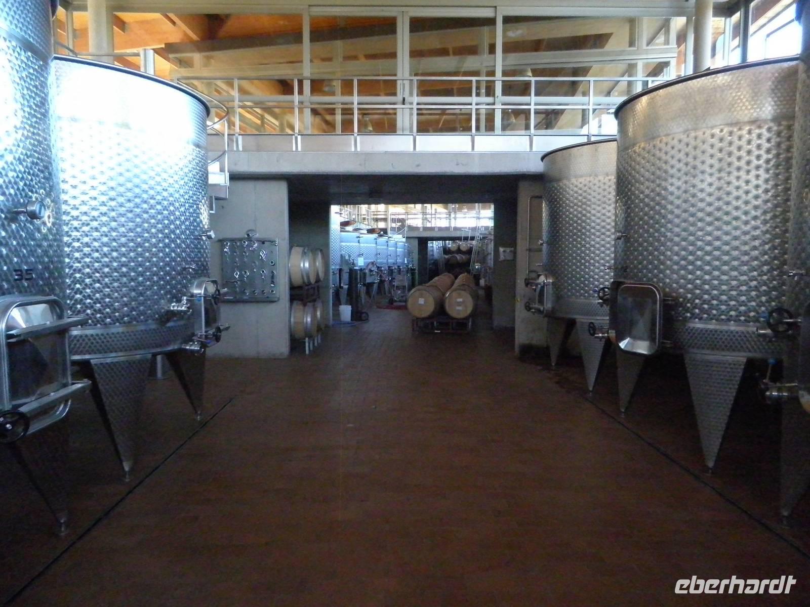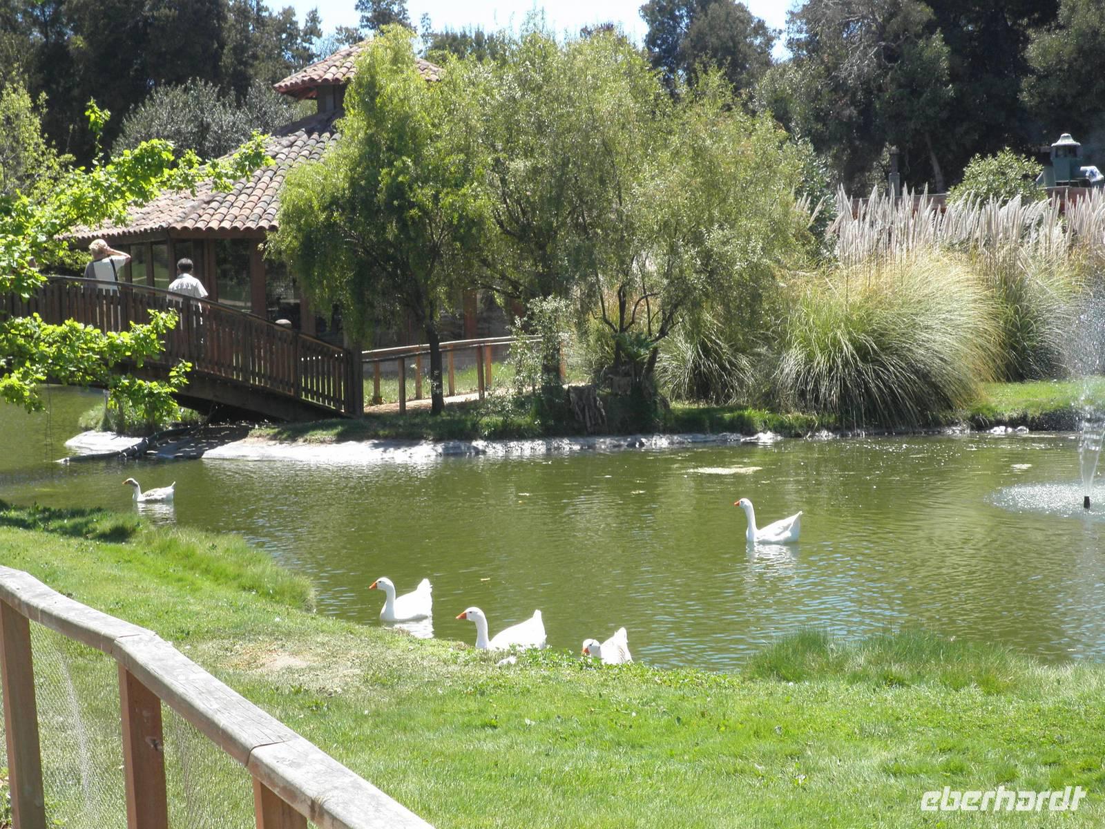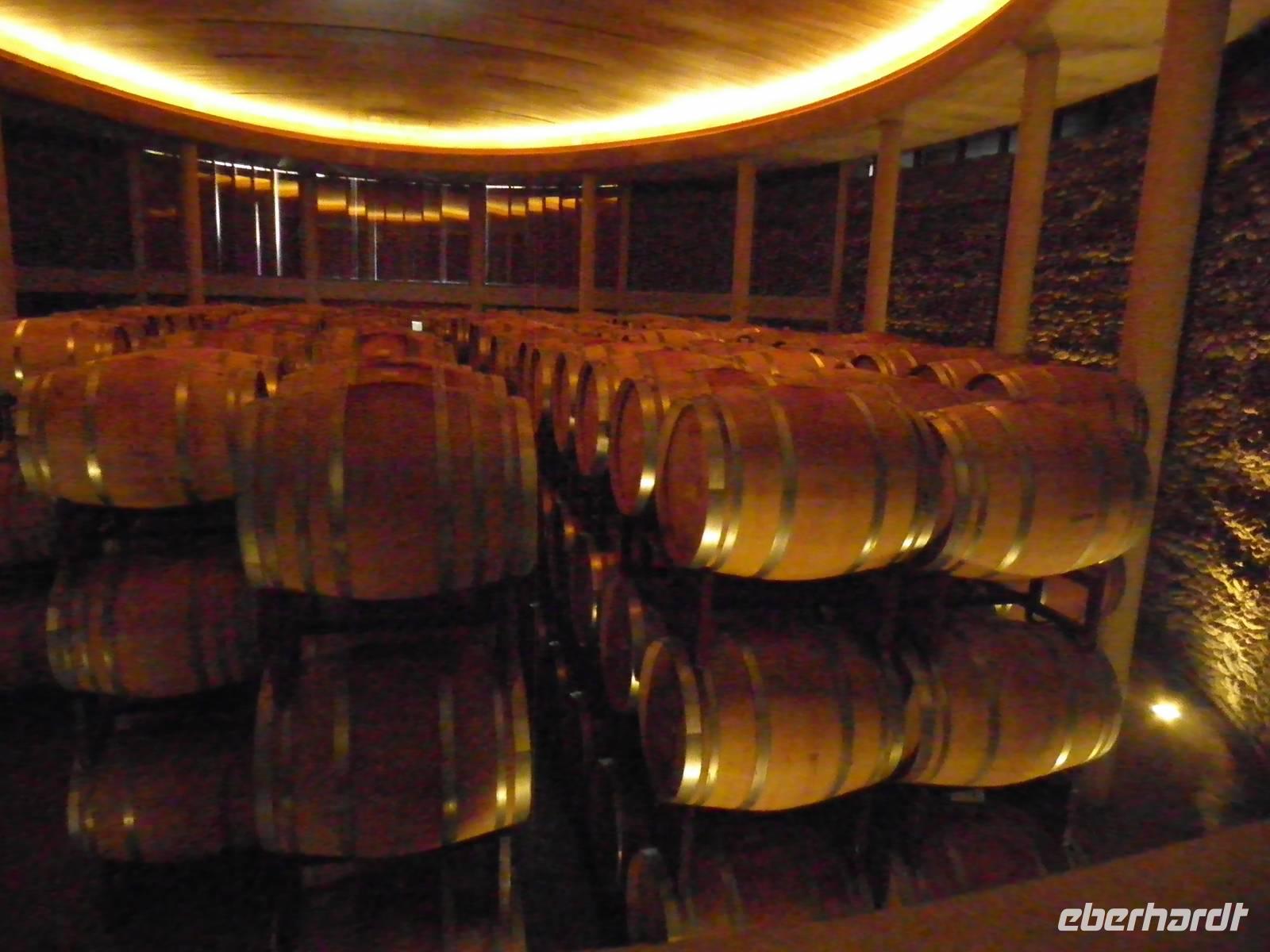 Unser Aufenthalt am Strand war nicht lang, denn wir wurden zum Mittagessen im Weingut Matetic erwartet. Als wir ankamen, war schon alles vorbereitet. Wir ließen uns ein traditionelles chilenisches Gericht schmecken: Asado. Das sind verschiedene gegrillte Fleischsorten, die uns mit leckeren Salaten und Beilagen angeboten wurden. Dazu gab es natürlich chilenischen Wein, Weißwein aus dem eigenen Weingut. Nach dem Dessert tranken einige noch einen Kaffee, um das üppige Mahl besser verdauen zu können. Dann spazierten wir durch die herrliche Anlage mit schönen Blumen, Palmen und einem Teich mit Gänsen zurück zu unserem Bus. Nach kurzer Fahrt erreichten wir ein sehr modernes Gebäude, das ebenfalls zum Weingut Matetic gehört. Dort besichtigten wir eine der Lagerhallen für die Weinfässer, sahen riesige Edelstahltanks, in denen die Trauben gären nach der Lese. Zuletzt konnten wir noch einen Weiß- und einen Rotwein probieren. Einige fanden den Wein so lecker, dass sie die ein oder andere Flasche erwarben, um sie in Ruhe später im Hotel zu trinken oder als Souvenir mit nach Hause zu nehmen.