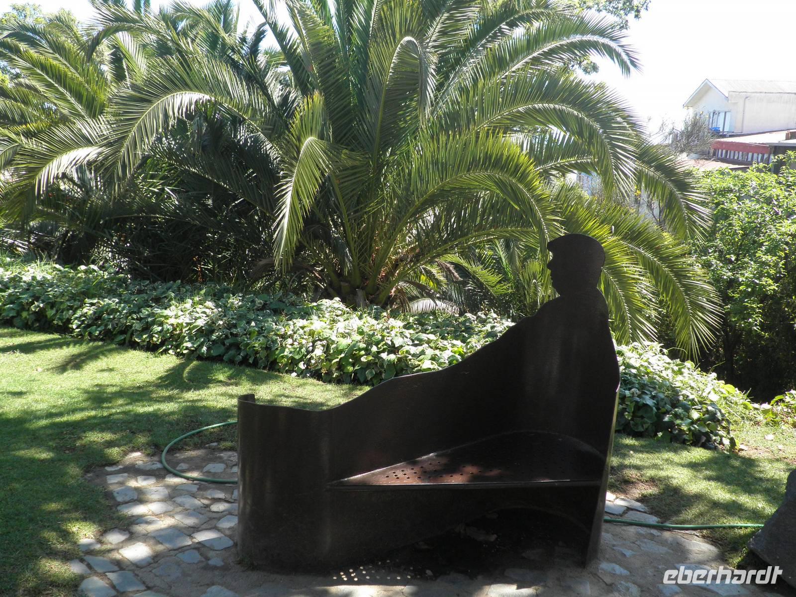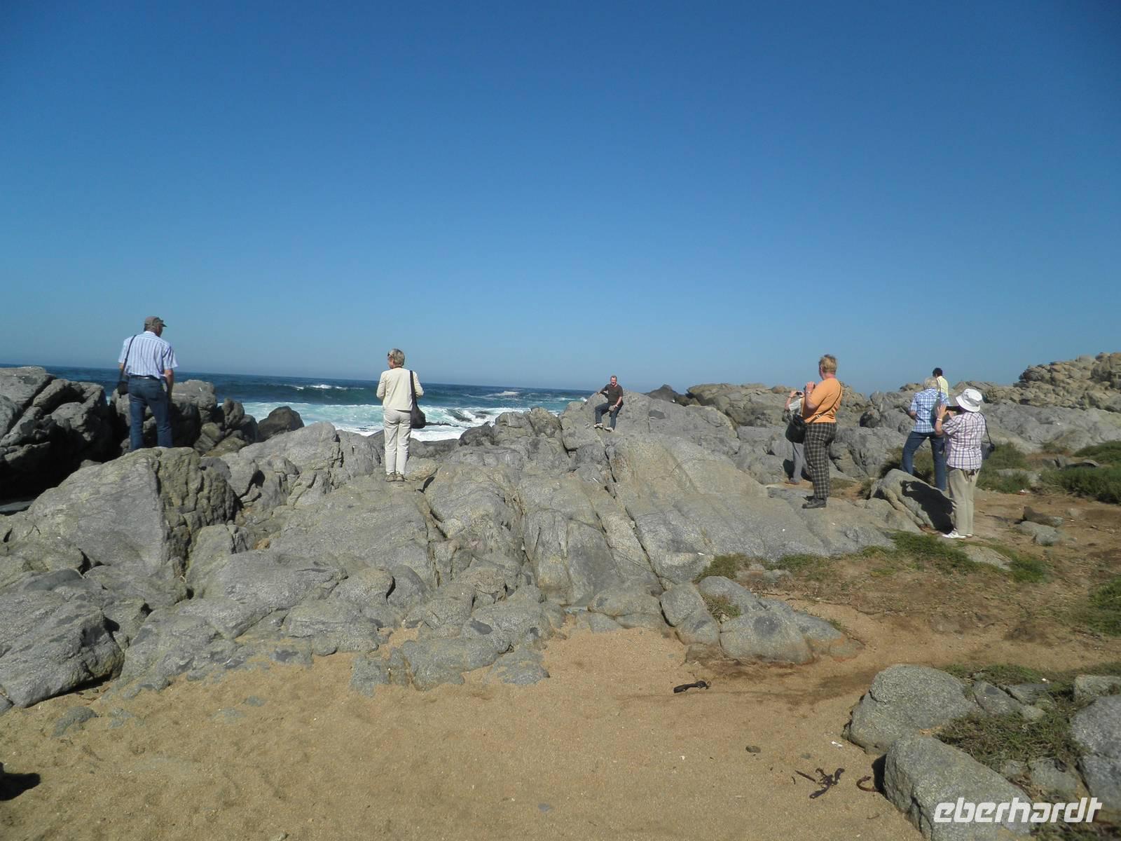 Nach dem Frühstück wartete schon unser Bus vor der Tür. Wir fuhren hinaus aus Valparaiso nach Isla Negra. Dort hatte Pablo Neruda sich ein Haus gekauft und nach seinen Vorstellungen umbauen lassen. Das Anwesen konnten wir heute besichtigen, geführt mit deutschsprachigen Audioguides. Wir bestaunten die Einrichtungen der Gebäudeteile, sahen seine Glasflaschen- und seine Schmetterlingssammlung und wandelten durch die Räume seines Hauses am Meer, das in vielen Dingen an ein Schiff oder einen Eisenbahnwagen erinnert. Wir lernten den berühmten chilenischen Dichter Neruda ein Stück näher kennen, sahen seine Lieblingsstücke, z.B. die vom Meer angespülte Ladeluke eines Schiffes, die ihm später als Schreibtischplatte gedient hatte. Vieles hat er gesammelt und scheinbar hatte jedes Einrichtungsstück eine besondere Bedeutung für ihn. Immer wieder bestaunten wir die herrlichen Ausblicke über Klippen und Sandstrand aufs Meer. Der Rundgang endete am Grab des Dichters und seiner Frau, das sich seinem Wusch gemäß im Garten des Hauses direkt über den Klippen zum Meer hin befindet. Nach der Besichtigung fuhren wir ein kleines Stück weiter in Isla Negra und kamen zum Badestrand. Dort waren einige ganz mutig und gingen ins Wasser hinein, um zu schwimmen oder zu baden. Die meisten aber unserer Gruppe begnügten sich mit einem Spaziergang am Strand oder zogen es vor, nur die Füße im Pazifik zu baden.