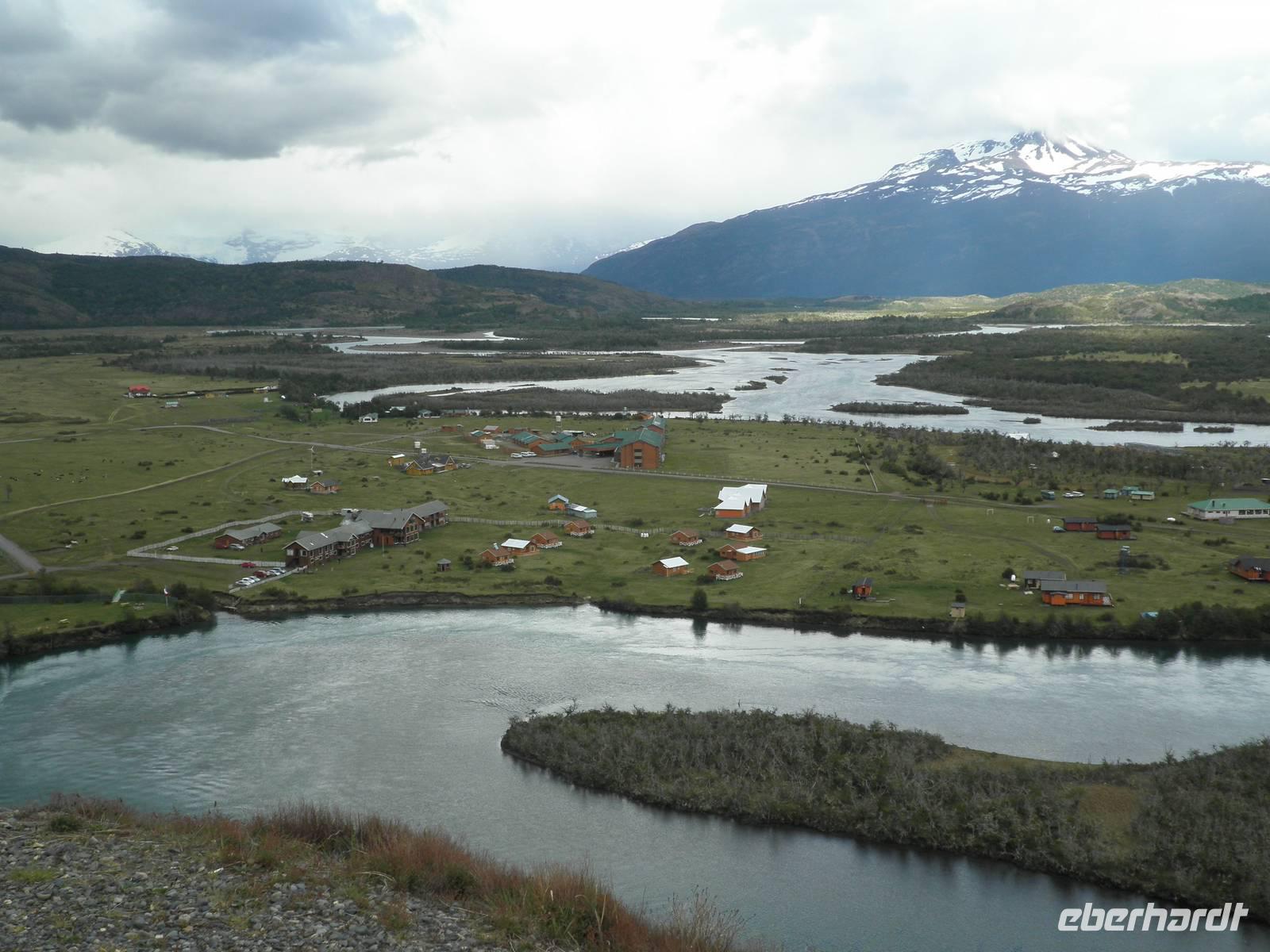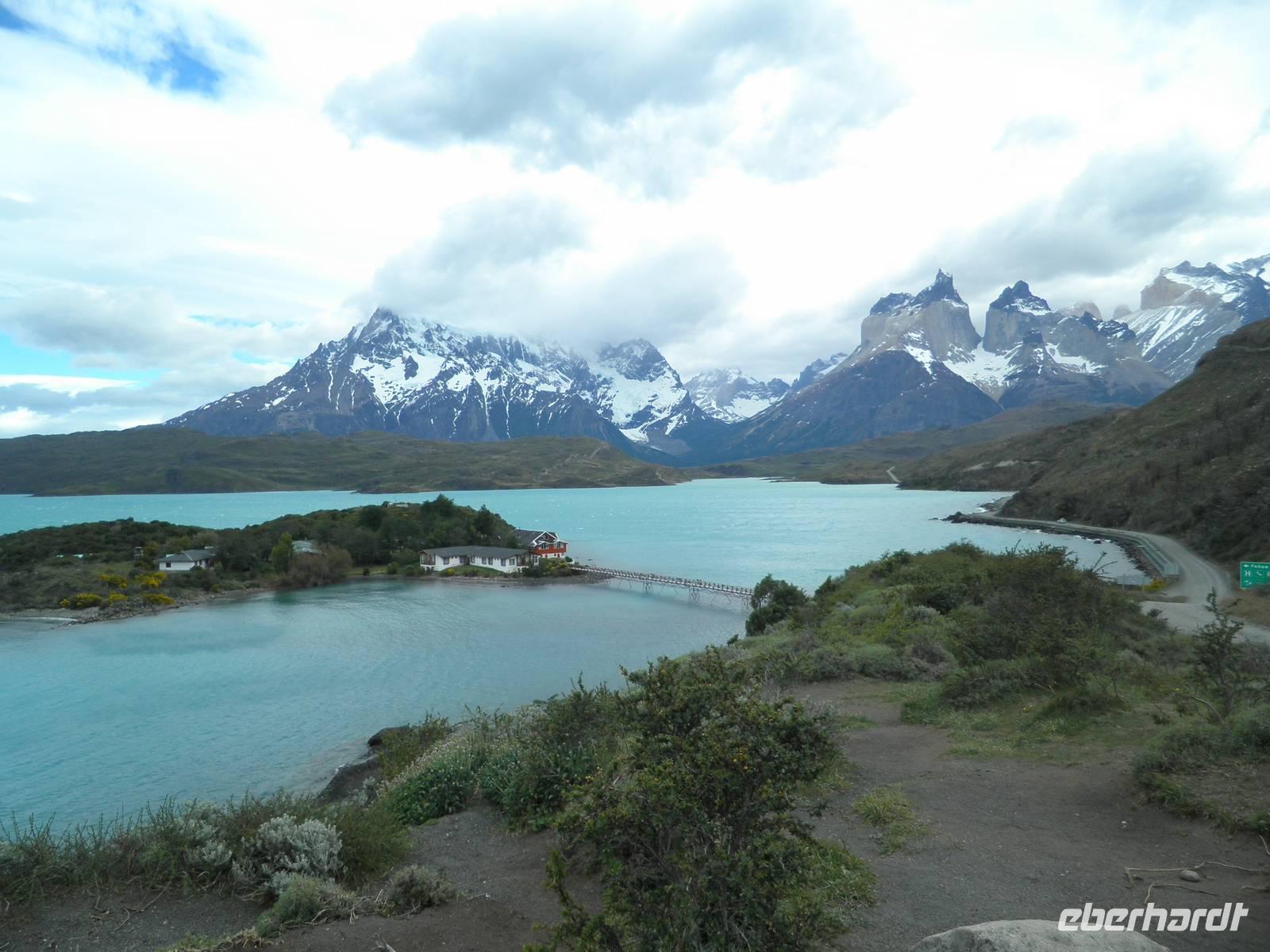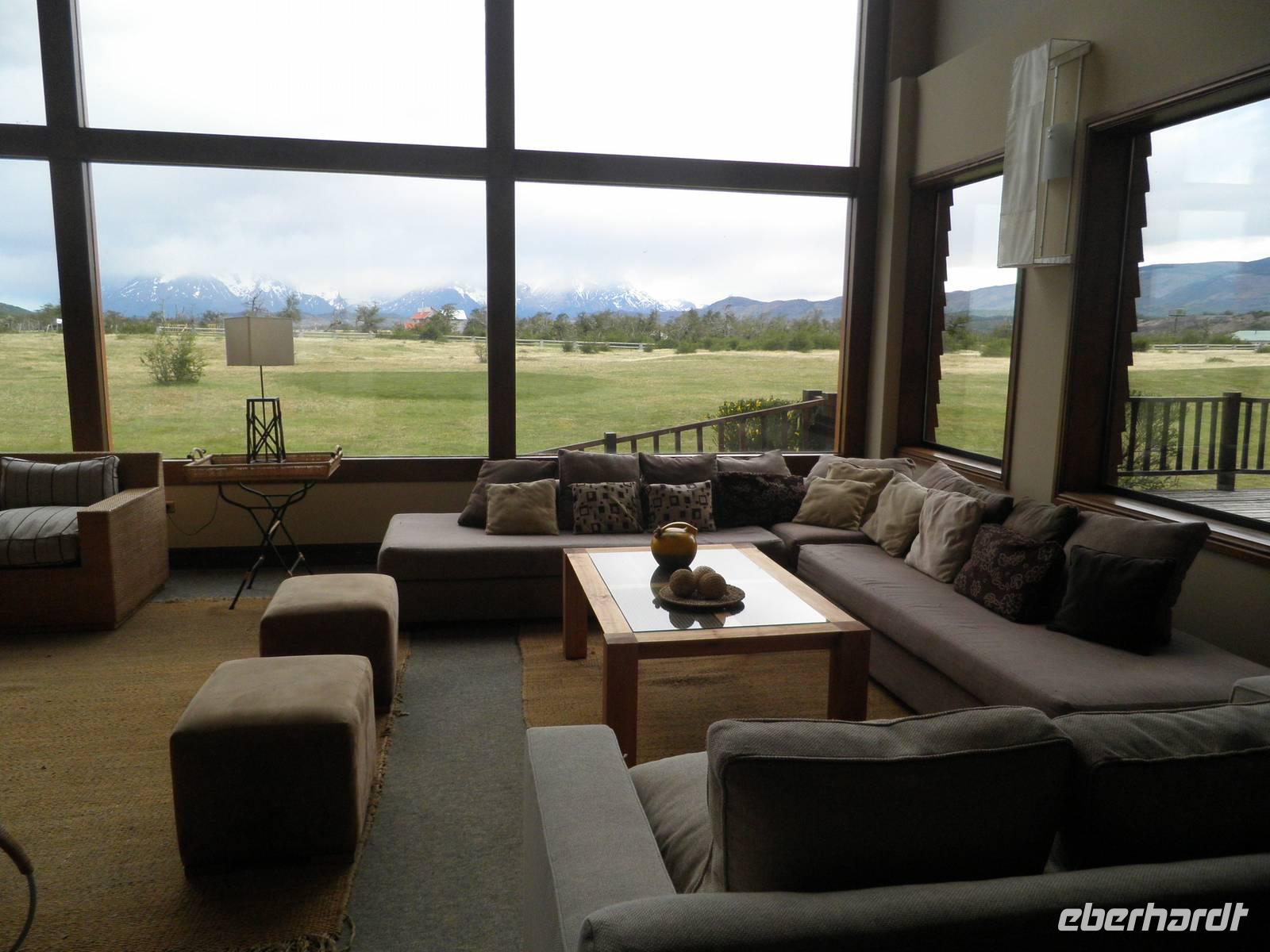 Das Ziel am heutigen Tage war der Nationalpark Torres del Paine. Dort sollten wir in einem wunderschönen Hotel mitten im Park mit Blick auf die Hörner del Paine übernachten. Also erreichten wir nach einiger Zeit den Nationalpark, fuhren an herrlichen Seen vorbei und waren beeindruckt von den Felsformationen, die vom Bus aus schon zu bestaunen waren. Auch die ersten Guanakos des Nationalparks konnten wir entdecken.