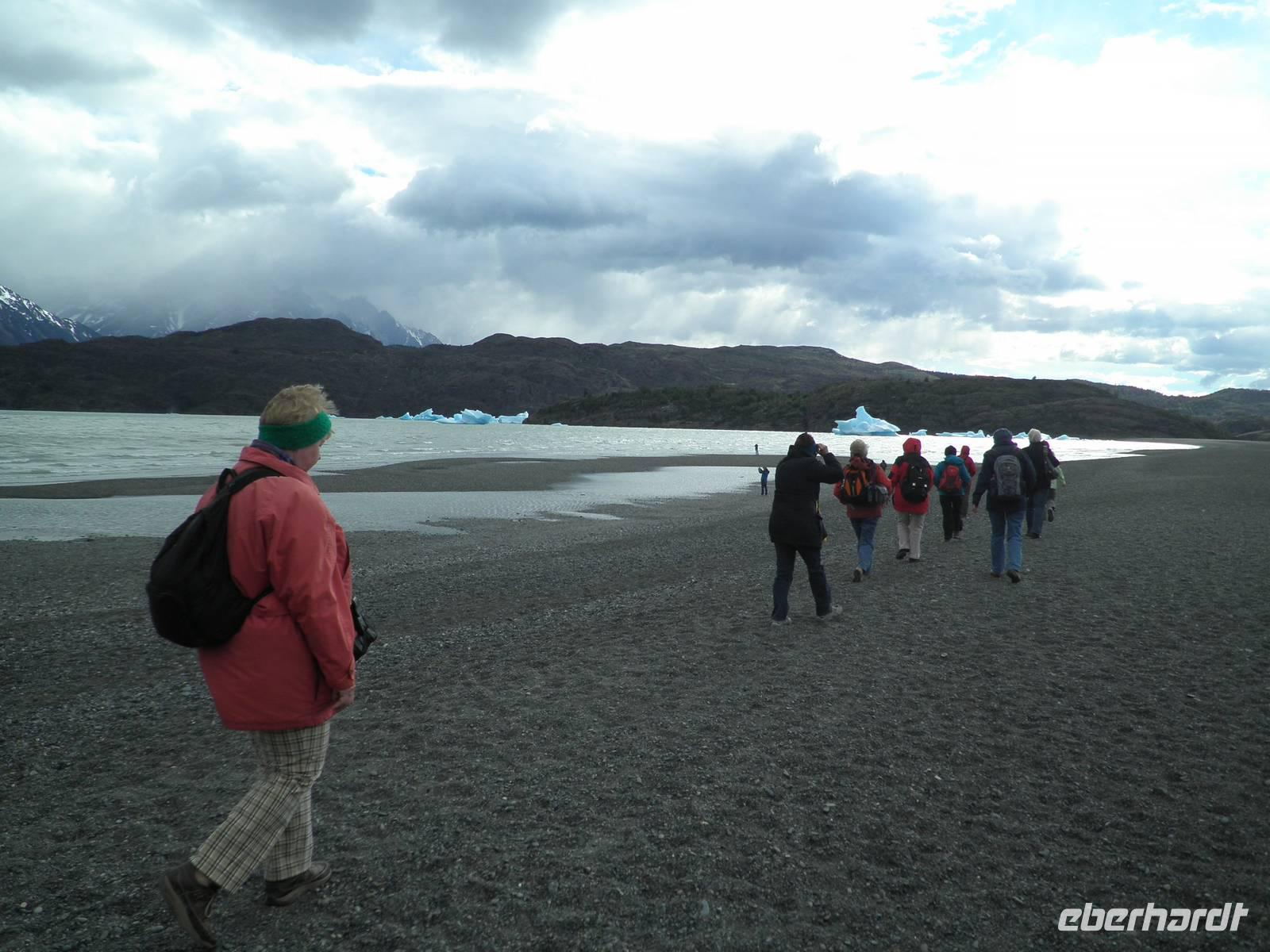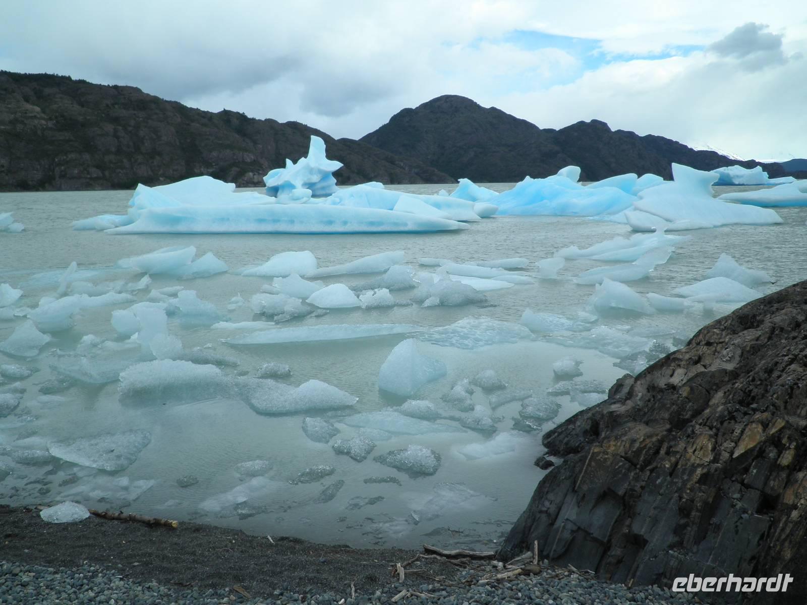 10. Tag Mittwoch 6.11.2013 Nationalpark Torres del Paine, Lago Grey mit Eisbergen, Cascades del Paine