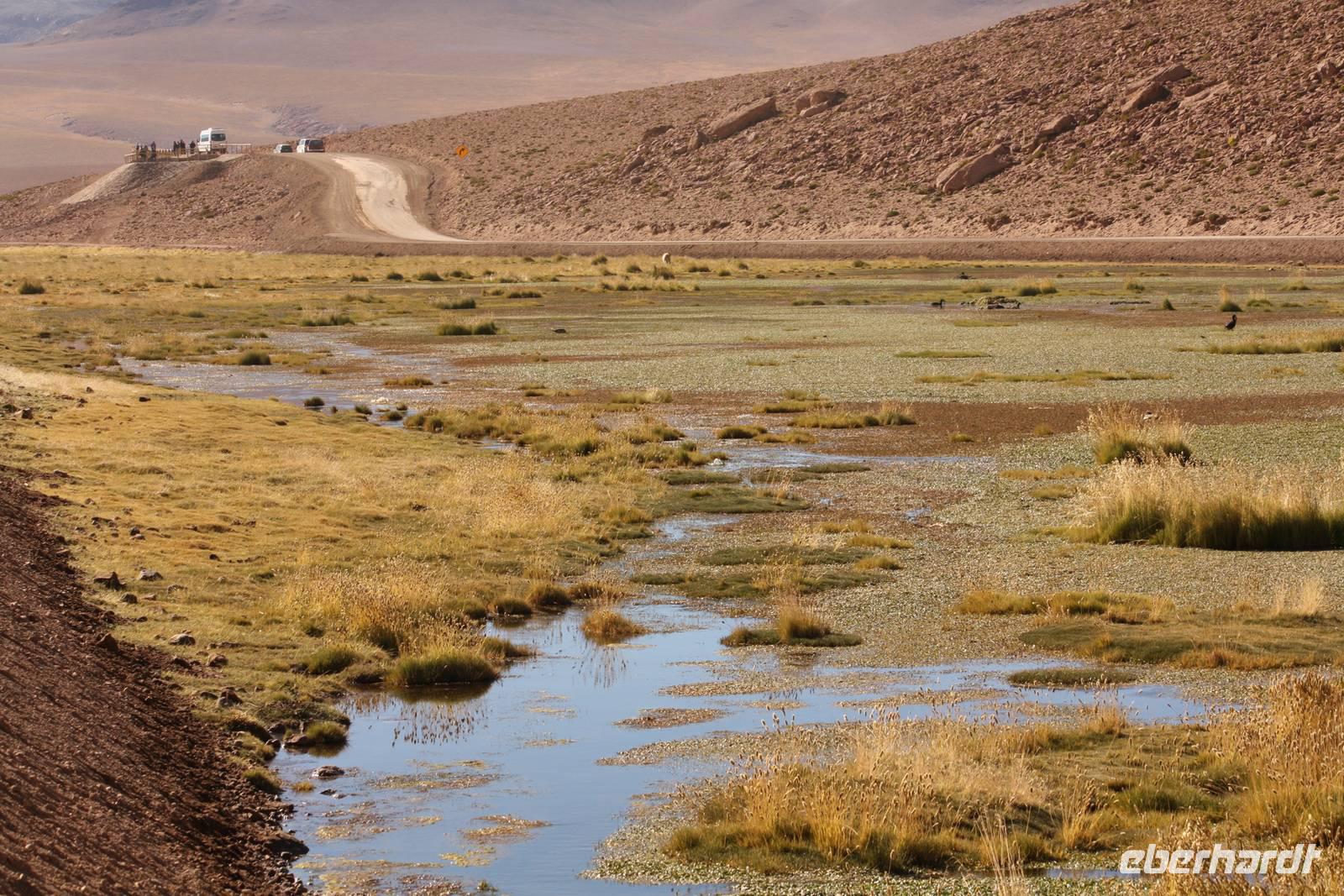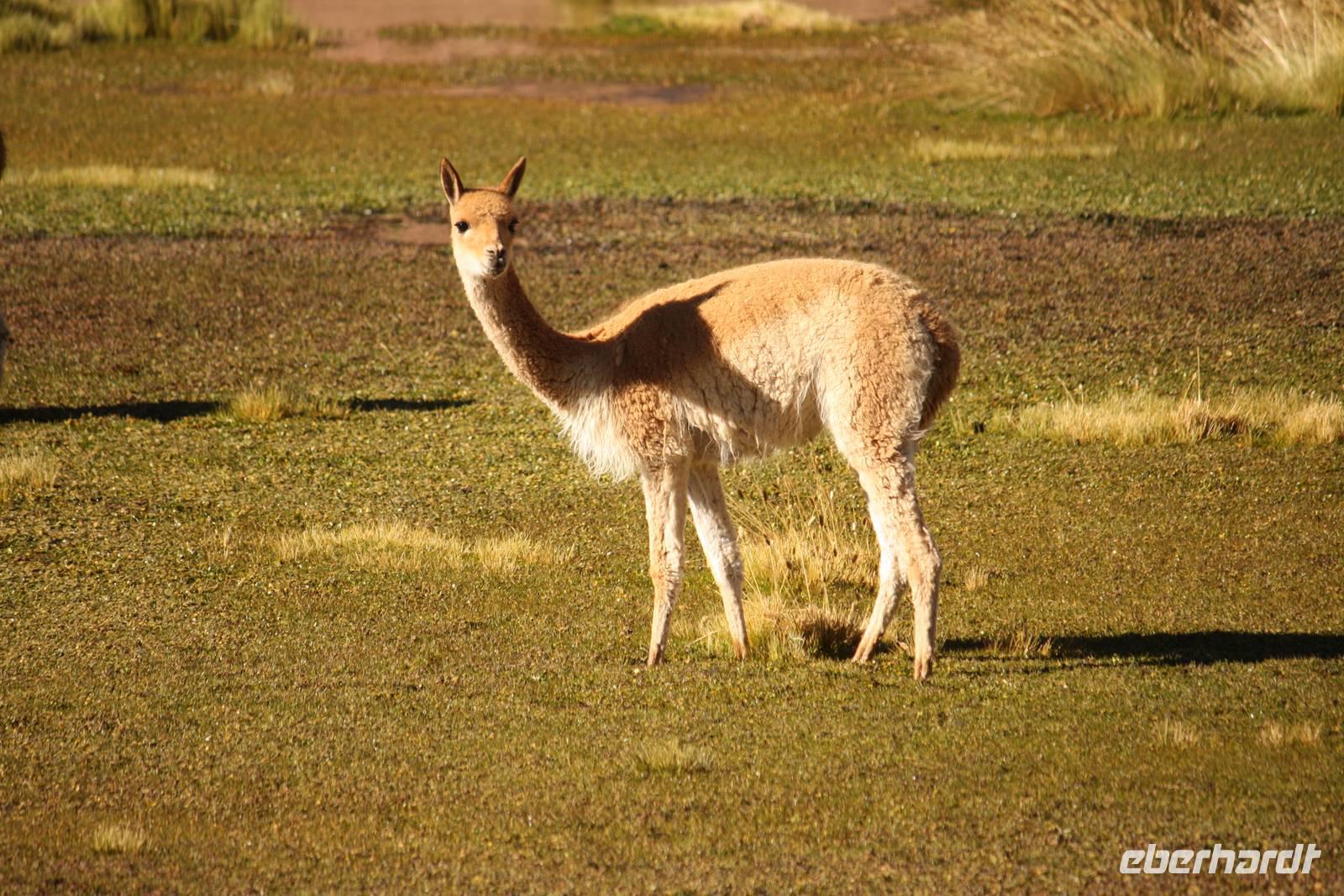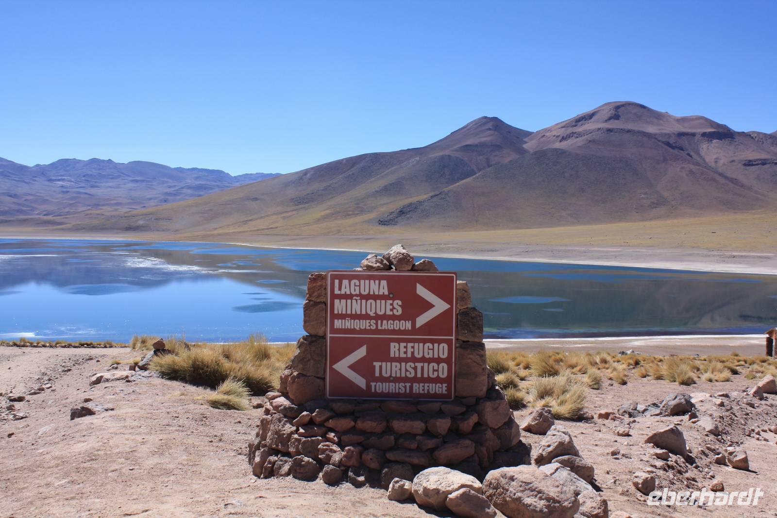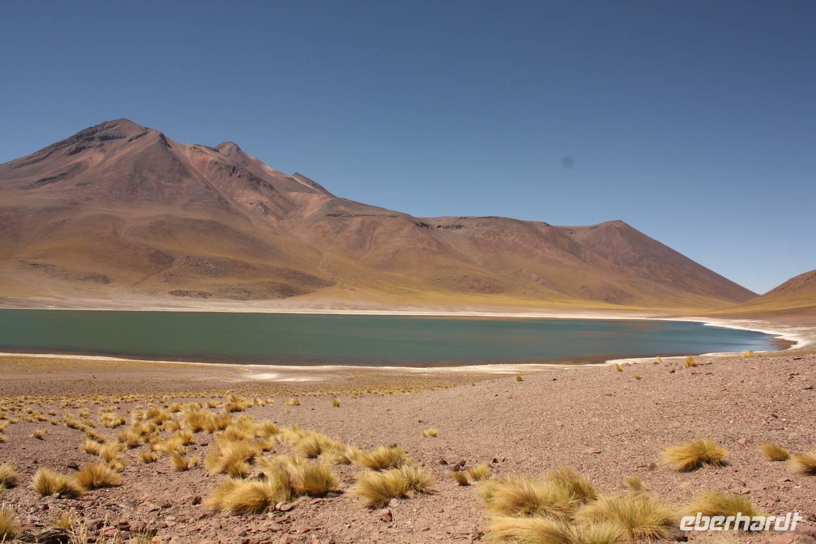 Nach einem stärkendem Frühstück machten wir uns auf den Weg ins chilenische Hochland und erreichten noch am Vormittag die Lagunenseen Meniques und Miscanti auf über 4.000 Höhenmeter. Wir spazierten gemütlich entlang der beiden Seen und zu den Aussichtsterrassen und machten wunderschöne Bilder mit tollen Farben. Zum Mittagessen kehrten wir in einem Dorf auf der Strecke ein, wo uns eine bolivianische Familie beköstigte. Es gab lokale Gemüsesuppe und Lamafleisch mit Bohnen.