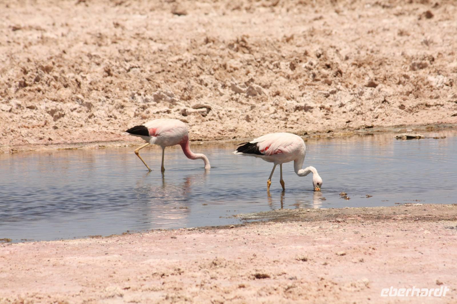 Nachmittags brachte uns der Bus zum Salar de Atacama auf 2.405 Höhenmetern. Der Bus stoppte am Parkplatz und wir gingen entlang des Weges und bestaunten die üppige Flora hier. Es gab rosafarbene Flamingos, Andenschnäbler, Echsen, Libellen und zahlreiche andere Vogelarten. Am späten Nachmittag kehrten wir nach San Pedro zurück und gingen abends noch in gemütlicher Runde zu Abend essen.