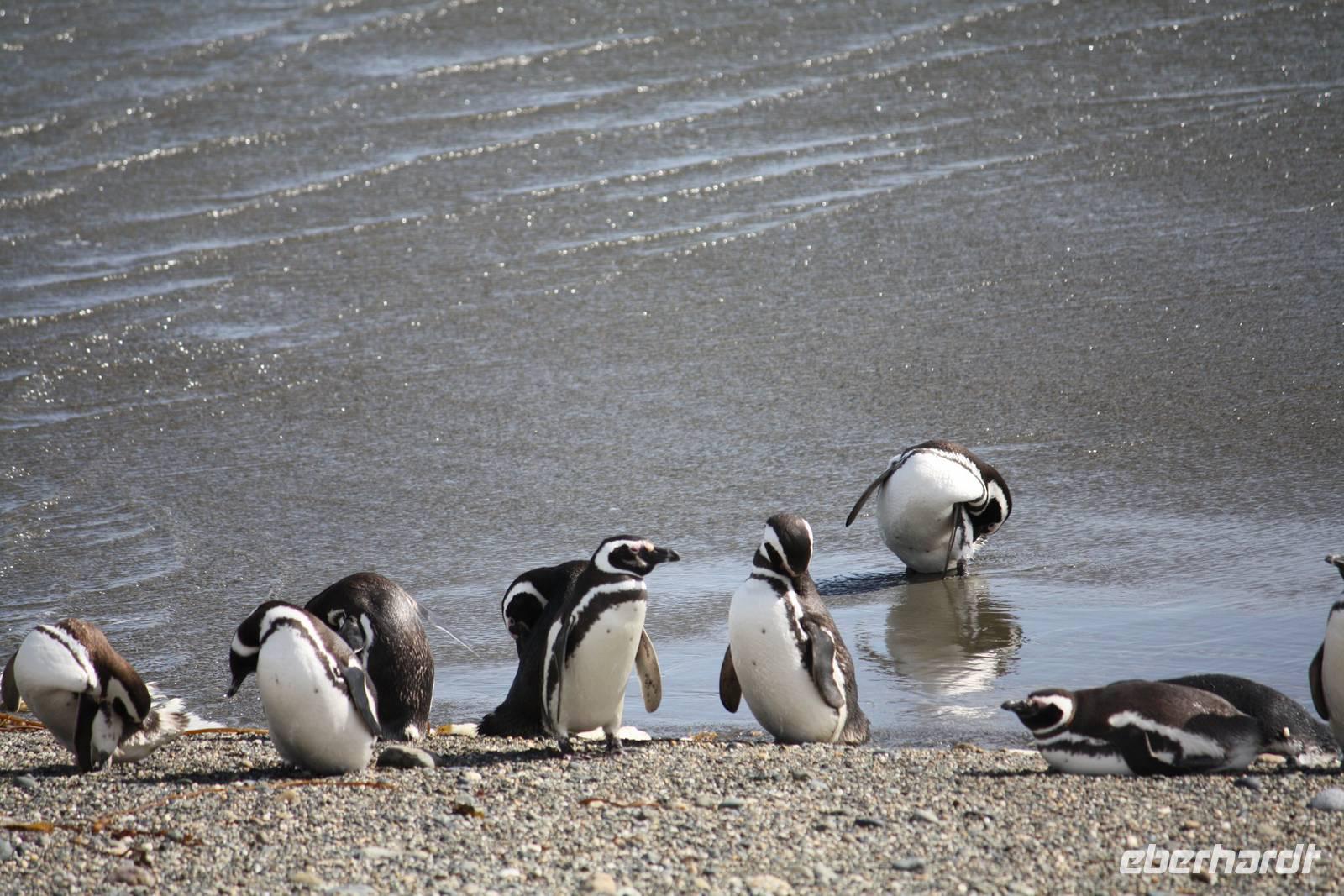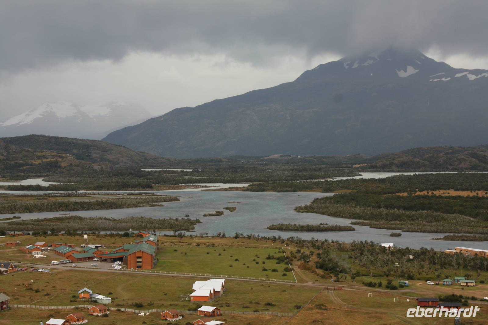 Dann verließen wir die Stadt auch schon und fuhren in Richtung Norden bis zum Seno Otway. Normalerweise tummeln sich hier Dutzende von Pinguinen, aber wir hatten soviel Wind, dass kaum Pinguine zu sehen waren. Wir fuhren also weiter über Puerto Natales zum Torres del Paine Nationalpark. Hier kamen wir abends kurz nach 21 Uhr an und bezogen schnell unsere Zimmer und trafen uns im Hotelrestaurant zum Abendessen. Was für ein schönes Hotel. Alle waren glücklich und zufrieden und später auch noch satt J