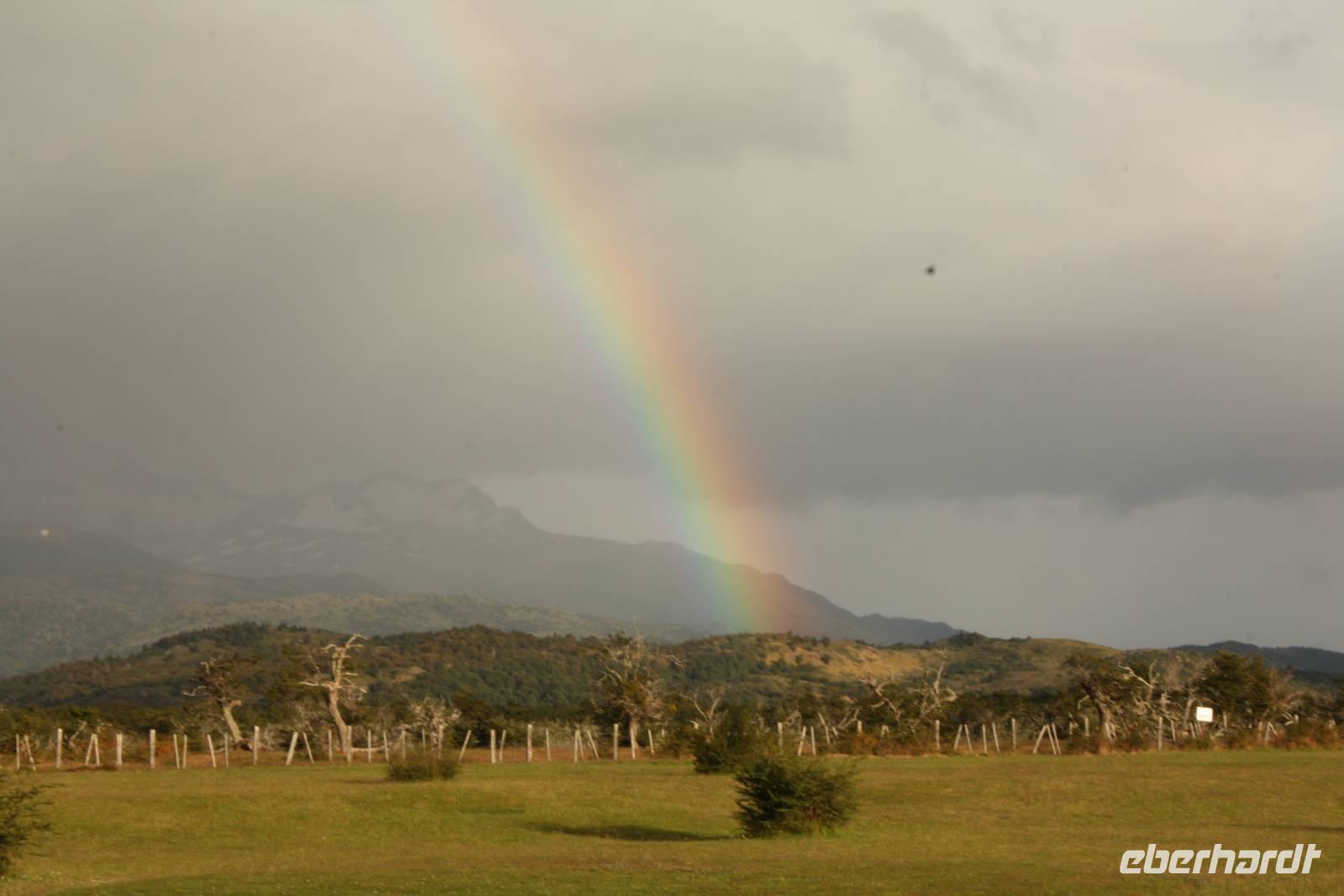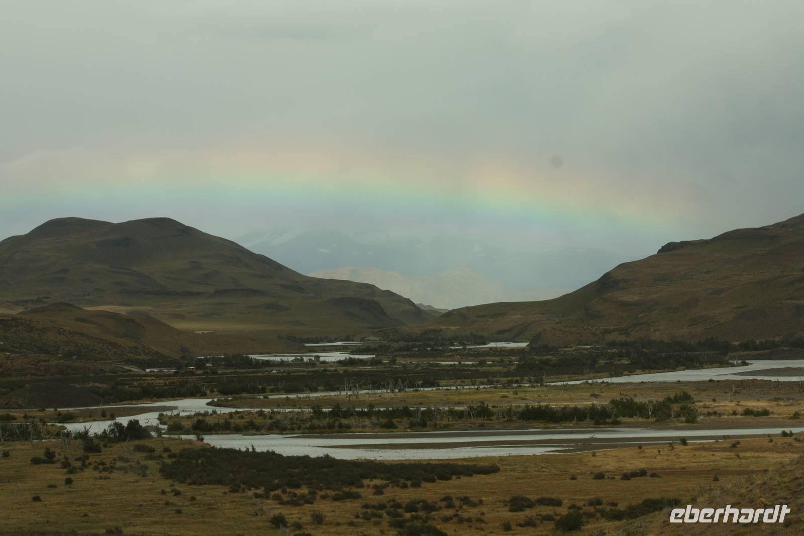 Wir verabschiedeten uns heute Morgen vom Nationalpark, der uns mit einem wunderschönen Regenbogen Lebewohl sagte. Und so fuhren wir weiter in Richtung Grenze zu Argentinien, wo wir am Mittag ankamen. Wir passierten problemlos und schnell die Grenzkontrollen und bekamen einen schönen Stempel in unsere Pässe. Ein paar Stunden später erreichten wir unser Hotel „Patagonia Queen" in El Calafate. Wir checkten gegen 16 Uhr im Hotel ein und vertraten uns bis zum Abendessen ein wenig die Beine. Das Hotel lag einwandfrei zentral und in der Nähe der Einkaufs- und Hauptstraße des Ortes, so dass wir bequem und schnell unsere Ziele erreichten. Am Abend trafen wir uns alle wieder und kehrten in einem sehr guten Restaurant am Ende des Ortes ein, wo wir uns Argentinisches Rindersteak schmecken ließen.