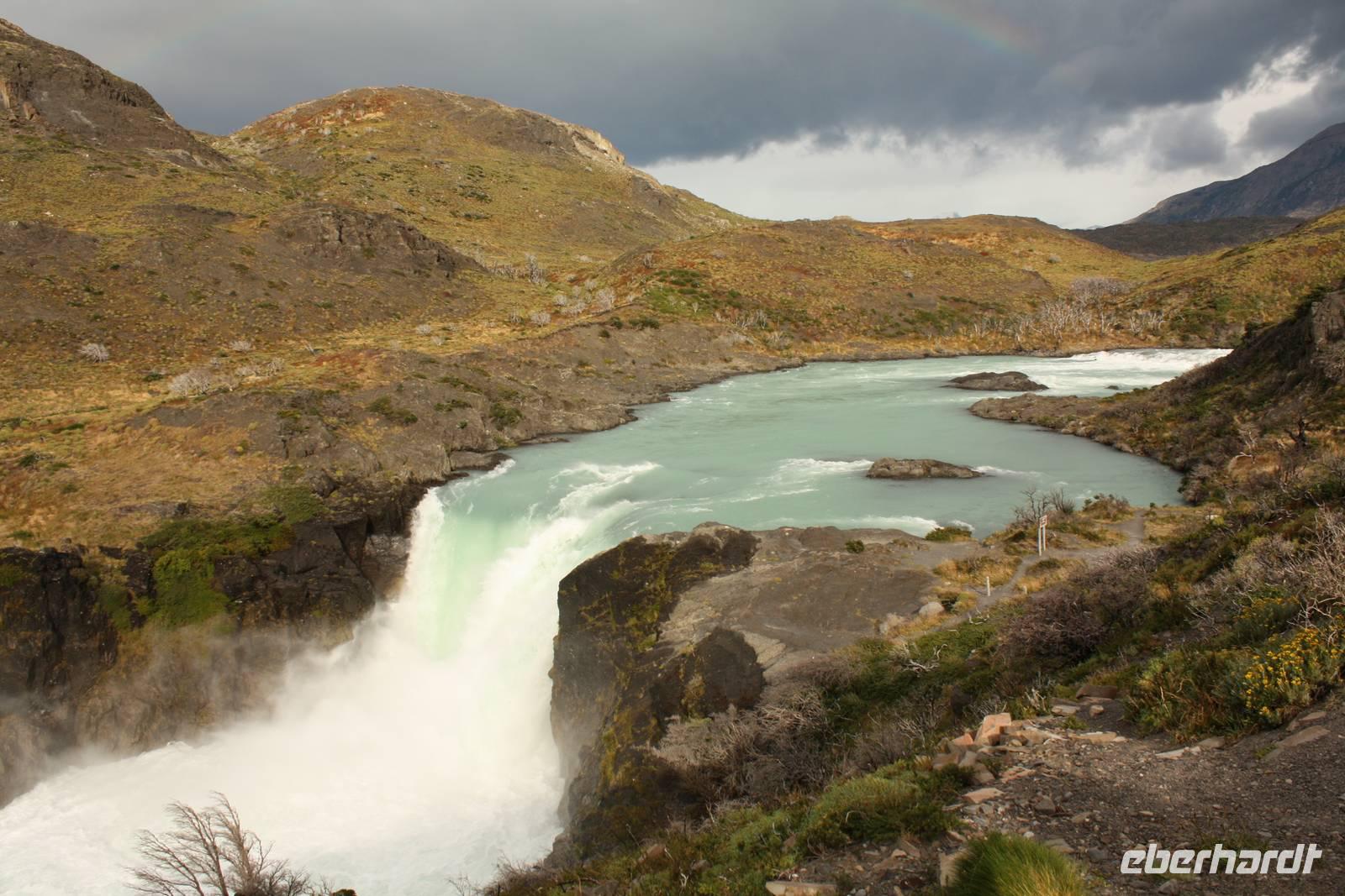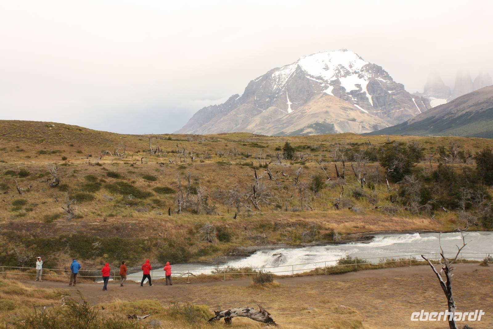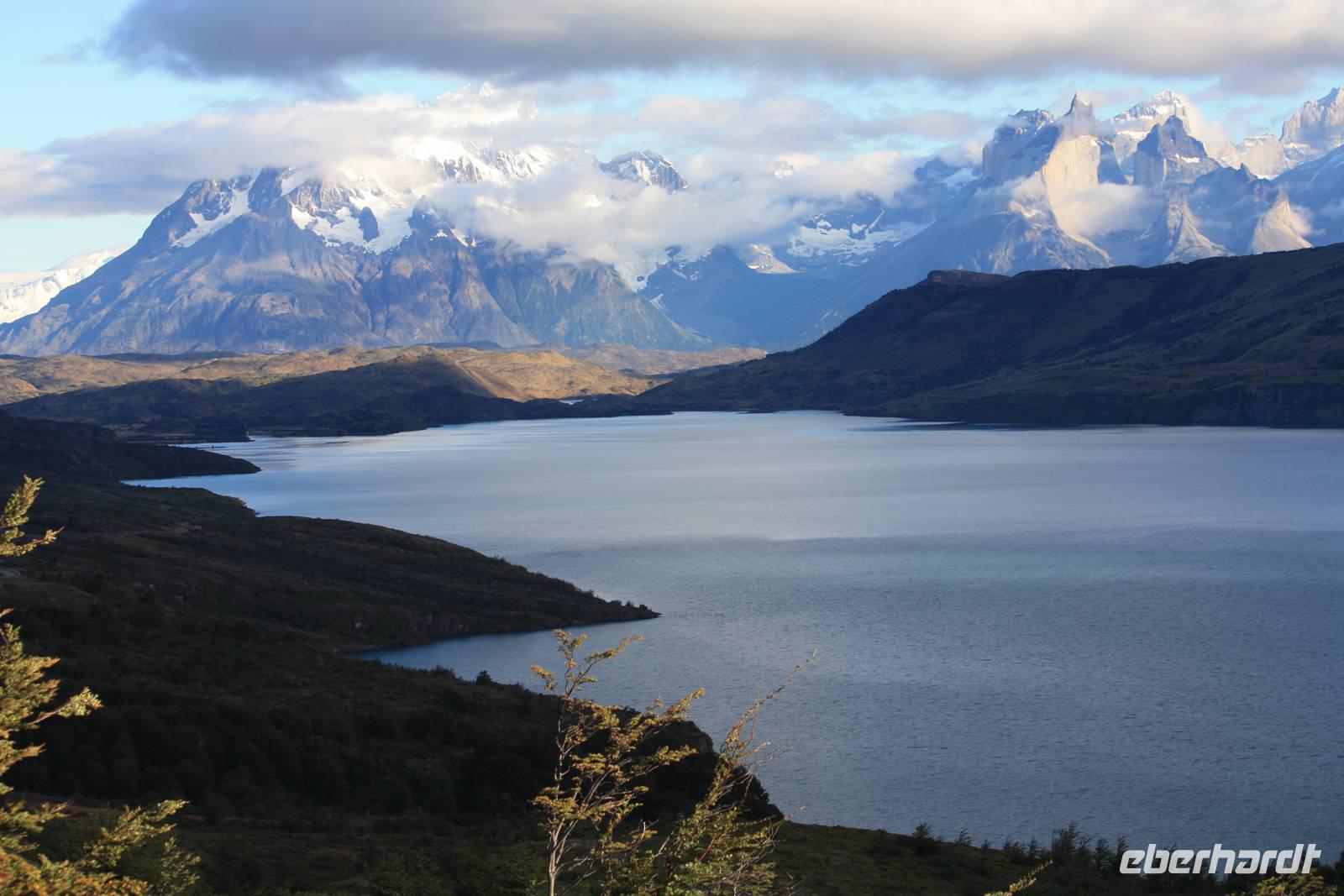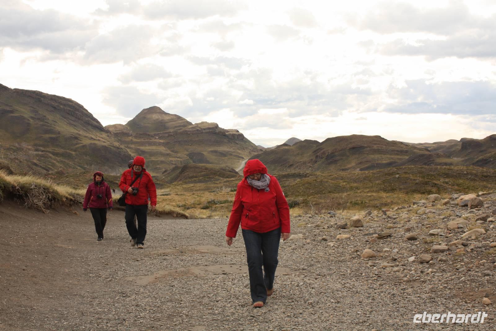 Endlich konnten wir eine Nacht ein wenig länger schlafen. Wir machten uns 8:30 Uhr auf den Weg auf einen wunderschönen Naturausflug durch den Nationalpark Torres del Paine. Hinter jeder Kurve, die wir fuhren, eröffneten sich neue Ausblicke für uns und unsere Kameras knipsten den Tag unzählige Bilder. Jede befahrbare Straße im Nationalpark wurde von uns abgegrast und so besichtigten wir am Vormittag den Lago Pehoe, wo wir den Spazierweg mit stürmendem Wind bis zum Wasserfall Saltos de Pehoe wagten. An einem See im östlichen Nationalpark kehrten wir am Mittag an einer windstillen Stelle ein und verzehrten unser Mittagspicknick. Anschließend fuhren wie von der Ostseite des Nationalparks in den Westen und erreichten den Grey Gletscher. Hier machten wir uns ein Stück zu Fuß auf: erst ein Stückchen durch den Wald und dann am Strand entlang. Auch hier war es windig und wir bestaunten die angespülten Eisblöcke am Ufer des Sees. In der Ferne, einmal über den See hinüber, erspähten wir das Ende des Gletschers. Zum Abendessen waren wir zurück im Hotel und man bereitete uns heute ein leckeres Asado zu. Dieses verspeisten wir anschließend im Restaurant mit köstlichen Beilagen, Wein und Obst. Ein wunderschöner weitere Tag ging zu Ende.