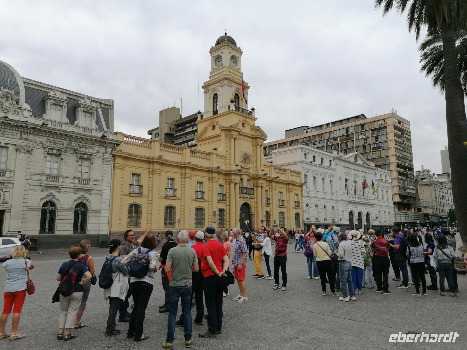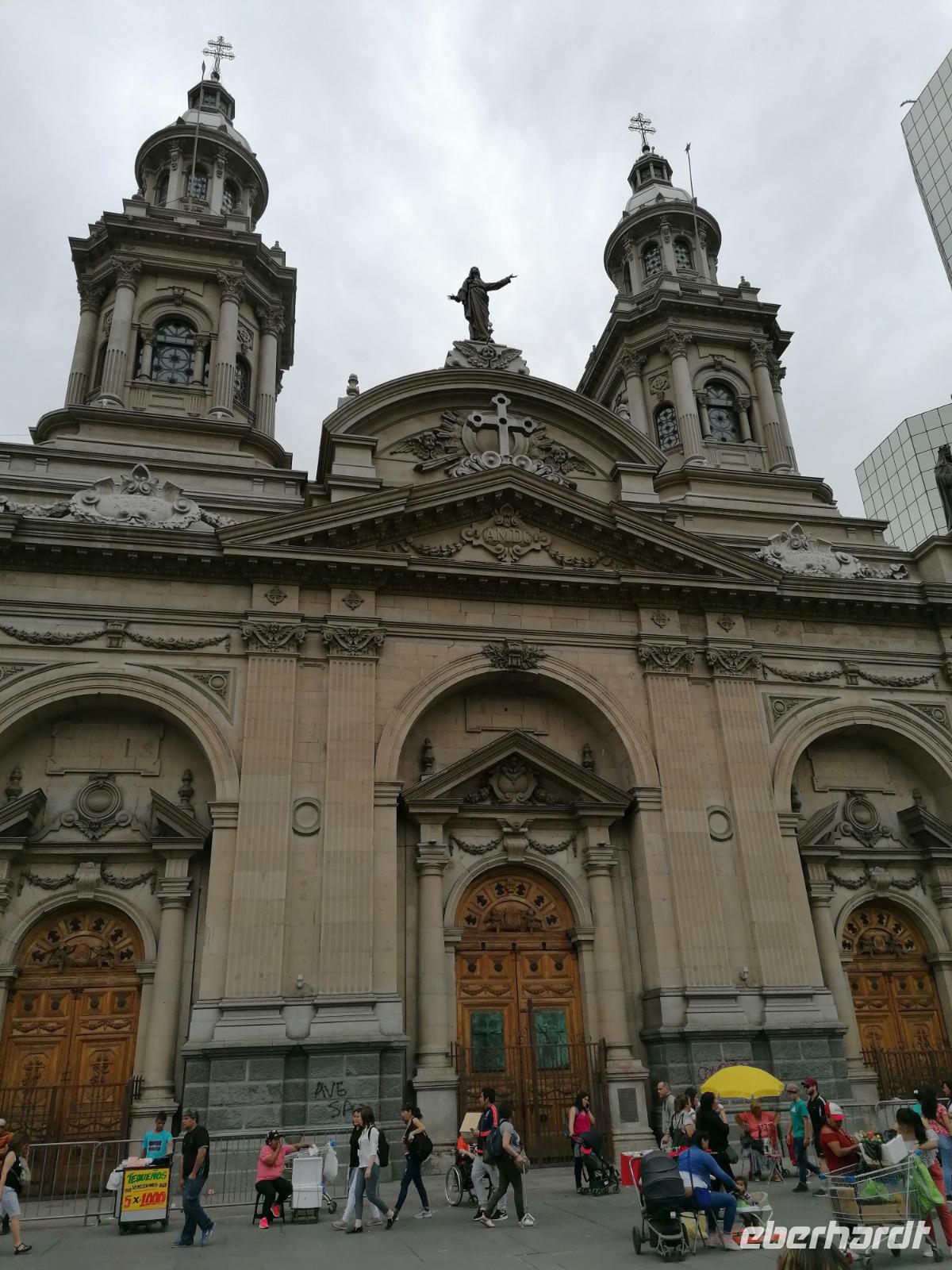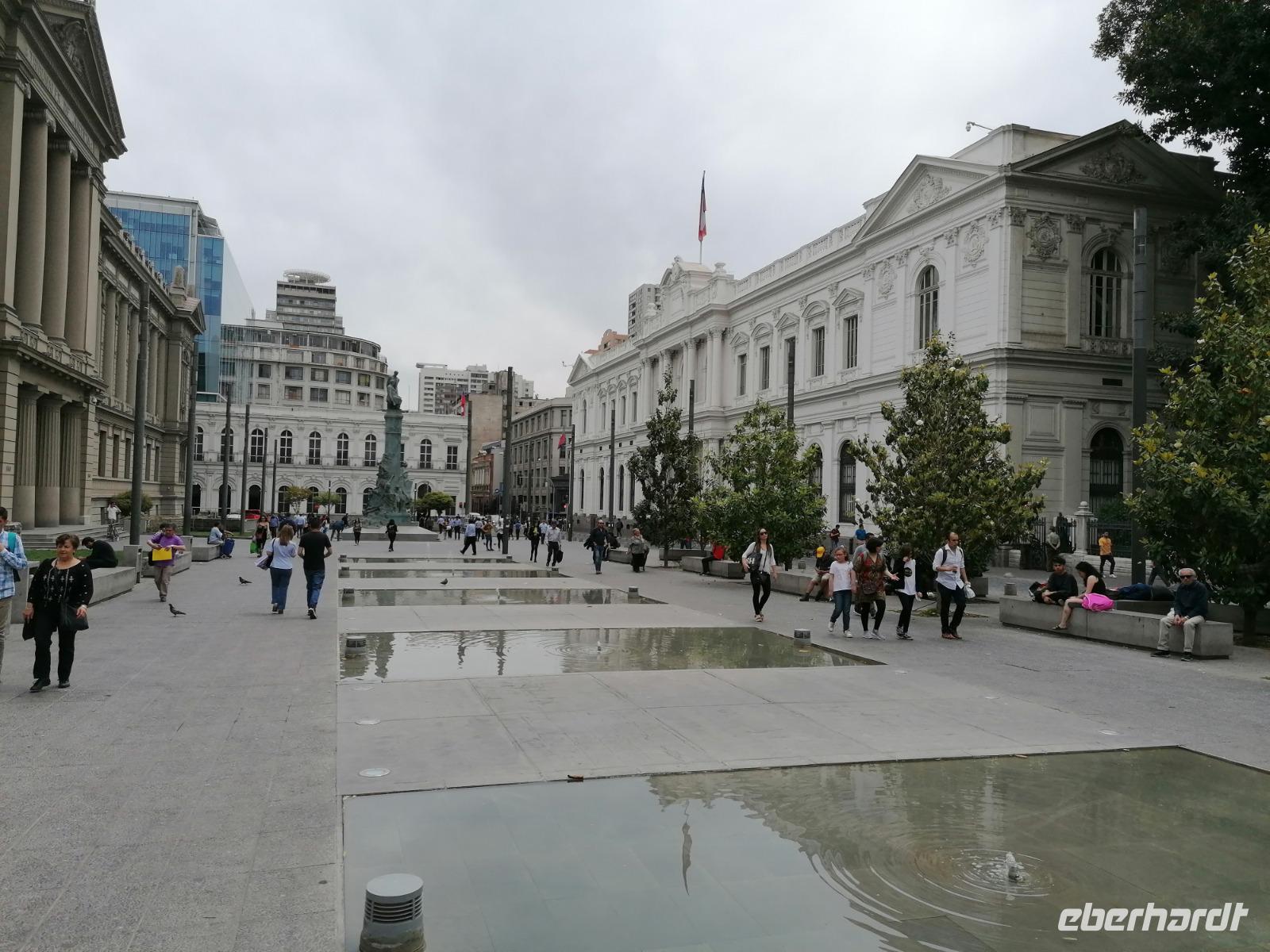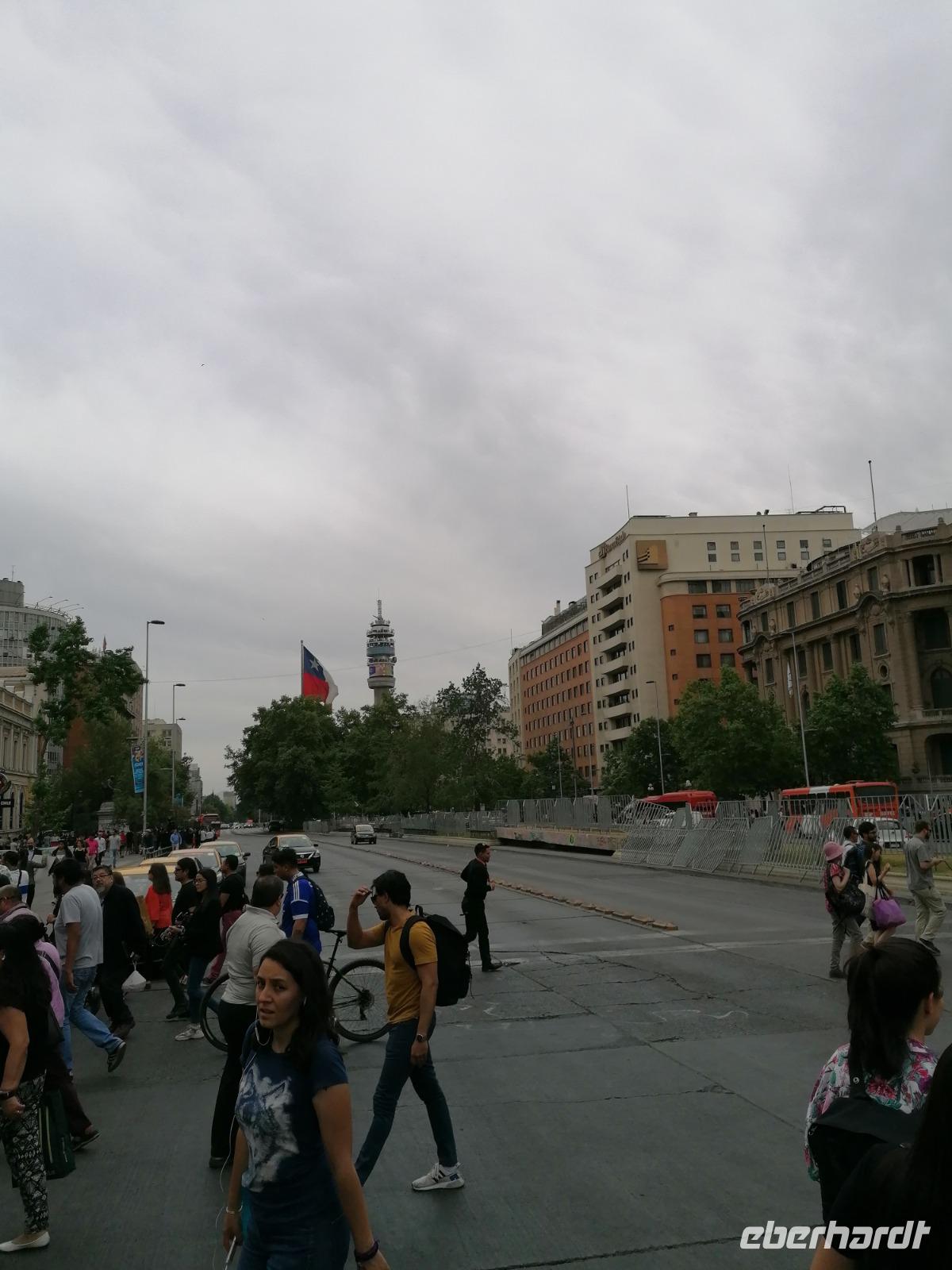 Am Morgen erreichten wir unser Ziel - Santiago de Chile. Müde aber voller Tatendrang durchliefen die Einreisekontrollen und trafen in der Ankunftshalle auf unseren örtlichen Reiseleiter Eric. Wir erhielten erstmal Zeit, um uns frisch zu machen und unsere Euros in Chilenische Pesos umzutauschen. Im Anschluss machten wir uns auf den Weg in Richtung Innenstadt. Da heute gestreikt wurde, fuhren wir direkt in die Innenstadt. Unterwegs klärte uns Eric über die aktuelle Situtation im Land auf und erläutete uns bestimmte Verhaltensweisen und Hinweise auf die nächsten Tage. Im Stadtzentrum begann uns Spaziergang. Nach einer Besichtigung der San Franziscus Kirche führte uns Eric auf die Calle Londres. Hier befindet sich das Museum Londres 38, dass auf die schlimme Vergangenheit, Verfolgerungen und Foltern während des Staatsstreiches verweist. Durch das Viertel Barrio Londres spazierten wir in Richtung Präsidentenpalast. Der Palast La Moneda war früher eine Münzprägeanstalt und auch Schauplatz beim Militärputsch im Jahr 1973. Heute prägt er frisch renoviert das Stadtbild. Weiter spazierten wir zum Hauptplatz Plaza de Amas. Hier befindet sich die Alte Post, das Nationalmuseum, Ämter und auch die Kathedrale der Hauptstadt. NIcht weit vom Plaza de Armas entfernt, befindet sich der Mercado Central und La Vega. Hier kann man frisches Obst und Gemüse sowie Fleisch und Fisch kaufen. In der Markthalle selbst gibt es auch eine Vielzahl an Restaurants. Eines davon steuerten wir auch an. Im Restaurant El Galeon speisten wir zu Mittag und probierten den köstlichen frischen Fisch. Bei einem Pisco Sour stießen wir auch auf die weitere Reise und weitere schöne Tage an. Nach dem späten Mittagessen fuhren wir in Richtung Hotel und in Richtung des Towers Sky Costanera. Leider wurde dieser, kurz bevor wir antrafen geschlossen, da die Demonstrationen in Richtung Tower unterwegs waren. Dies war aber kein Problem und wir beschlossen den Sky Costanera an einen anderen Tag zu besuchen. Erschöpft und müde erreichten wir unser Hotel und fielen nach einen schnellen Check-In ins Bett.