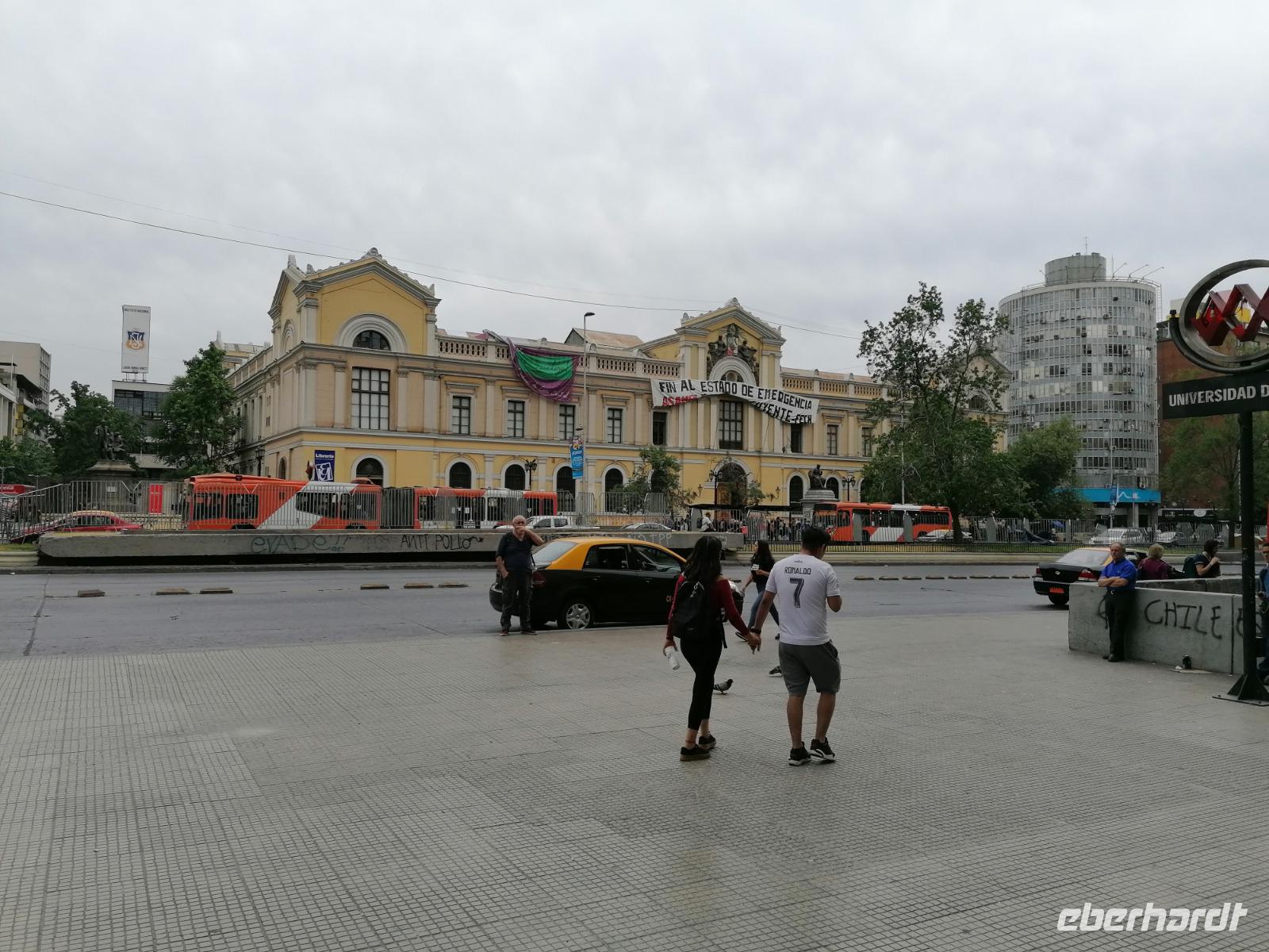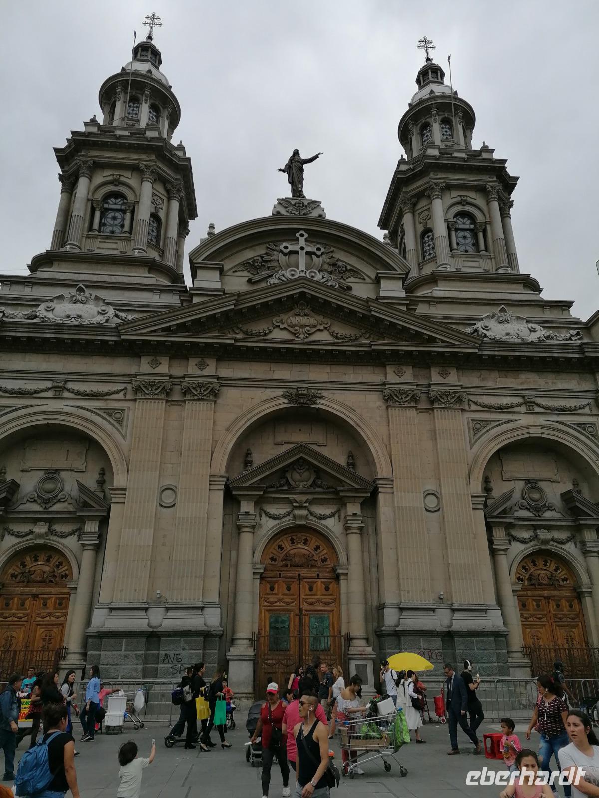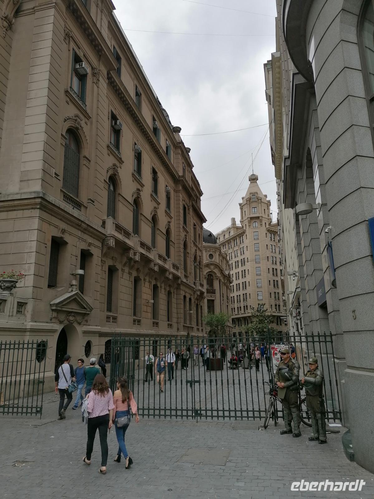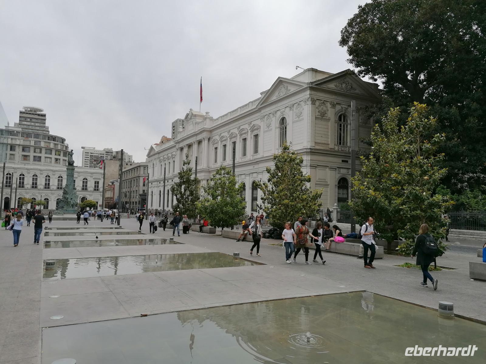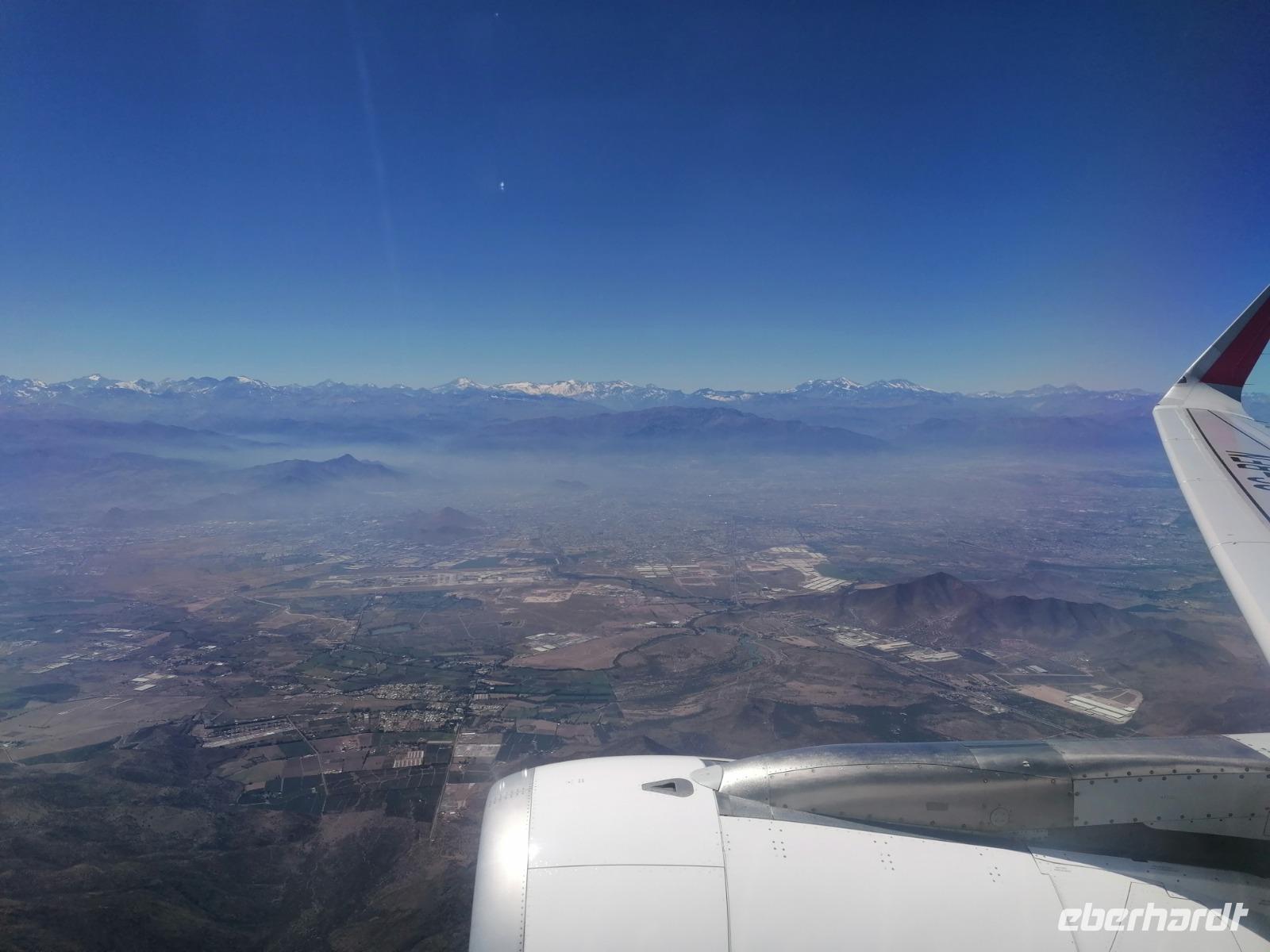 Am Morgen erreichten wir unser Ziel - Santiago de Chile. Müde aber voller Tatendrang durchliefen die Einreisekontrollen und trafen in der Ankunftshalle auf unseren örtlichen Reiseleiter Eric. Wir erhielten erstmal Zeit, um uns frisch zu machen und unsere Euros in Chilenische Pesos umzutauschen. Im Anschluss machten wir uns auf den Weg in Richtung Innenstadt. Da heute gestreikt wurde, fuhren wir direkt in die Innenstadt. Unterwegs klärte uns Eric über die aktuelle Situtation im Land auf und erläutete uns bestimmte Verhaltensweisen und Hinweise auf die nächsten Tage. Im Stadtzentrum begann uns Spaziergang. Nach einer Besichtigung der San Franziscus Kirche führte uns Eric auf die Calle Londres. Hier befindet sich das Museum Londres 38, dass auf die schlimme Vergangenheit, Verfolgerungen und Foltern während des Staatsstreiches verweist. Durch das Viertel Barrio Londres spazierten wir in Richtung Präsidentenpalast. Der Palast La Moneda war früher eine Münzprägeanstalt und auch Schauplatz beim Militärputsch im Jahr 1973. Heute prägt er frisch renoviert das Stadtbild. Weiter spazierten wir zum Hauptplatz Plaza de Amas. Hier befindet sich die Alte Post, das Nationalmuseum, Ämter und auch die Kathedrale der Hauptstadt. NIcht weit vom Plaza de Armas entfernt, befindet sich der Mercado Central und La Vega. Hier kann man frisches Obst und Gemüse sowie Fleisch und Fisch kaufen. In der Markthalle selbst gibt es auch eine Vielzahl an Restaurants. Eines davon steuerten wir auch an. Im Restaurant El Galeon speisten wir zu Mittag und probierten den köstlichen frischen Fisch. Bei einem Pisco Sour stießen wir auch auf die weitere Reise und weitere schöne Tage an. Nach dem späten Mittagessen fuhren wir in Richtung Hotel und in Richtung des Towers Sky Costanera. Leider wurde dieser, kurz bevor wir antrafen geschlossen, da die Demonstrationen in Richtung Tower unterwegs waren. Dies war aber kein Problem und wir beschlossen den Sky Costanera an einen anderen Tag zu besuchen. Erschöpft und müde erreichten wir unser Hotel und fielen nach einen schnellen Check-In ins Bett.