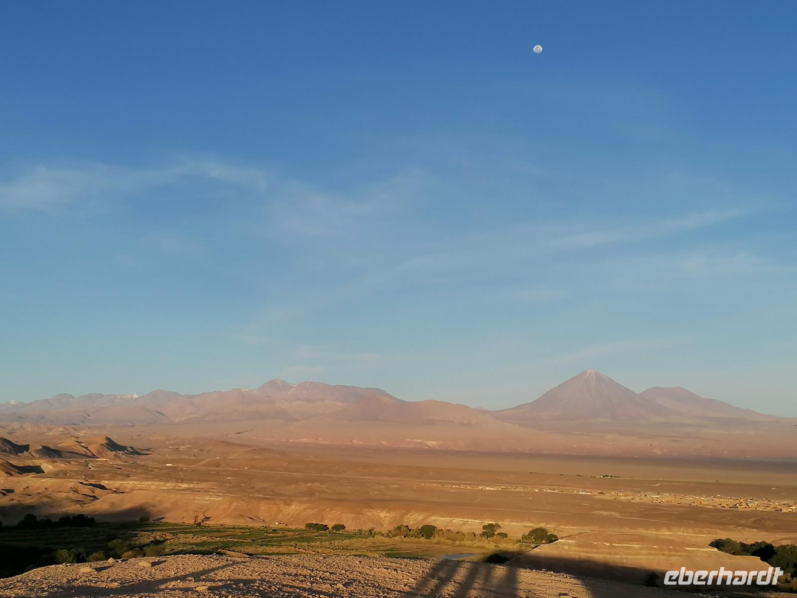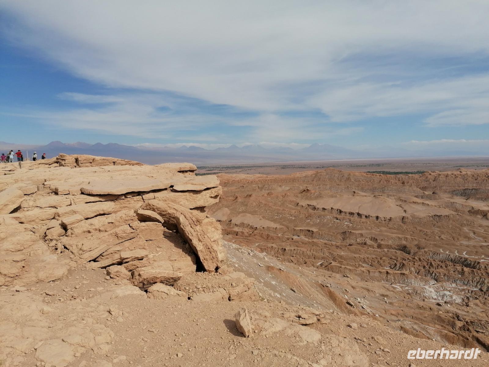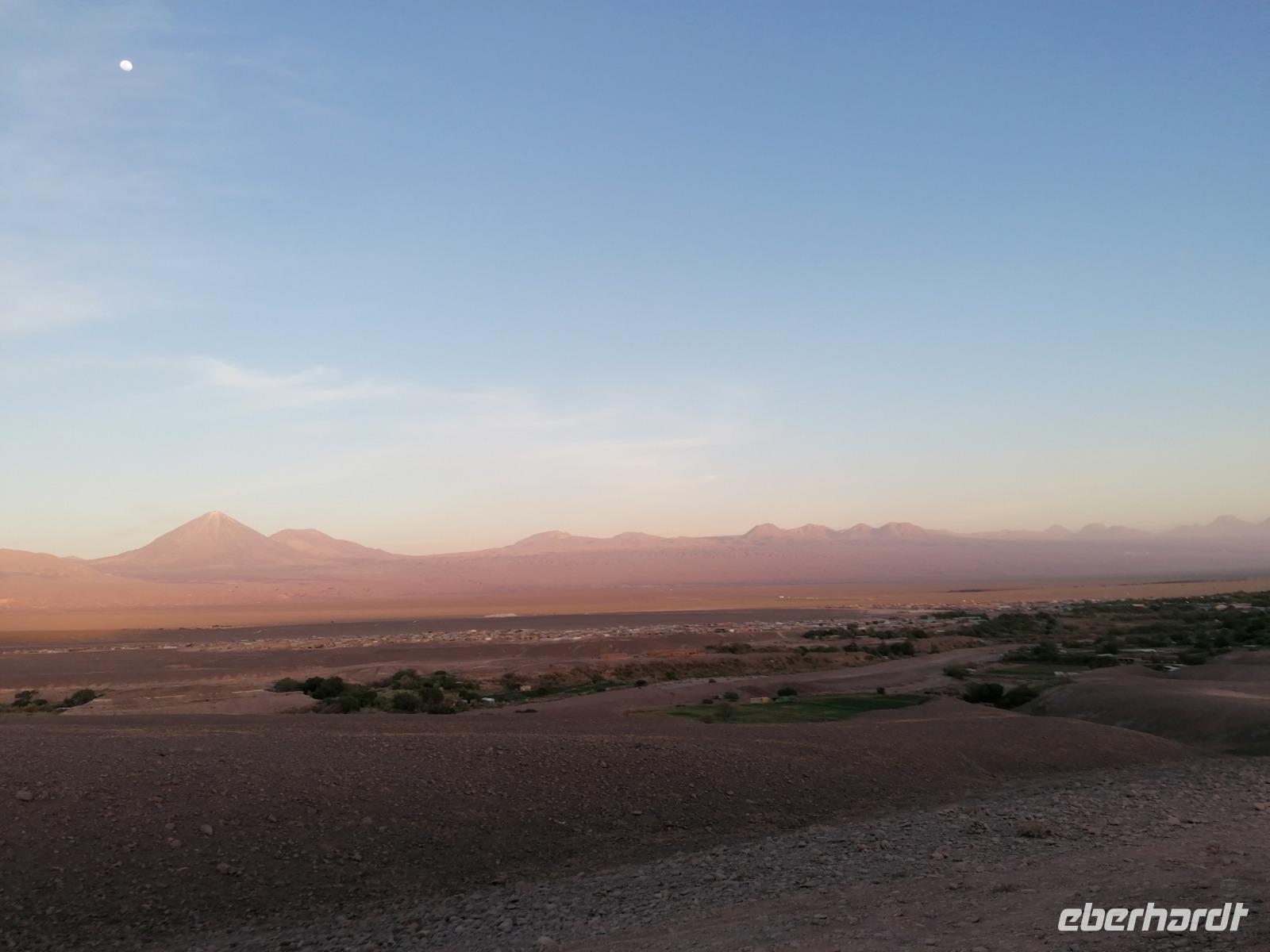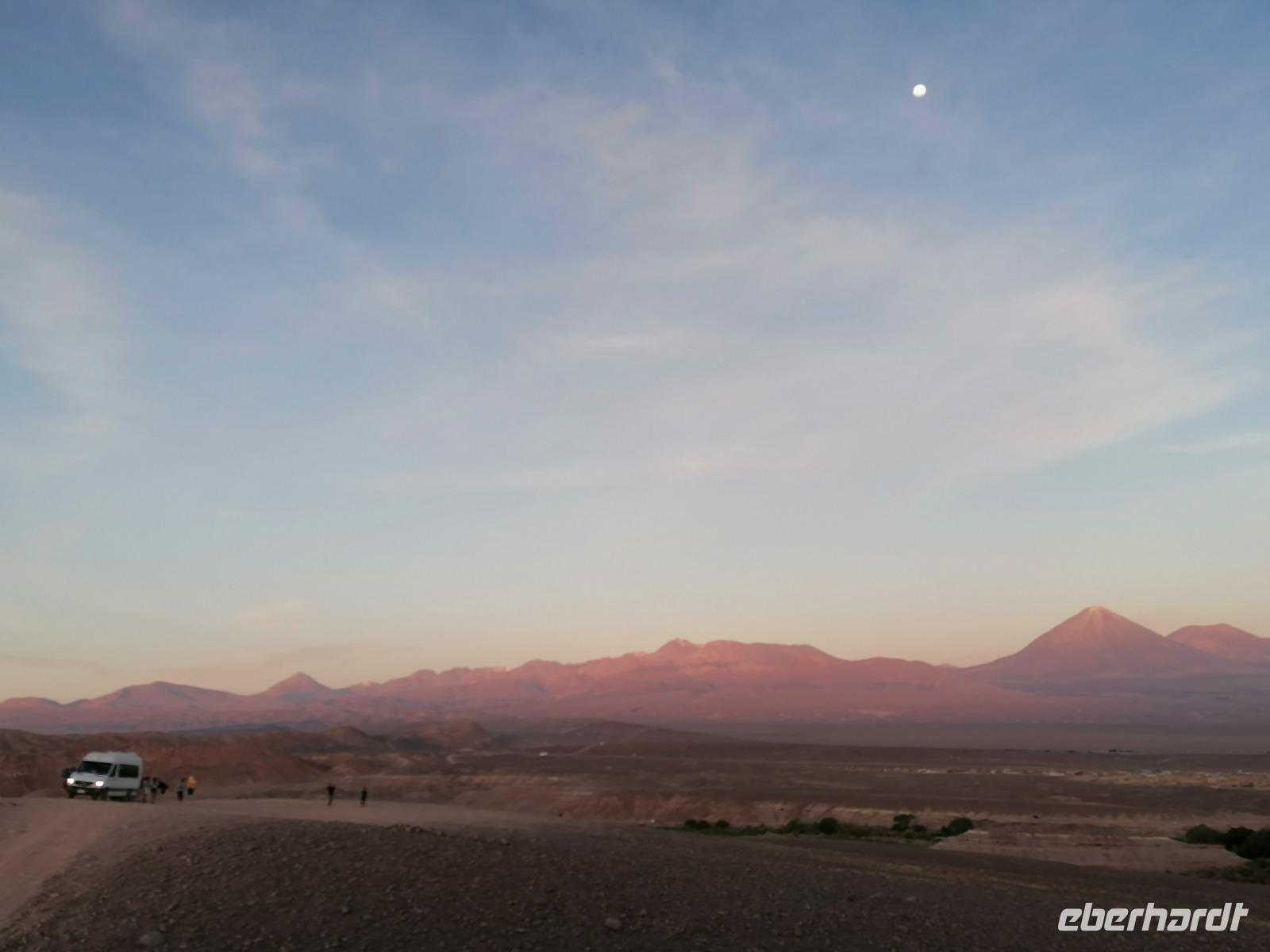 Unser erstes Frühstück auf dem südamerikanischen Kontinent genossen wir in vollen Zügen. Gut gestärkt und ausgeschlafen fuhren wir mit dem Ziel Atacama Wüste zum Flughafen zurück. Das Flug verging schnell und plötzlich erreichten wir eine völlig neue Welt. Die Atacama-Wüste gilt als trockenste Wüste außerhalb der Polargebiete. Es gibt sogar Orte, wo es seit Jahren nicht mehr geregnet hat. Geprägt wird die Sandwüste durch die trockenen Ostwinde von der Anden-Seite und der kalten Meeresströmung der Küstenregion. Dieser sogenannte Humboldtstrom ist auch für das Klimaphänomen El-Nino verantwortlich, das alle 6 - 10 Jahre zu heftigen Niederschlägen und ein kurzzeitiges Erblühen der Wüste führt. Vom Flughafen Calama fuhren wir nach San Pedro, wo wir unser Domizil für die nächsten Tage bezogen. Nach einer kurzen Mittagspause stand das Mondtal und Marstal auf unserer Agenda. Ursprüngliche sollte das Marstal, Tal des Todes heißen, aber durch einen Übersetzungsfehler des belgischen Geistlichen Gustav le Paige entstand das Marstal. Aber egal ob Tal des Todes oder Marstal - der Besuch hat uns gut gefallen und wir wurden von unserer örtlichen Reiseleiterin Jenny hervoragend geführt und erhielten viele Informationen, obwohl ihre Steinsammlung verschwunden war. Unsere Route führte uns im Anschluss weiter ins Mondtal - Valle de la Luna. Im Mondtal fuhren wir zunächst zu den 3 Schwestern absolvierten wir einen kleinen Spaziergang. Nach dem Spaziergang durch das Mondtal, fuhren wir auf eine Sanddüne, um den Sonnenuntergang bei Priedra del Coyote zu erleben. Hier gab es eine weitere Überraschung. Unsere Reiseleiterin Jenny und Erik breiteten einen wunderbaren Snack und Wein vor und wir stießen auf den wunderschönen Sonnenuntergang im Mondtal an. Unser Abendessen Namen wir in einem Restaurant in San Pedro ein, wo wir leckeres Hühnchen essen konnten und von einer tollen Musikerin begleitet wurden.