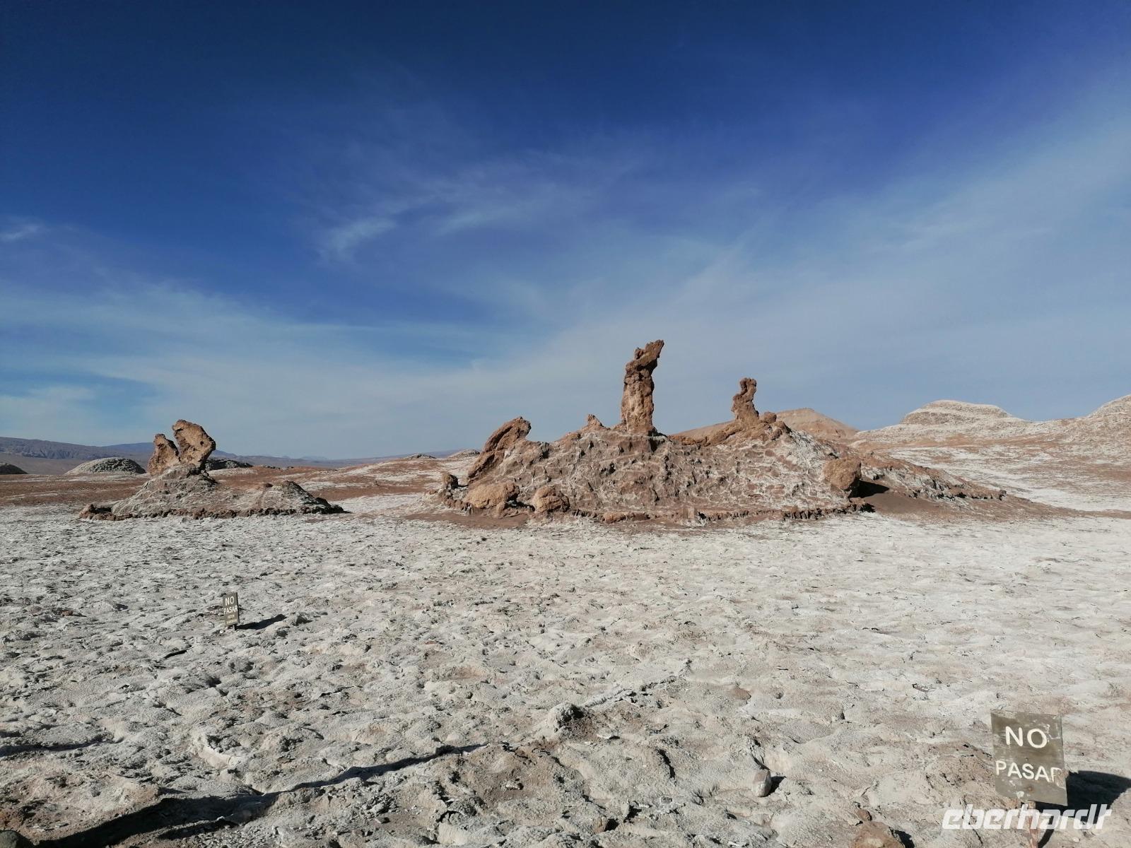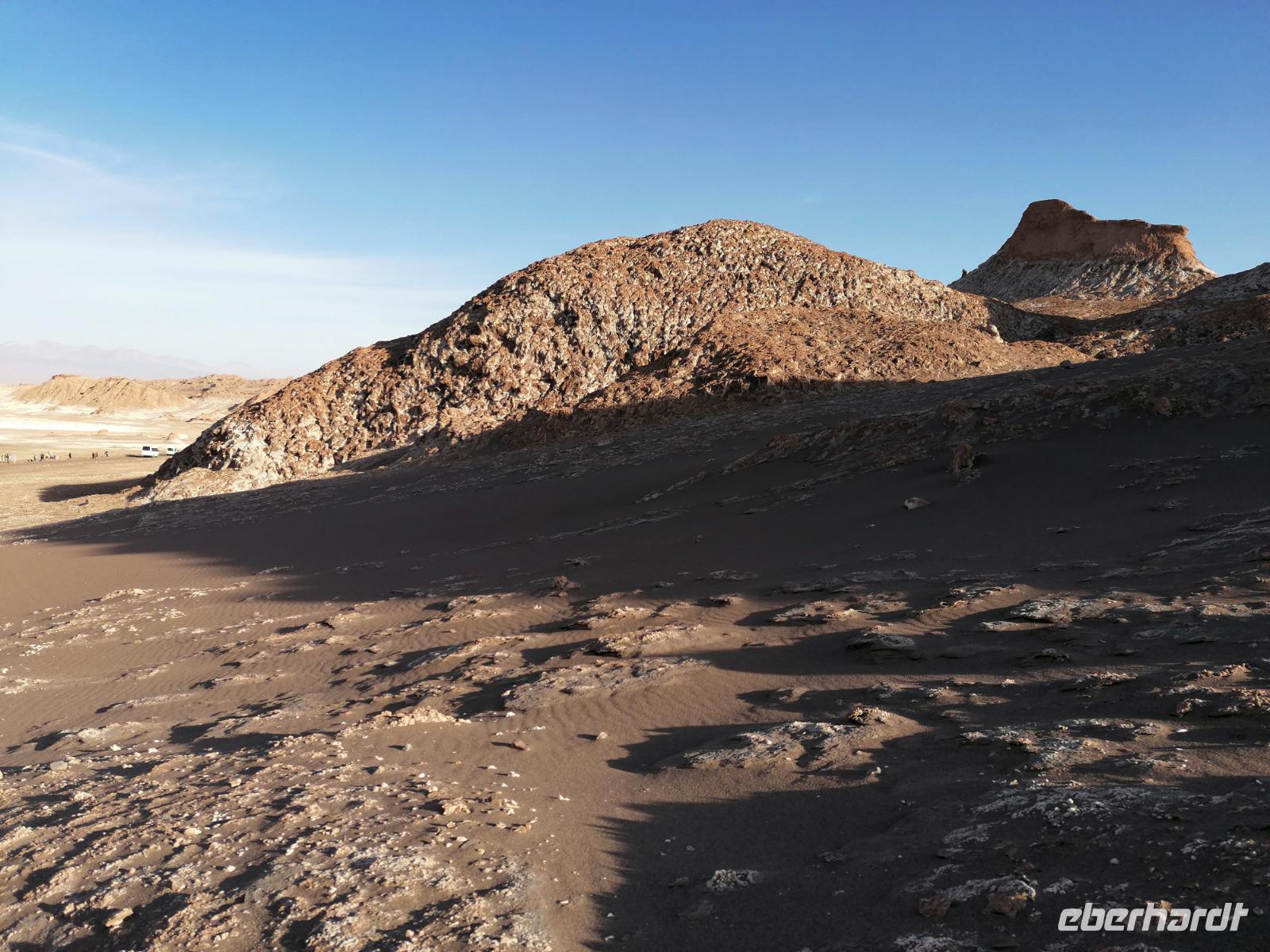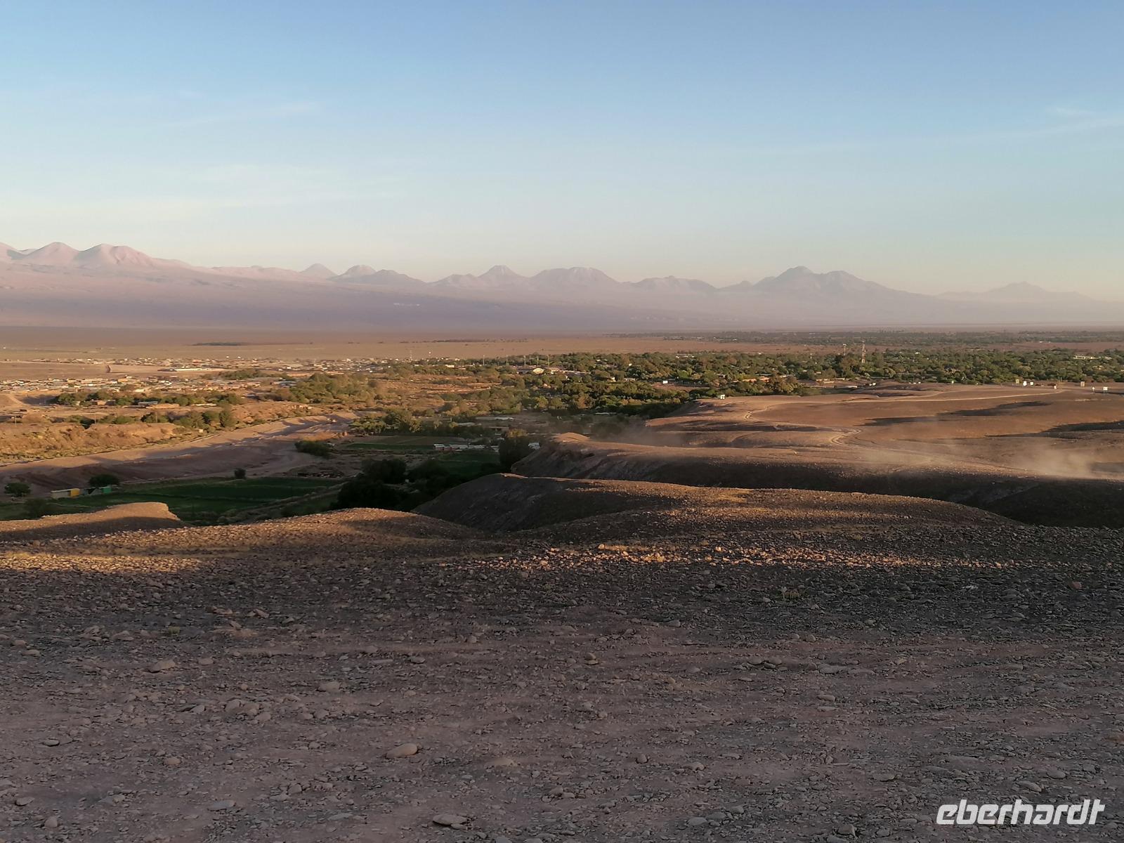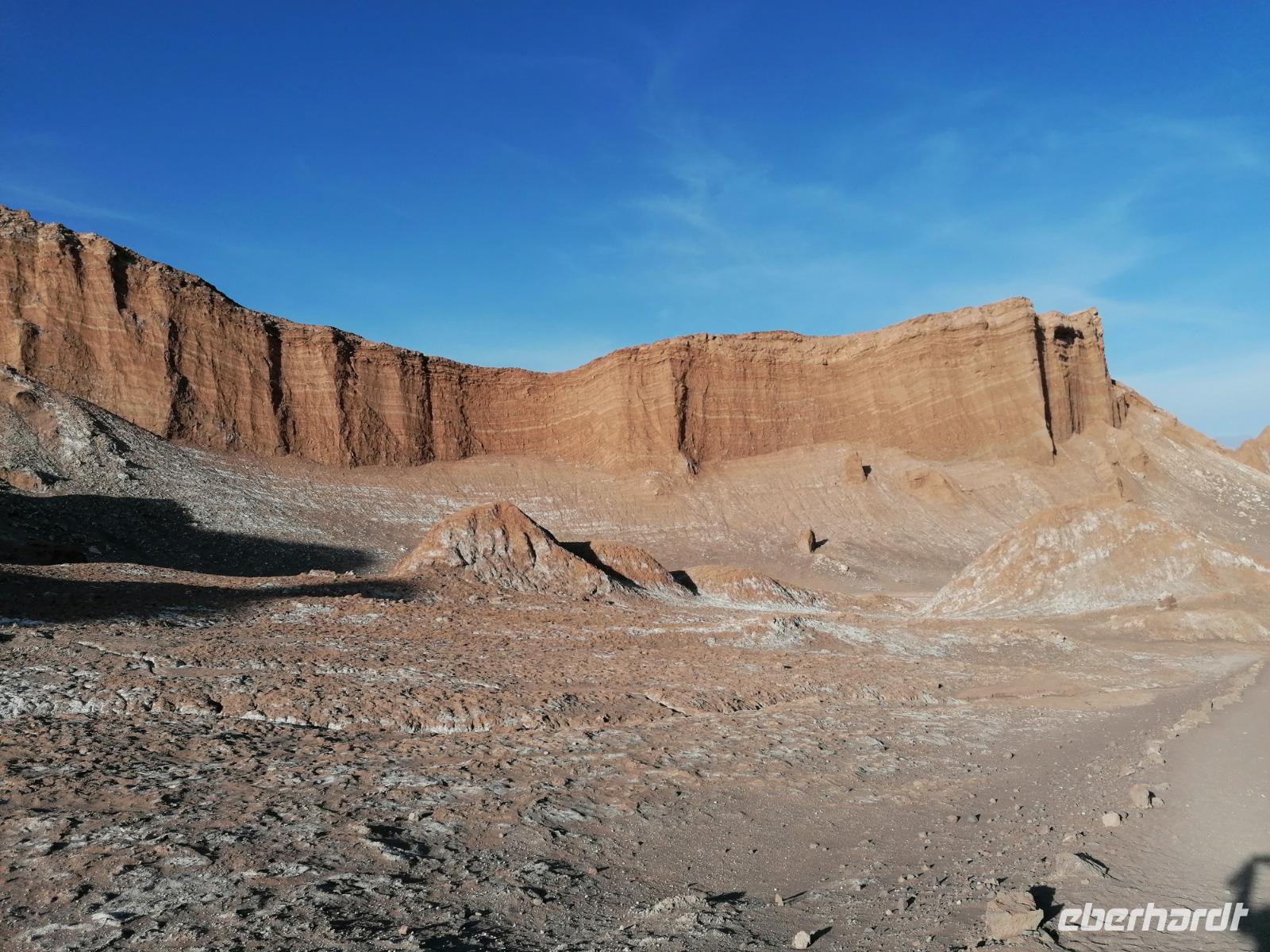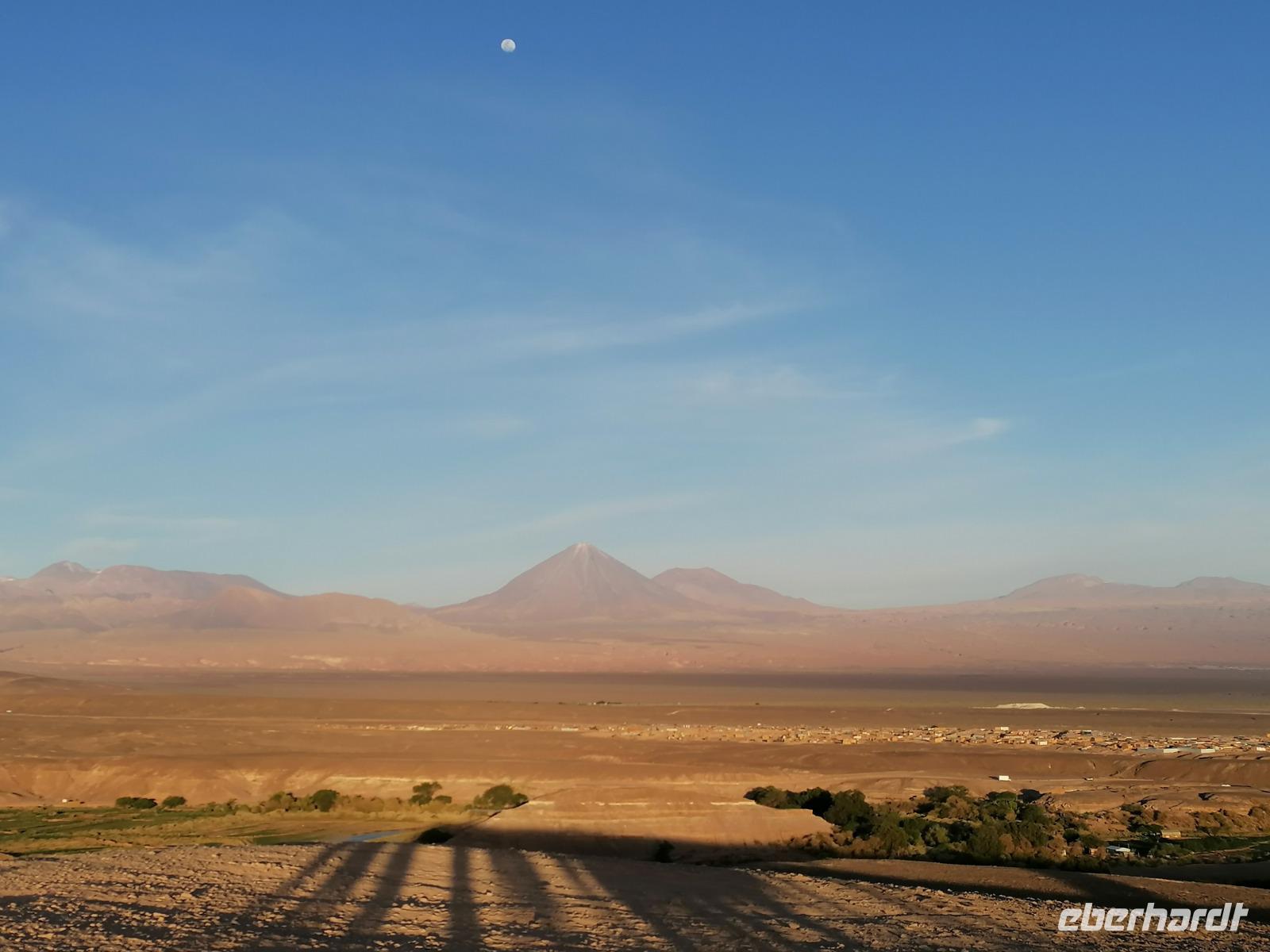 Unser erstes Frühstück auf dem südamerikanischen Kontinent genossen wir in vollen Zügen. Gut gestärkt und ausgeschlafen fuhren wir mit dem Ziel Atacama Wüste zum Flughafen zurück. Das Flug verging schnell und plötzlich erreichten wir eine völlig neue Welt. Die Atacama-Wüste gilt als trockenste Wüste außerhalb der Polargebiete. Es gibt sogar Orte, wo es seit Jahren nicht mehr geregnet hat. Geprägt wird die Sandwüste durch die trockenen Ostwinde von der Anden-Seite und der kalten Meeresströmung der Küstenregion. Dieser sogenannte Humboldtstrom ist auch für das Klimaphänomen El-Nino verantwortlich, das alle 6 - 10 Jahre zu heftigen Niederschlägen und ein kurzzeitiges Erblühen der Wüste führt. Vom Flughafen Calama fuhren wir nach San Pedro, wo wir unser Domizil für die nächsten Tage bezogen. Nach einer kurzen Mittagspause stand das Mondtal und Marstal auf unserer Agenda. Ursprüngliche sollte das Marstal, Tal des Todes heißen, aber durch einen Übersetzungsfehler des belgischen Geistlichen Gustav le Paige entstand das Marstal. Aber egal ob Tal des Todes oder Marstal - der Besuch hat uns gut gefallen und wir wurden von unserer örtlichen Reiseleiterin Jenny hervoragend geführt und erhielten viele Informationen, obwohl ihre Steinsammlung verschwunden war. Unsere Route führte uns im Anschluss weiter ins Mondtal - Valle de la Luna. Im Mondtal fuhren wir zunächst zu den 3 Schwestern absolvierten wir einen kleinen Spaziergang. Nach dem Spaziergang durch das Mondtal, fuhren wir auf eine Sanddüne, um den Sonnenuntergang bei Priedra del Coyote zu erleben. Hier gab es eine weitere Überraschung. Unsere Reiseleiterin Jenny und Erik breiteten einen wunderbaren Snack und Wein vor und wir stießen auf den wunderschönen Sonnenuntergang im Mondtal an. Unser Abendessen Namen wir in einem Restaurant in San Pedro ein, wo wir leckeres Hühnchen essen konnten und von einer tollen Musikerin begleitet wurden.