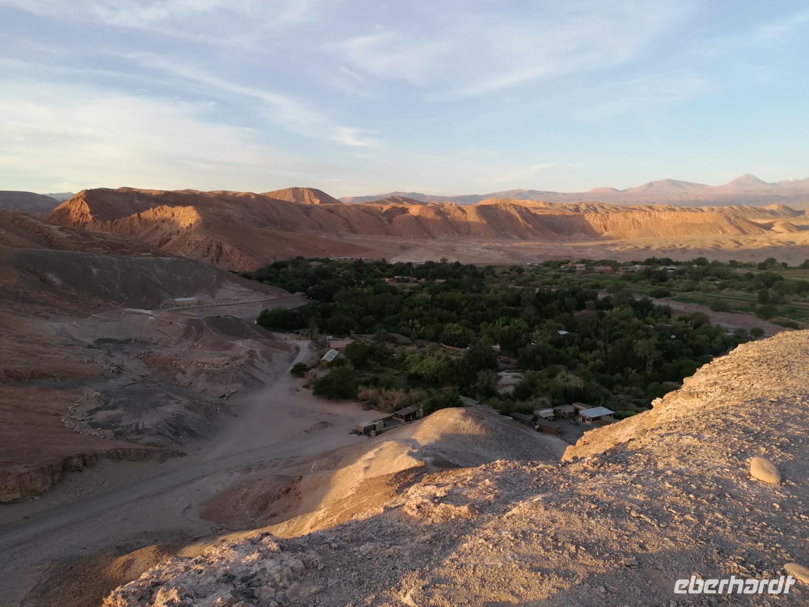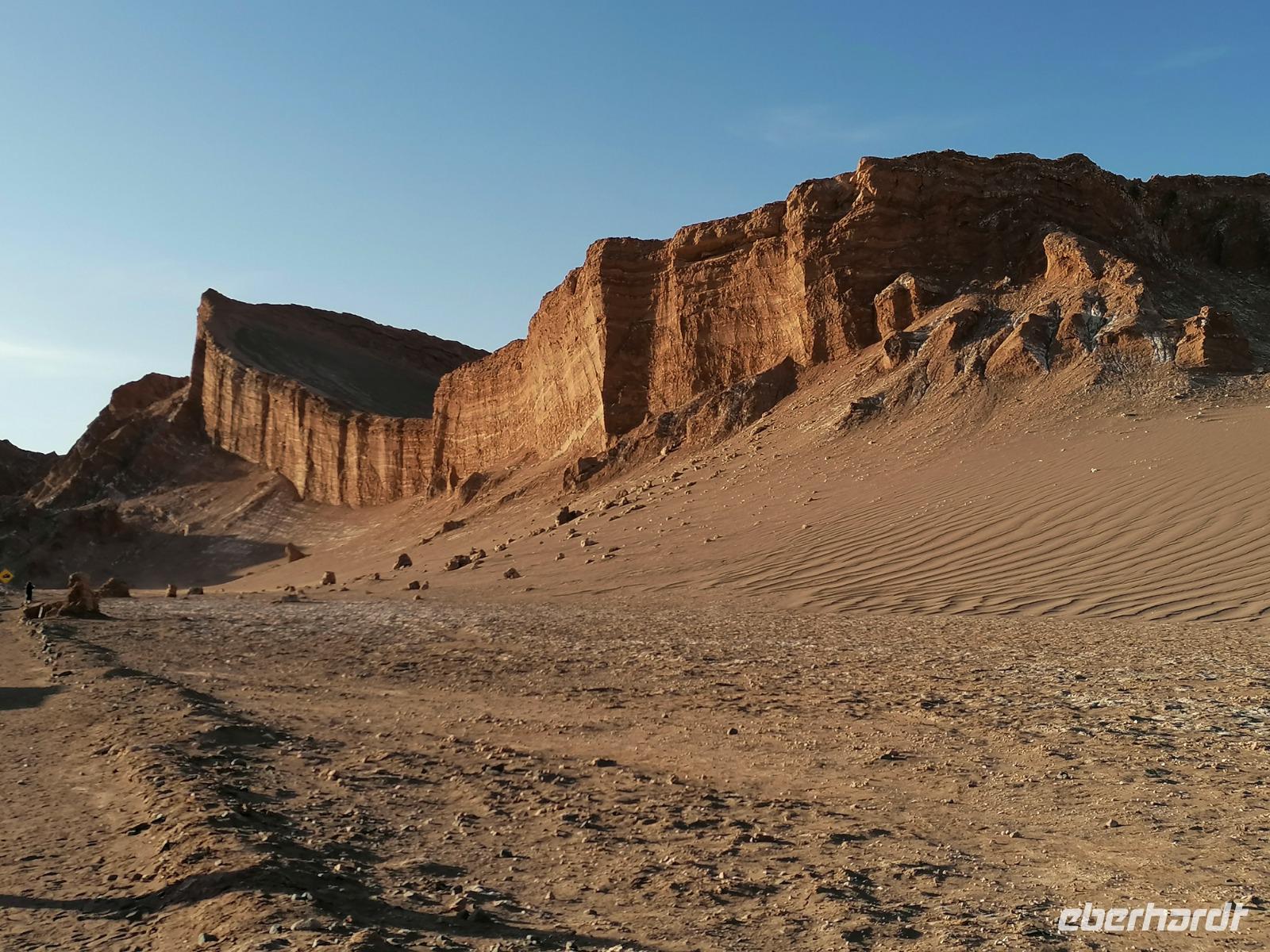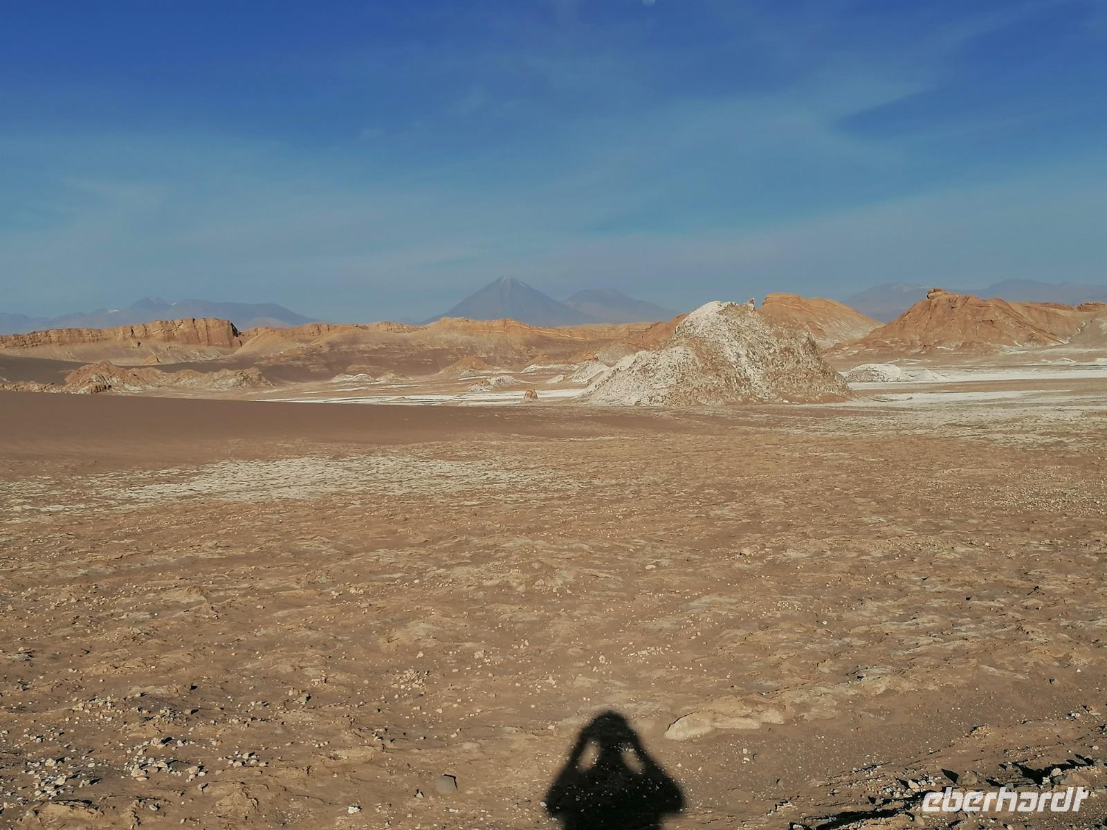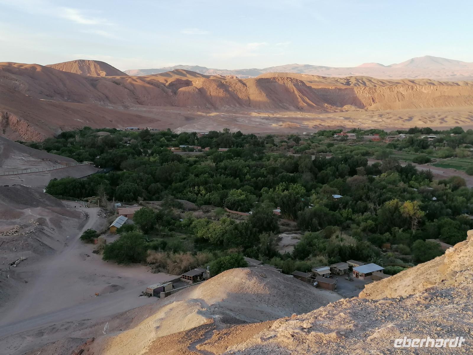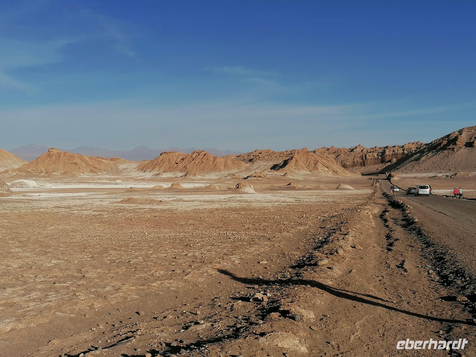 Unser erstes Frühstück auf dem südamerikanischen Kontinent genossen wir in vollen Zügen. Gut gestärkt und ausgeschlafen fuhren wir mit dem Ziel Atacama Wüste zum Flughafen zurück. Das Flug verging schnell und plötzlich erreichten wir eine völlig neue Welt. Die Atacama-Wüste gilt als trockenste Wüste außerhalb der Polargebiete. Es gibt sogar Orte, wo es seit Jahren nicht mehr geregnet hat. Geprägt wird die Sandwüste durch die trockenen Ostwinde von der Anden-Seite und der kalten Meeresströmung der Küstenregion. Dieser sogenannte Humboldtstrom ist auch für das Klimaphänomen El-Nino verantwortlich, das alle 6 - 10 Jahre zu heftigen Niederschlägen und ein kurzzeitiges Erblühen der Wüste führt. Vom Flughafen Calama fuhren wir nach San Pedro, wo wir unser Domizil für die nächsten Tage bezogen. Nach einer kurzen Mittagspause stand das Mondtal und Marstal auf unserer Agenda. Ursprüngliche sollte das Marstal, Tal des Todes heißen, aber durch einen Übersetzungsfehler des belgischen Geistlichen Gustav le Paige entstand das Marstal. Aber egal ob Tal des Todes oder Marstal - der Besuch hat uns gut gefallen und wir wurden von unserer örtlichen Reiseleiterin Jenny hervoragend geführt und erhielten viele Informationen, obwohl ihre Steinsammlung verschwunden war. Unsere Route führte uns im Anschluss weiter ins Mondtal - Valle de la Luna. Im Mondtal fuhren wir zunächst zu den 3 Schwestern absolvierten wir einen kleinen Spaziergang. Nach dem Spaziergang durch das Mondtal, fuhren wir auf eine Sanddüne, um den Sonnenuntergang bei Priedra del Coyote zu erleben. Hier gab es eine weitere Überraschung. Unsere Reiseleiterin Jenny und Erik breiteten einen wunderbaren Snack und Wein vor und wir stießen auf den wunderschönen Sonnenuntergang im Mondtal an. Unser Abendessen Namen wir in einem Restaurant in San Pedro ein, wo wir leckeres Hühnchen essen konnten und von einer tollen Musikerin begleitet wurden.