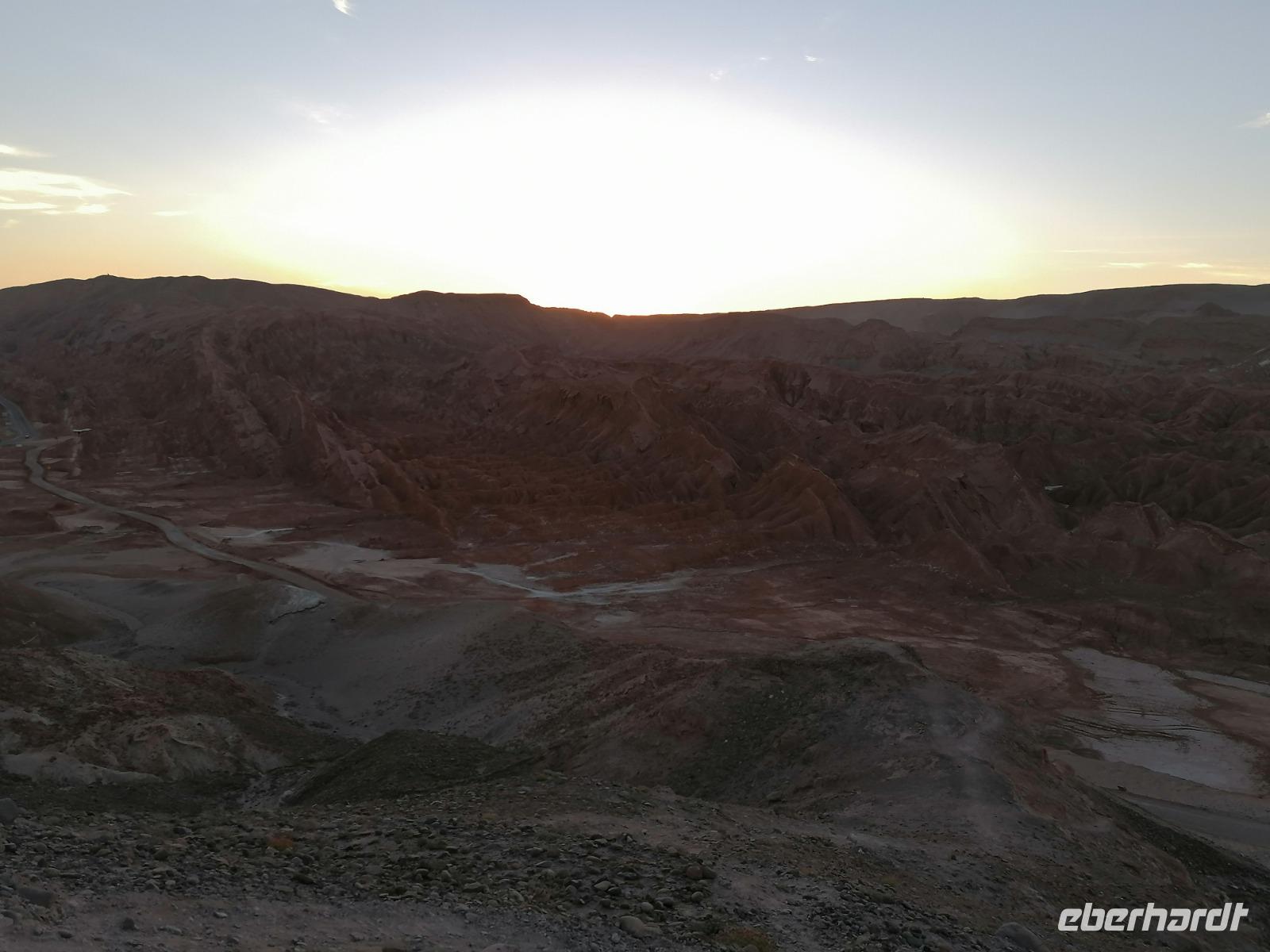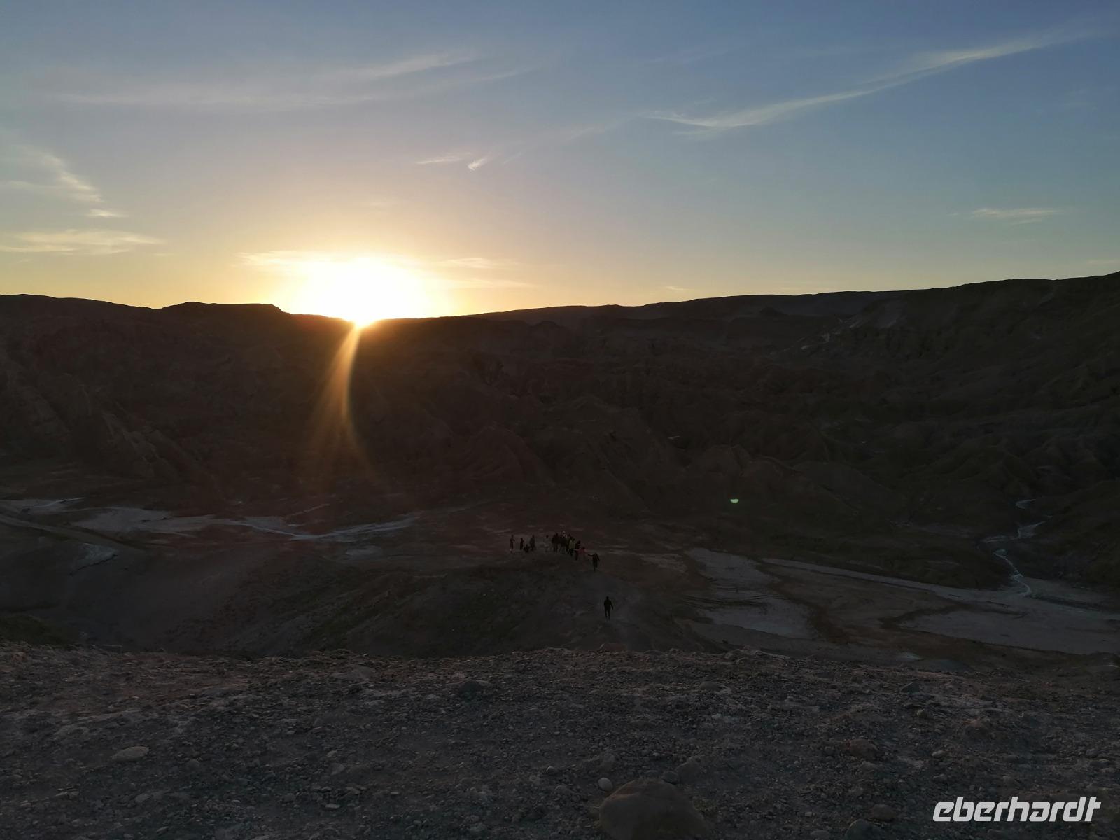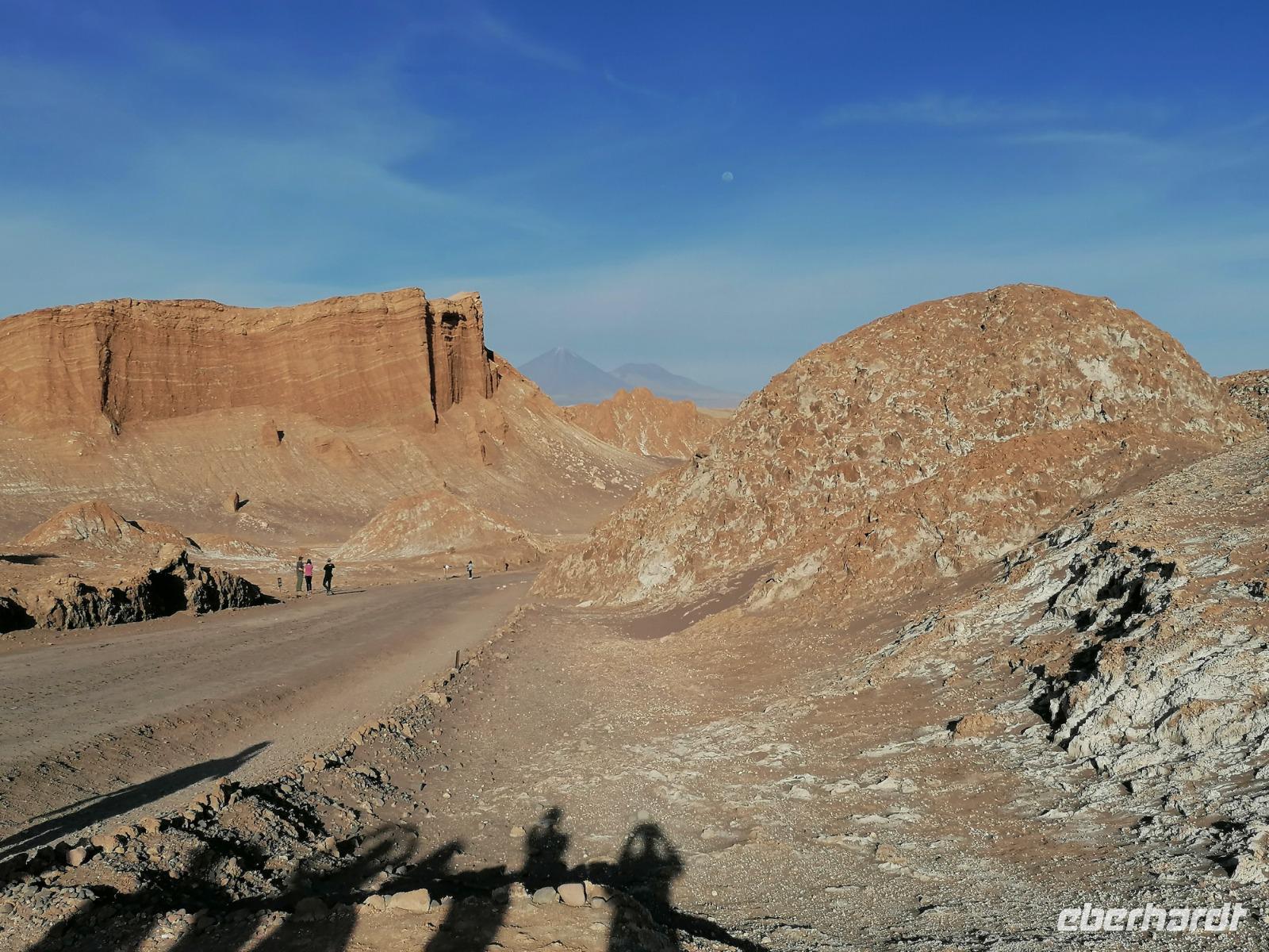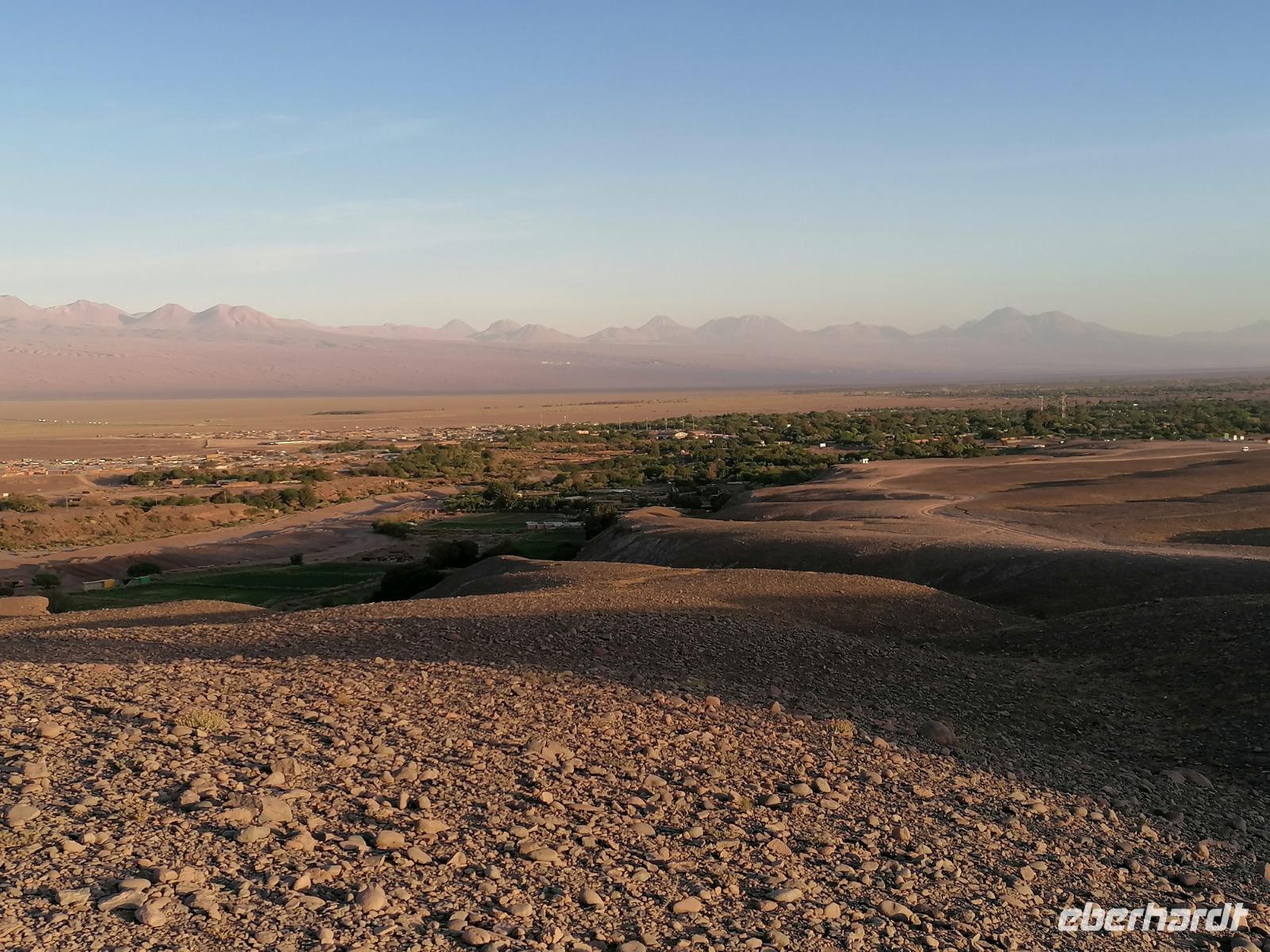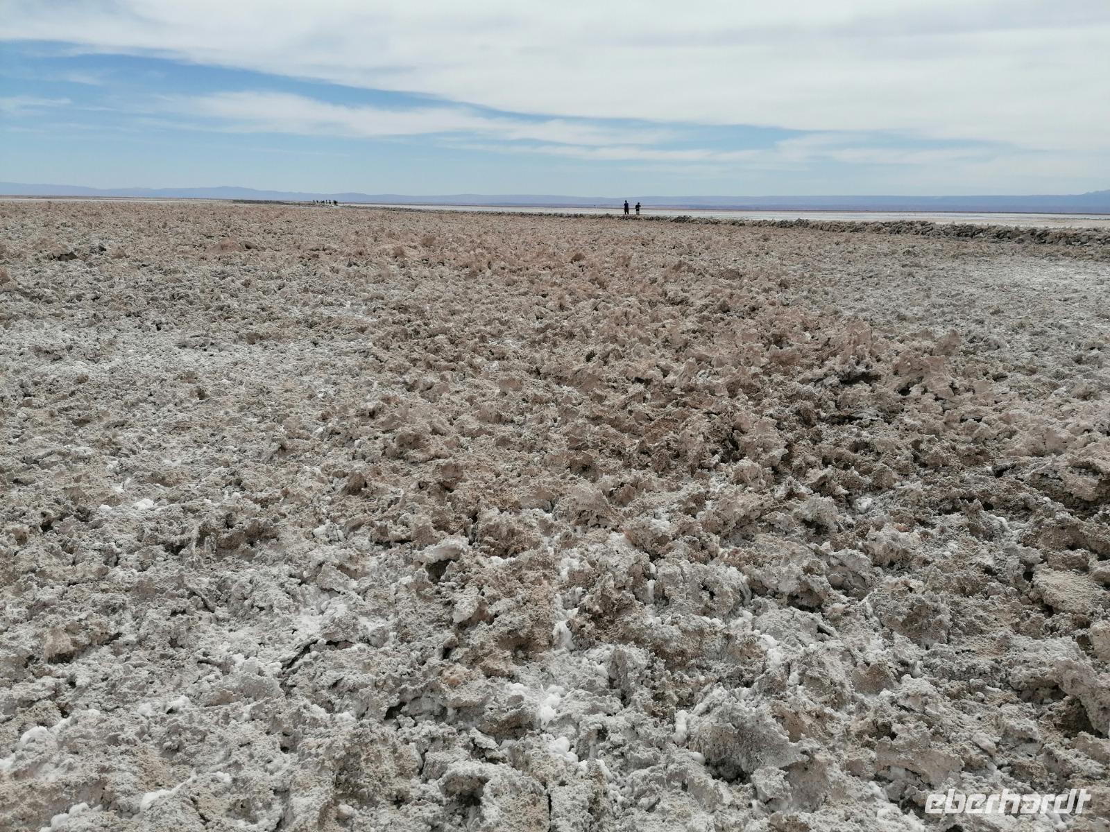 Unser erstes Frühstück auf dem südamerikanischen Kontinent genossen wir in vollen Zügen. Gut gestärkt und ausgeschlafen fuhren wir mit dem Ziel Atacama Wüste zum Flughafen zurück. Das Flug verging schnell und plötzlich erreichten wir eine völlig neue Welt. Die Atacama-Wüste gilt als trockenste Wüste außerhalb der Polargebiete. Es gibt sogar Orte, wo es seit Jahren nicht mehr geregnet hat. Geprägt wird die Sandwüste durch die trockenen Ostwinde von der Anden-Seite und der kalten Meeresströmung der Küstenregion. Dieser sogenannte Humboldtstrom ist auch für das Klimaphänomen El-Nino verantwortlich, das alle 6 - 10 Jahre zu heftigen Niederschlägen und ein kurzzeitiges Erblühen der Wüste führt. Vom Flughafen Calama fuhren wir nach San Pedro, wo wir unser Domizil für die nächsten Tage bezogen. Nach einer kurzen Mittagspause stand das Mondtal und Marstal auf unserer Agenda. Ursprüngliche sollte das Marstal, Tal des Todes heißen, aber durch einen Übersetzungsfehler des belgischen Geistlichen Gustav le Paige entstand das Marstal. Aber egal ob Tal des Todes oder Marstal - der Besuch hat uns gut gefallen und wir wurden von unserer örtlichen Reiseleiterin Jenny hervoragend geführt und erhielten viele Informationen, obwohl ihre Steinsammlung verschwunden war. Unsere Route führte uns im Anschluss weiter ins Mondtal - Valle de la Luna. Im Mondtal fuhren wir zunächst zu den 3 Schwestern absolvierten wir einen kleinen Spaziergang. Nach dem Spaziergang durch das Mondtal, fuhren wir auf eine Sanddüne, um den Sonnenuntergang bei Priedra del Coyote zu erleben. Hier gab es eine weitere Überraschung. Unsere Reiseleiterin Jenny und Erik breiteten einen wunderbaren Snack und Wein vor und wir stießen auf den wunderschönen Sonnenuntergang im Mondtal an. Unser Abendessen Namen wir in einem Restaurant in San Pedro ein, wo wir leckeres Hühnchen essen konnten und von einer tollen Musikerin begleitet wurden.