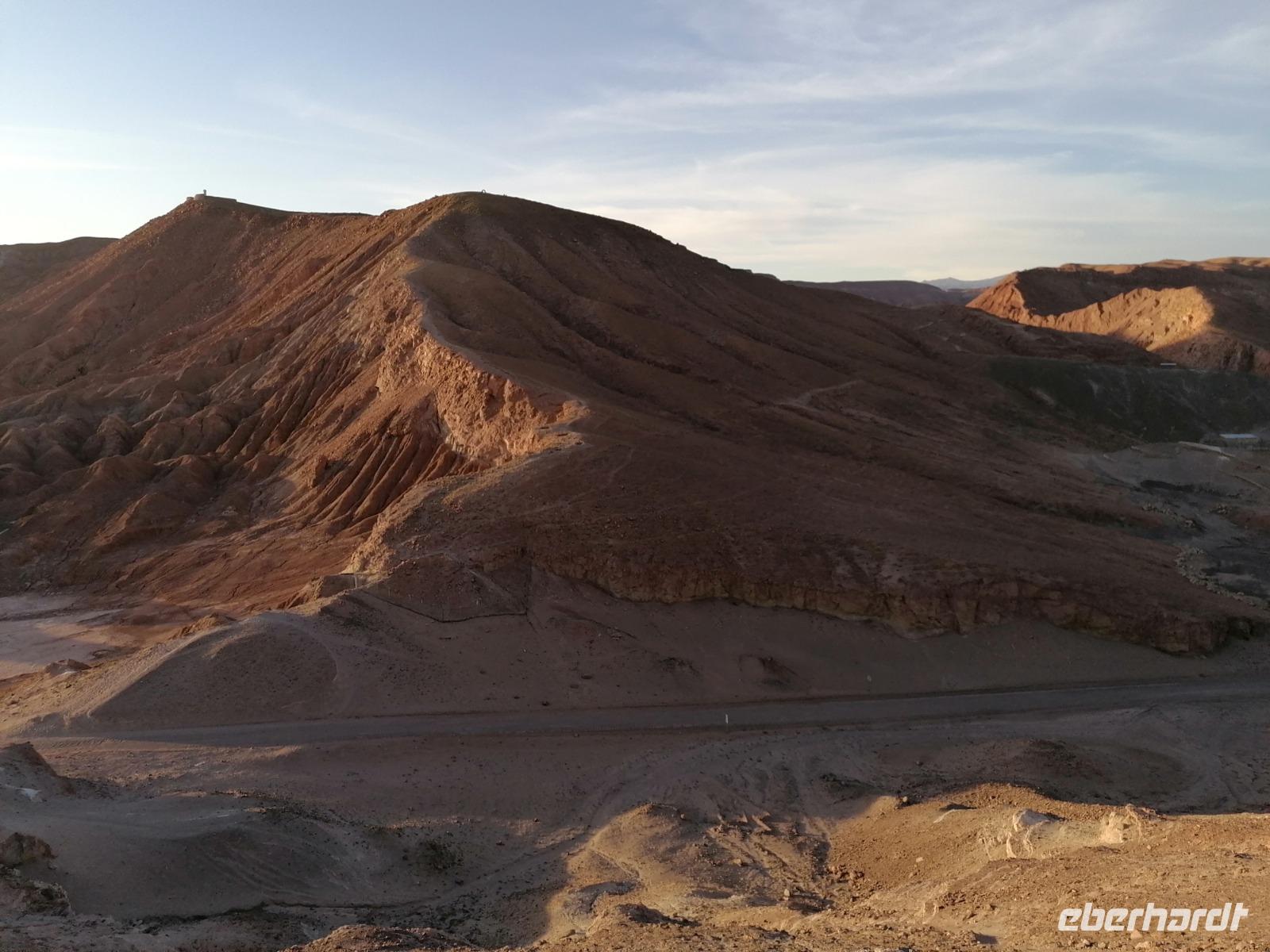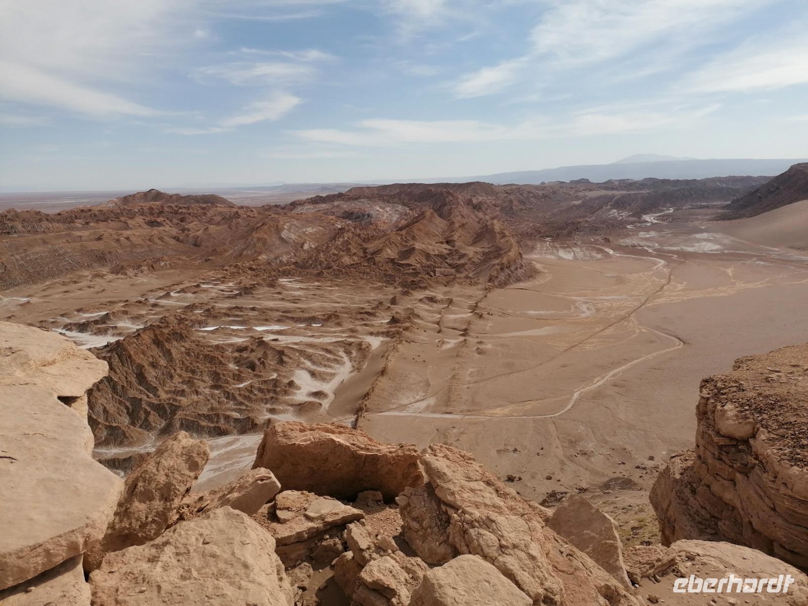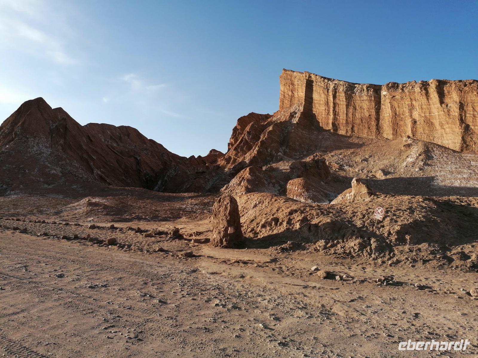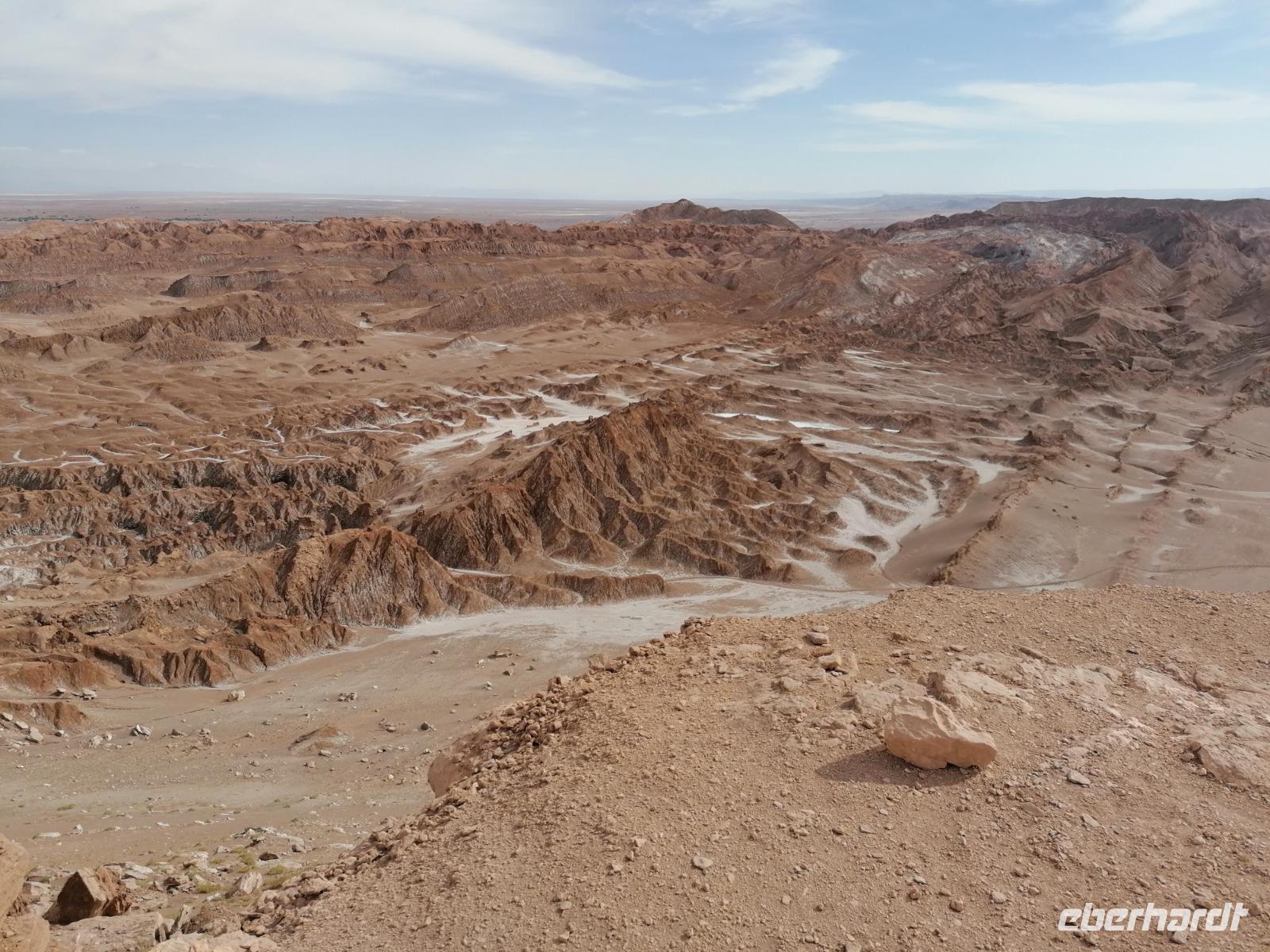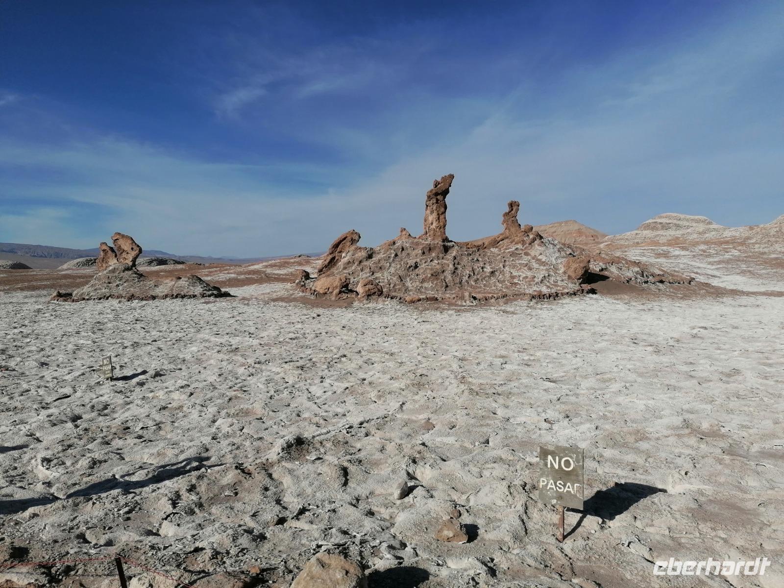 Unser erstes Frühstück auf dem südamerikanischen Kontinent genossen wir in vollen Zügen. Gut gestärkt und ausgeschlafen fuhren wir mit dem Ziel Atacama Wüste zum Flughafen zurück. Das Flug verging schnell und plötzlich erreichten wir eine völlig neue Welt. Die Atacama-Wüste gilt als trockenste Wüste außerhalb der Polargebiete. Es gibt sogar Orte, wo es seit Jahren nicht mehr geregnet hat. Geprägt wird die Sandwüste durch die trockenen Ostwinde von der Anden-Seite und der kalten Meeresströmung der Küstenregion. Dieser sogenannte Humboldtstrom ist auch für das Klimaphänomen El-Nino verantwortlich, das alle 6 - 10 Jahre zu heftigen Niederschlägen und ein kurzzeitiges Erblühen der Wüste führt. Vom Flughafen Calama fuhren wir nach San Pedro, wo wir unser Domizil für die nächsten Tage bezogen. Nach einer kurzen Mittagspause stand das Mondtal und Marstal auf unserer Agenda. Ursprüngliche sollte das Marstal, Tal des Todes heißen, aber durch einen Übersetzungsfehler des belgischen Geistlichen Gustav le Paige entstand das Marstal. Aber egal ob Tal des Todes oder Marstal - der Besuch hat uns gut gefallen und wir wurden von unserer örtlichen Reiseleiterin Jenny hervoragend geführt und erhielten viele Informationen, obwohl ihre Steinsammlung verschwunden war. Unsere Route führte uns im Anschluss weiter ins Mondtal - Valle de la Luna. Im Mondtal fuhren wir zunächst zu den 3 Schwestern absolvierten wir einen kleinen Spaziergang. Nach dem Spaziergang durch das Mondtal, fuhren wir auf eine Sanddüne, um den Sonnenuntergang bei Priedra del Coyote zu erleben. Hier gab es eine weitere Überraschung. Unsere Reiseleiterin Jenny und Erik breiteten einen wunderbaren Snack und Wein vor und wir stießen auf den wunderschönen Sonnenuntergang im Mondtal an. Unser Abendessen Namen wir in einem Restaurant in San Pedro ein, wo wir leckeres Hühnchen essen konnten und von einer tollen Musikerin begleitet wurden.