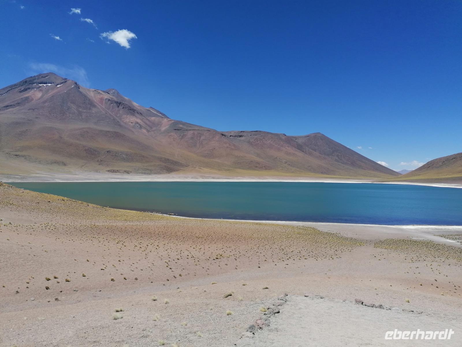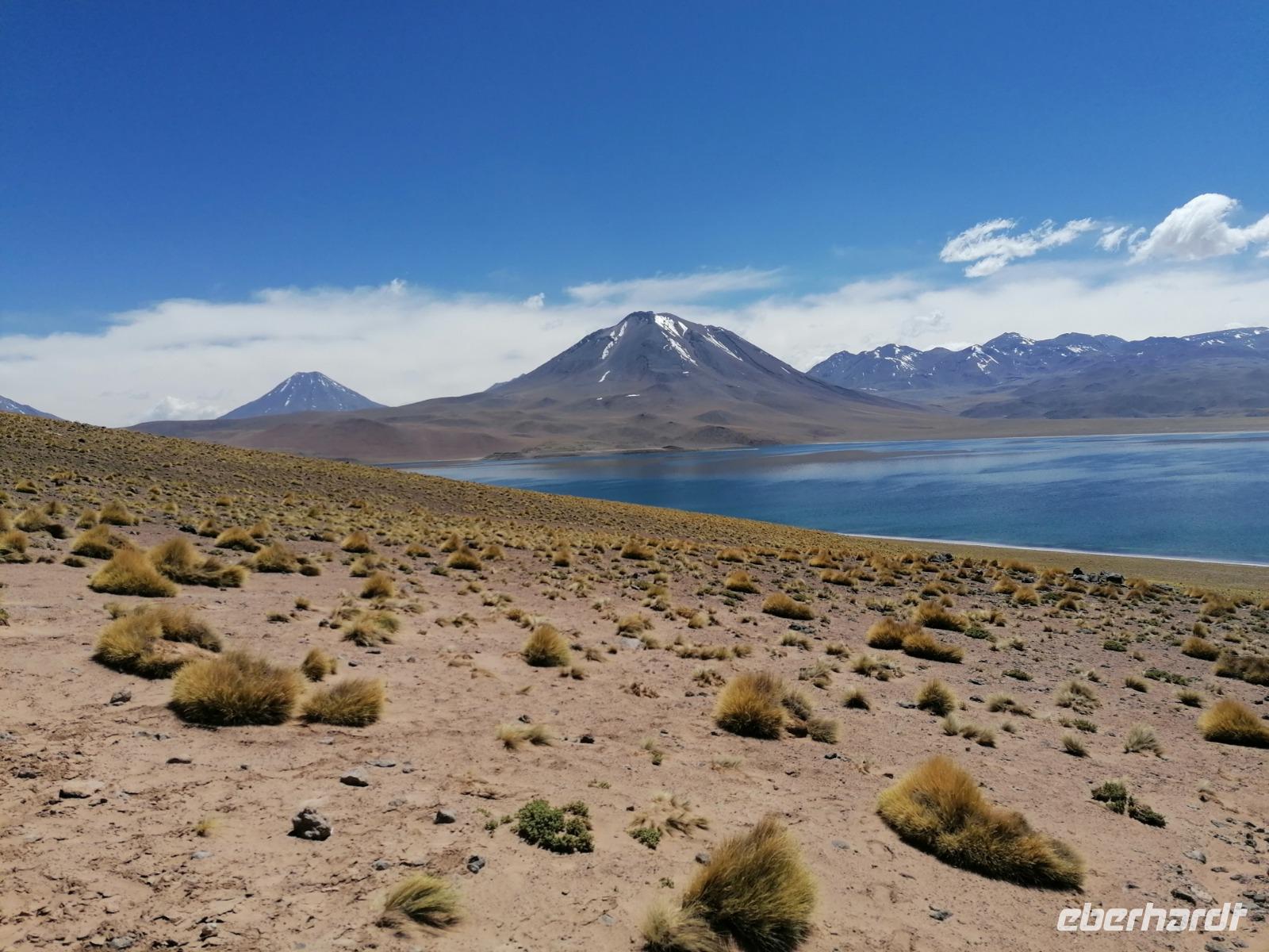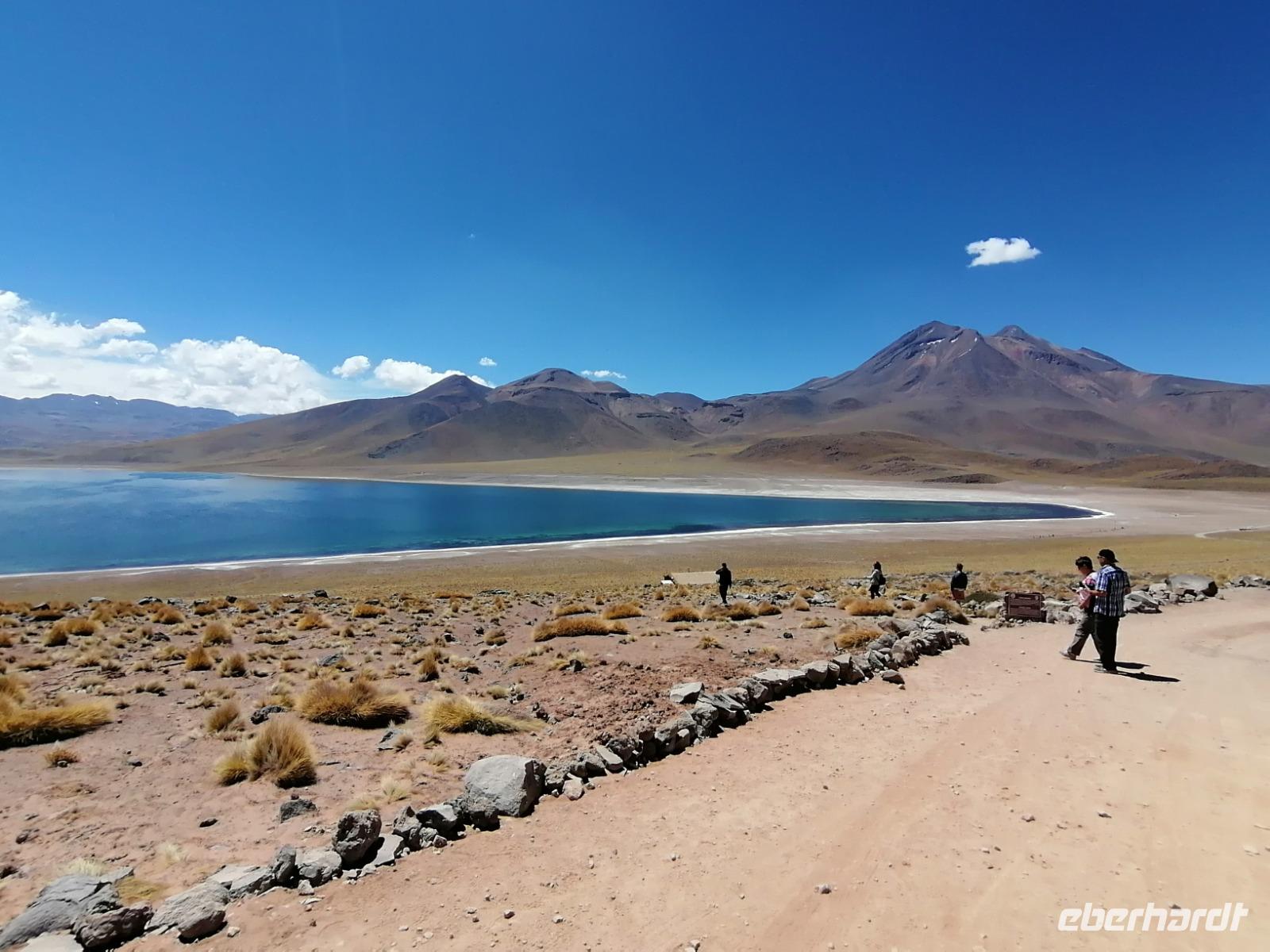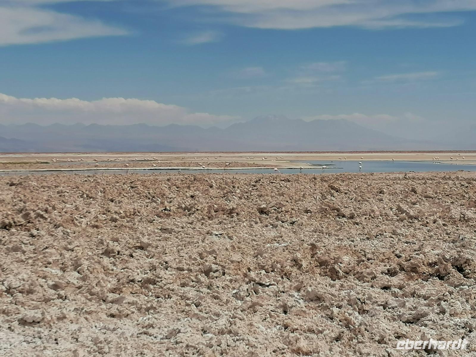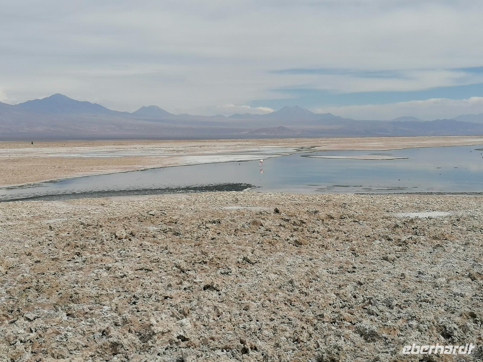 Unser zweiter Tag in der Atacama-Wüste begann mit einem leckeren Frühstück und wir testeten den berühmten Cocatee. Der Tee soll gegen Höhenkrankheiten helfen und da wir heute die Lagunen im Hochland besichtigten, verkosteten wir rein provisorisch den Cocatee beim Frühstück. Mit dem Bus ging es dann Richtung Hochland und einer Fahrt von ca. zwei Stunden machten wir unsere erste Pause in Toconao. Der kleine Ort wird geprägt durch seine Kirche und seinen schönen dekorierten Hauptplatz. Hier gab es Zeit, um Kleinigkeiten zu kaufen wie Cocablätter, Souvenirs oder auch Wasser. Das nächste Highlight sollte die Lagunen Miscanti und Miniques werden. Bei einem kleinen Spaziergang konnten wir die wunderschöne Landschaft entdecken. Die beiden Lagunen lange wunderschön in einem kleinen Tal umringt von einer hohen Gebirgskette. Das fantastische Panorama brachte uns zum Träumen. Jeder spazierte in seinem Tempo und wir machten eine Menge von Bildern. In der Ferne konnten wir sogar Flamingos und Alpakas entdecken. Nach ausreichend Zeit an diesem außergewöhnlich schönen Platz fuhren wir zurück nach Socaine. Hier nahmen wir unser Mittagessen in einem kleinen örtlichen Restaurant ein. Nach dem leckeren Essen spazierten wir zur kleinen Kirche von Socaine. Nach dem Mittagessen fuhren wir weiter nach Salar de Atacama. Der Salzsee liegt ca. 2400 Meter über dem Meeresspiegel. Wir spazierten entlang einen kleinen Lehrpfad des und unser Reiseleiter Erik erklärt uns eine Menge über die Flora und Fauna und Entstehung des Salzes. Zudem entdeckt mir eine Vielzahl an Flamingos und kleine Geckos, die sich in der Atacama Wüste angepasst haben. Gegen Nachmittag hätten wir zurück nach Sao Pedro und Abendessen man einen örtlichen Restaurant Aa la carte gemütlich zu abends. Eine schöne Zeit in der Atacama Wüste neigt sich dem Ende entgegen und wir stießen mit einem Pisco Sour auf die schönen Tage an.