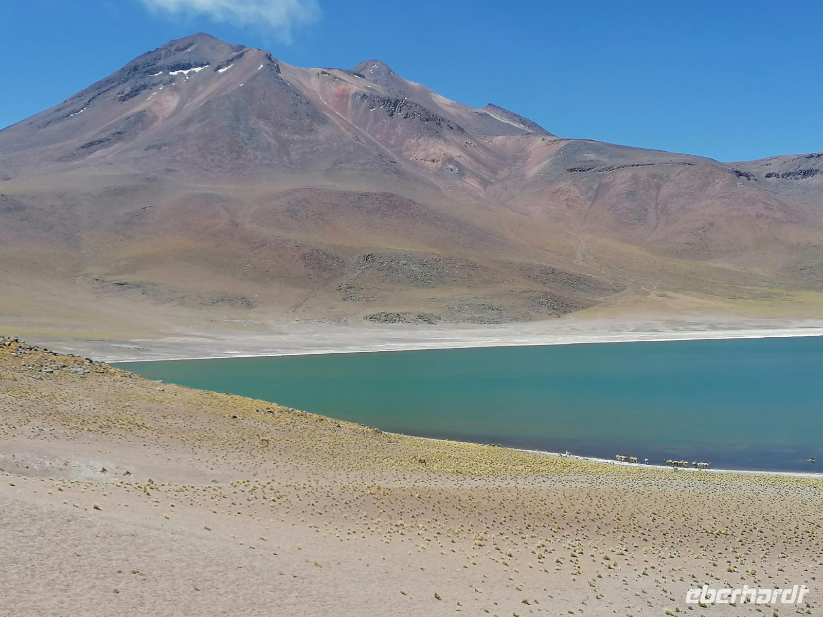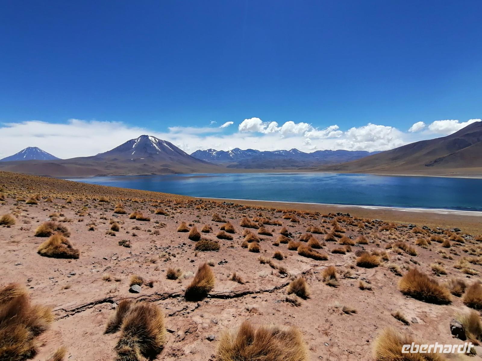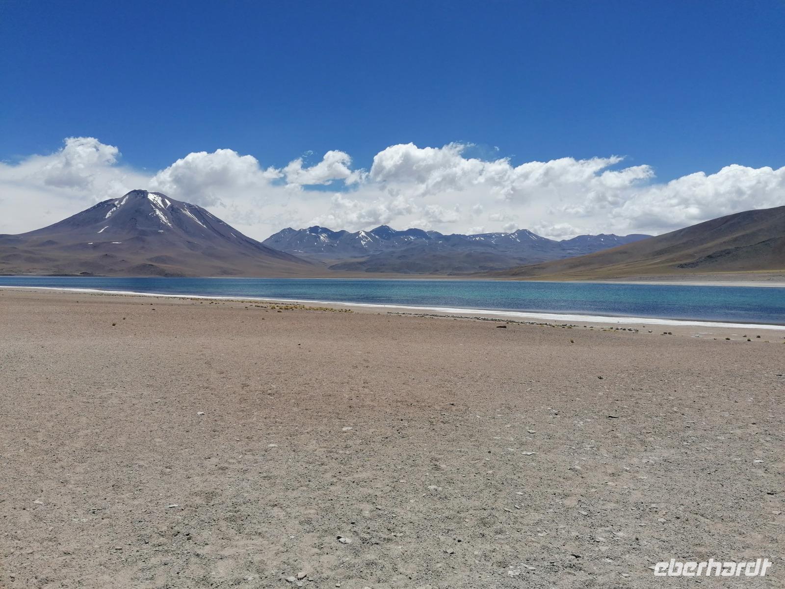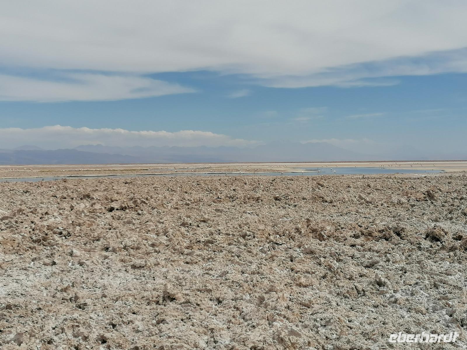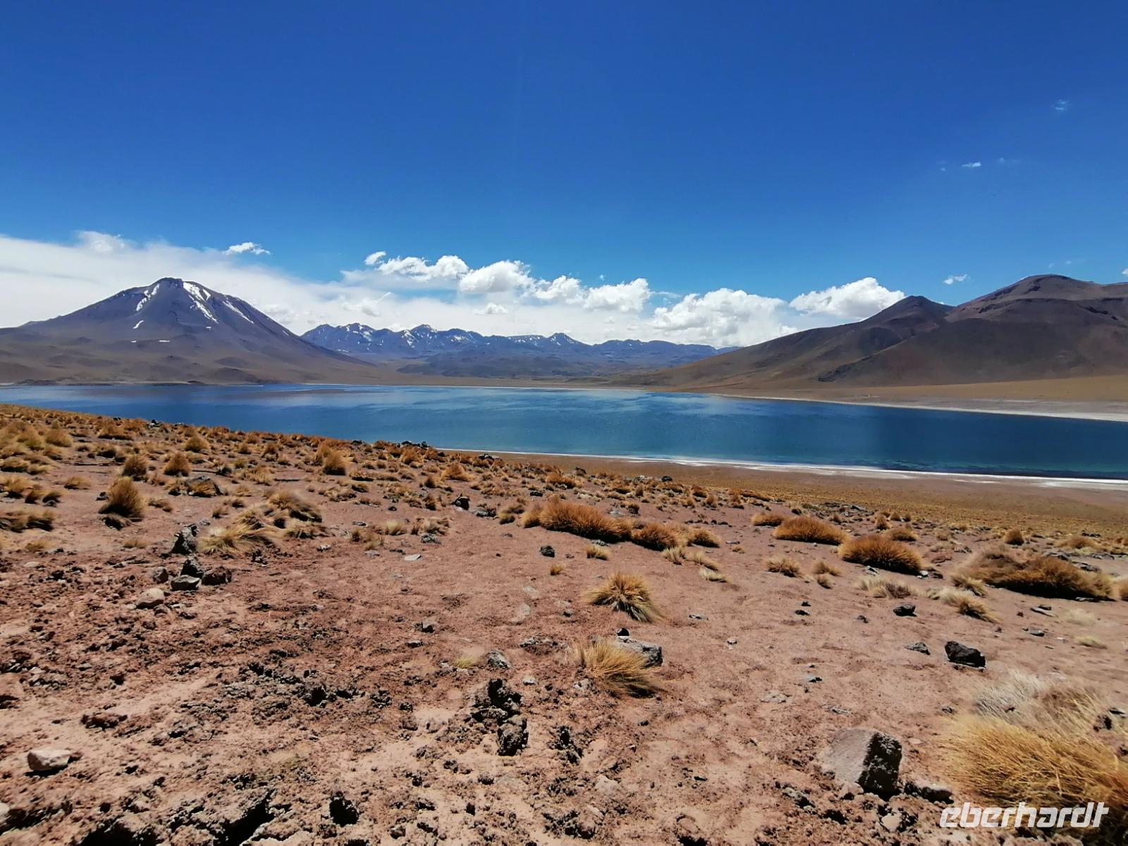 Unser zweiter Tag in der Atacama-Wüste begann mit einem leckeren Frühstück und wir testeten den berühmten Cocatee. Der Tee soll gegen Höhenkrankheiten helfen und da wir heute die Lagunen im Hochland besichtigten, verkosteten wir rein provisorisch den Cocatee beim Frühstück. Mit dem Bus ging es dann Richtung Hochland und einer Fahrt von ca. zwei Stunden machten wir unsere erste Pause in Toconao. Der kleine Ort wird geprägt durch seine Kirche und seinen schönen dekorierten Hauptplatz. Hier gab es Zeit, um Kleinigkeiten zu kaufen wie Cocablätter, Souvenirs oder auch Wasser. Das nächste Highlight sollte die Lagunen Miscanti und Miniques werden. Bei einem kleinen Spaziergang konnten wir die wunderschöne Landschaft entdecken. Die beiden Lagunen lange wunderschön in einem kleinen Tal umringt von einer hohen Gebirgskette. Das fantastische Panorama brachte uns zum Träumen. Jeder spazierte in seinem Tempo und wir machten eine Menge von Bildern. In der Ferne konnten wir sogar Flamingos und Alpakas entdecken. Nach ausreichend Zeit an diesem außergewöhnlich schönen Platz fuhren wir zurück nach Socaine. Hier nahmen wir unser Mittagessen in einem kleinen örtlichen Restaurant ein. Nach dem leckeren Essen spazierten wir zur kleinen Kirche von Socaine. Nach dem Mittagessen fuhren wir weiter nach Salar de Atacama. Der Salzsee liegt ca. 2400 Meter über dem Meeresspiegel. Wir spazierten entlang einen kleinen Lehrpfad des und unser Reiseleiter Erik erklärt uns eine Menge über die Flora und Fauna und Entstehung des Salzes. Zudem entdeckt mir eine Vielzahl an Flamingos und kleine Geckos, die sich in der Atacama Wüste angepasst haben. Gegen Nachmittag hätten wir zurück nach Sao Pedro und Abendessen man einen örtlichen Restaurant Aa la carte gemütlich zu abends. Eine schöne Zeit in der Atacama Wüste neigt sich dem Ende entgegen und wir stießen mit einem Pisco Sour auf die schönen Tage an.