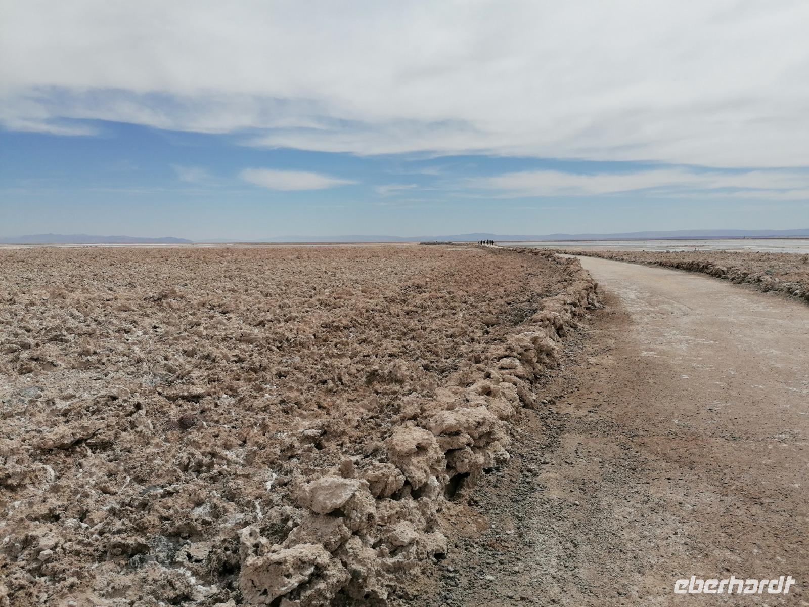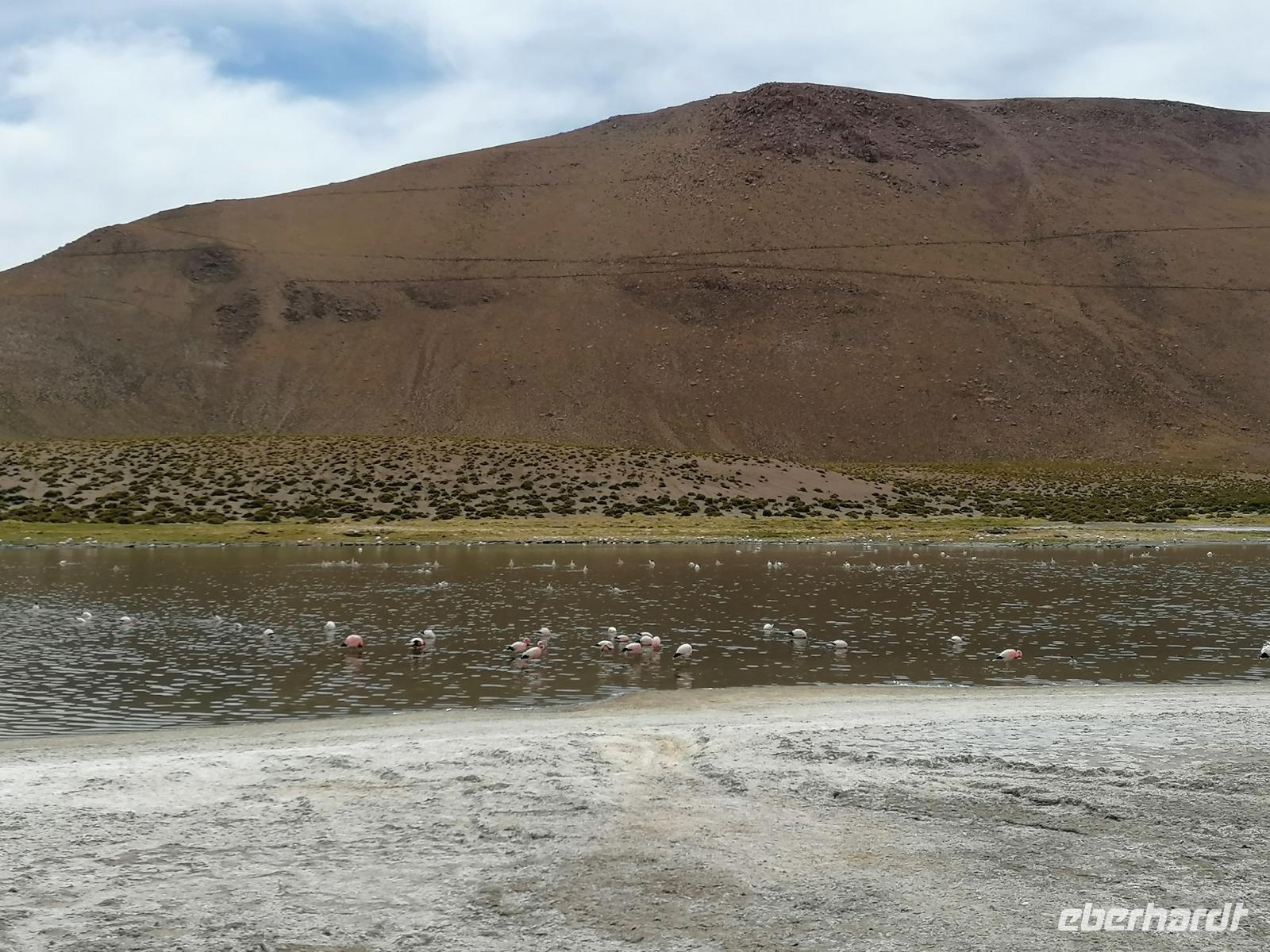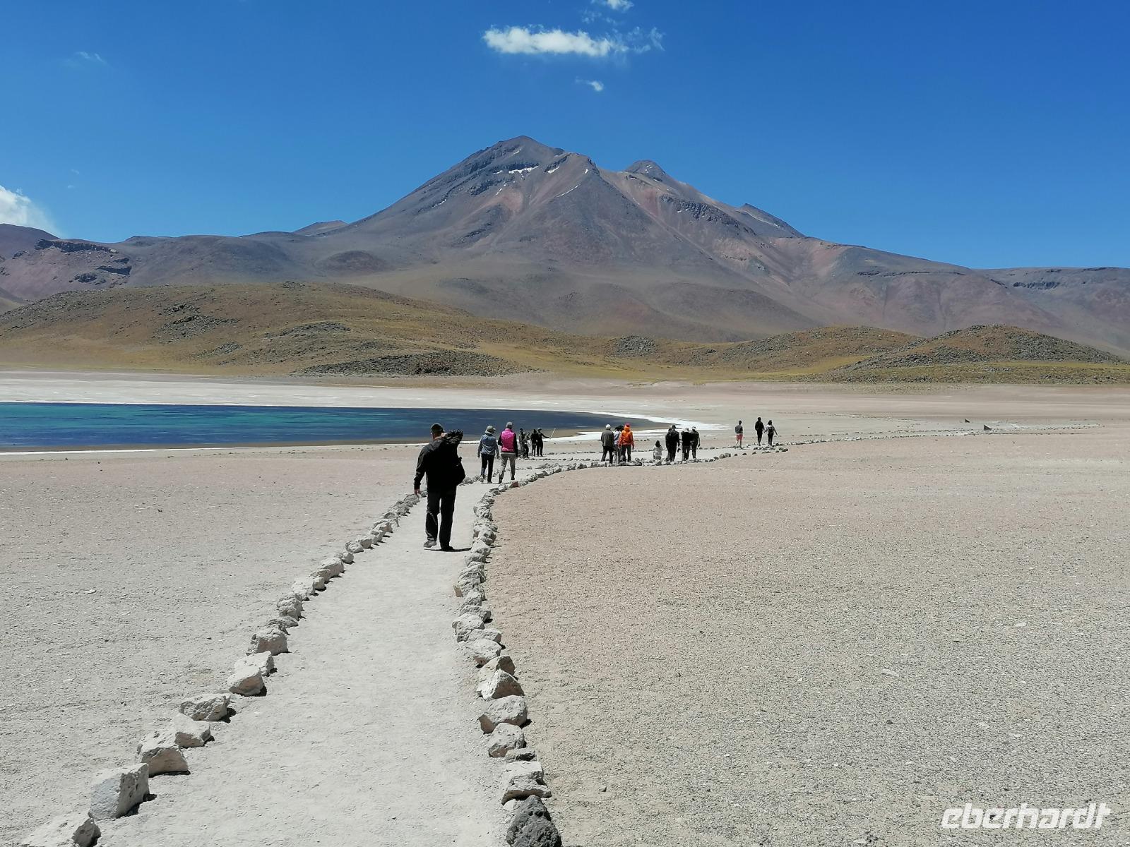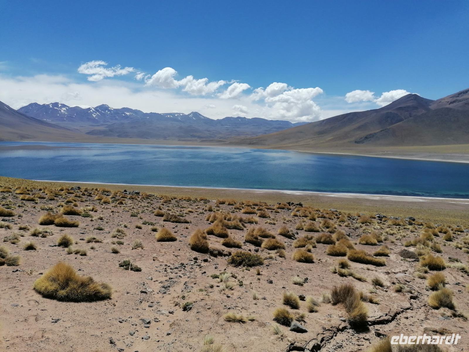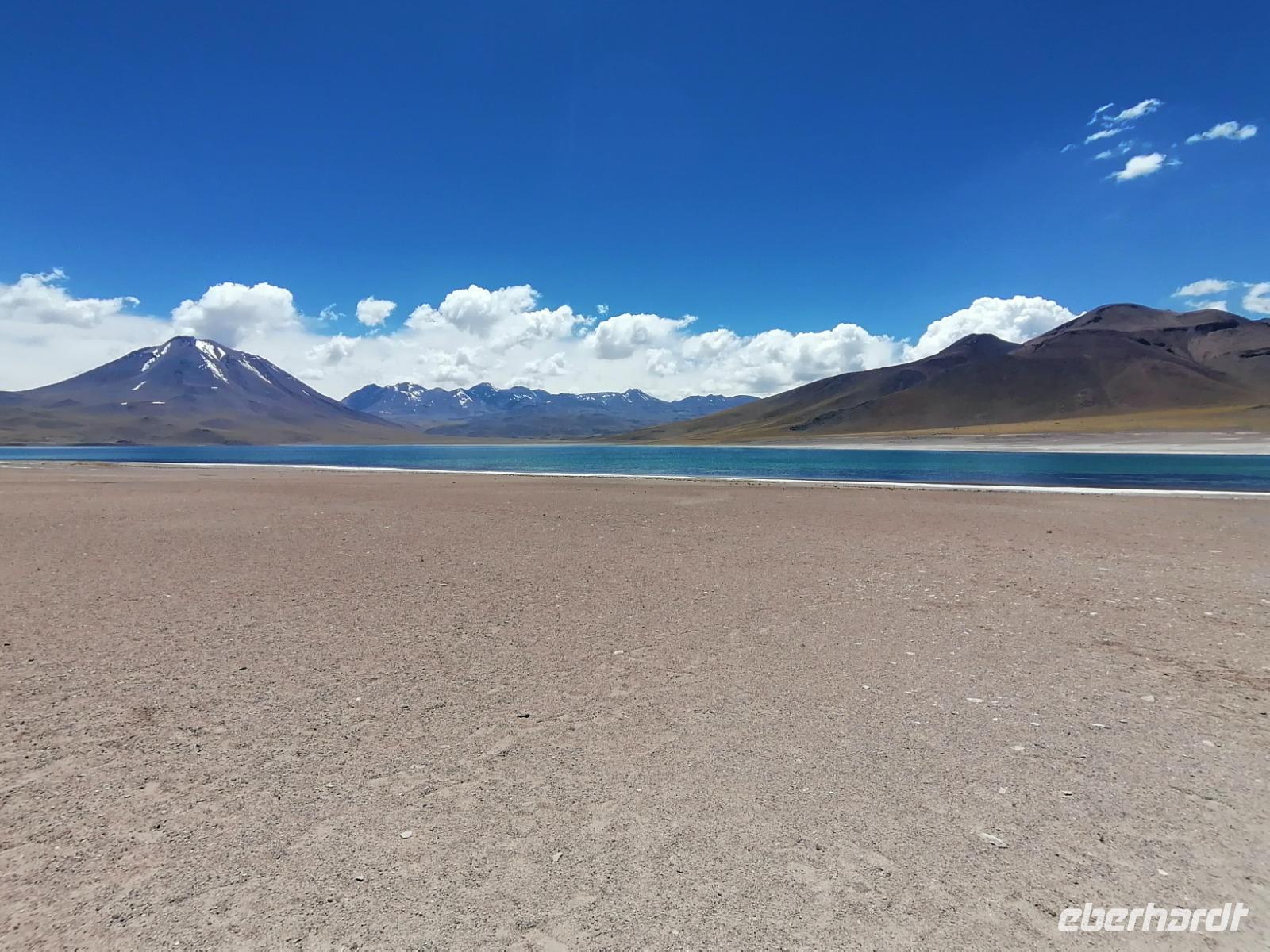 Unser zweiter Tag in der Atacama-Wüste begann mit einem leckeren Frühstück und wir testeten den berühmten Cocatee. Der Tee soll gegen Höhenkrankheiten helfen und da wir heute die Lagunen im Hochland besichtigten, verkosteten wir rein provisorisch den Cocatee beim Frühstück. Mit dem Bus ging es dann Richtung Hochland und einer Fahrt von ca. zwei Stunden machten wir unsere erste Pause in Toconao. Der kleine Ort wird geprägt durch seine Kirche und seinen schönen dekorierten Hauptplatz. Hier gab es Zeit, um Kleinigkeiten zu kaufen wie Cocablätter, Souvenirs oder auch Wasser. Das nächste Highlight sollte die Lagunen Miscanti und Miniques werden. Bei einem kleinen Spaziergang konnten wir die wunderschöne Landschaft entdecken. Die beiden Lagunen lange wunderschön in einem kleinen Tal umringt von einer hohen Gebirgskette. Das fantastische Panorama brachte uns zum Träumen. Jeder spazierte in seinem Tempo und wir machten eine Menge von Bildern. In der Ferne konnten wir sogar Flamingos und Alpakas entdecken. Nach ausreichend Zeit an diesem außergewöhnlich schönen Platz fuhren wir zurück nach Socaine. Hier nahmen wir unser Mittagessen in einem kleinen örtlichen Restaurant ein. Nach dem leckeren Essen spazierten wir zur kleinen Kirche von Socaine. Nach dem Mittagessen fuhren wir weiter nach Salar de Atacama. Der Salzsee liegt ca. 2400 Meter über dem Meeresspiegel. Wir spazierten entlang einen kleinen Lehrpfad des und unser Reiseleiter Erik erklärt uns eine Menge über die Flora und Fauna und Entstehung des Salzes. Zudem entdeckt mir eine Vielzahl an Flamingos und kleine Geckos, die sich in der Atacama Wüste angepasst haben. Gegen Nachmittag hätten wir zurück nach Sao Pedro und Abendessen man einen örtlichen Restaurant Aa la carte gemütlich zu abends. Eine schöne Zeit in der Atacama Wüste neigt sich dem Ende entgegen und wir stießen mit einem Pisco Sour auf die schönen Tage an.