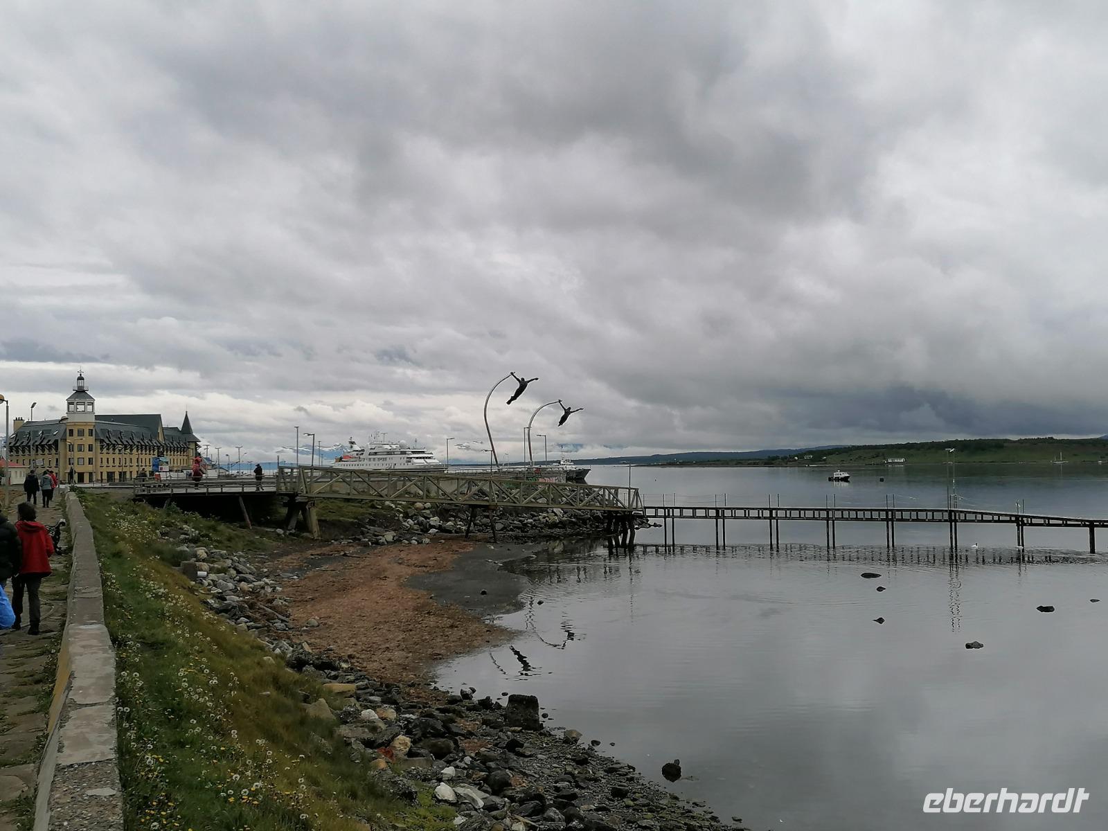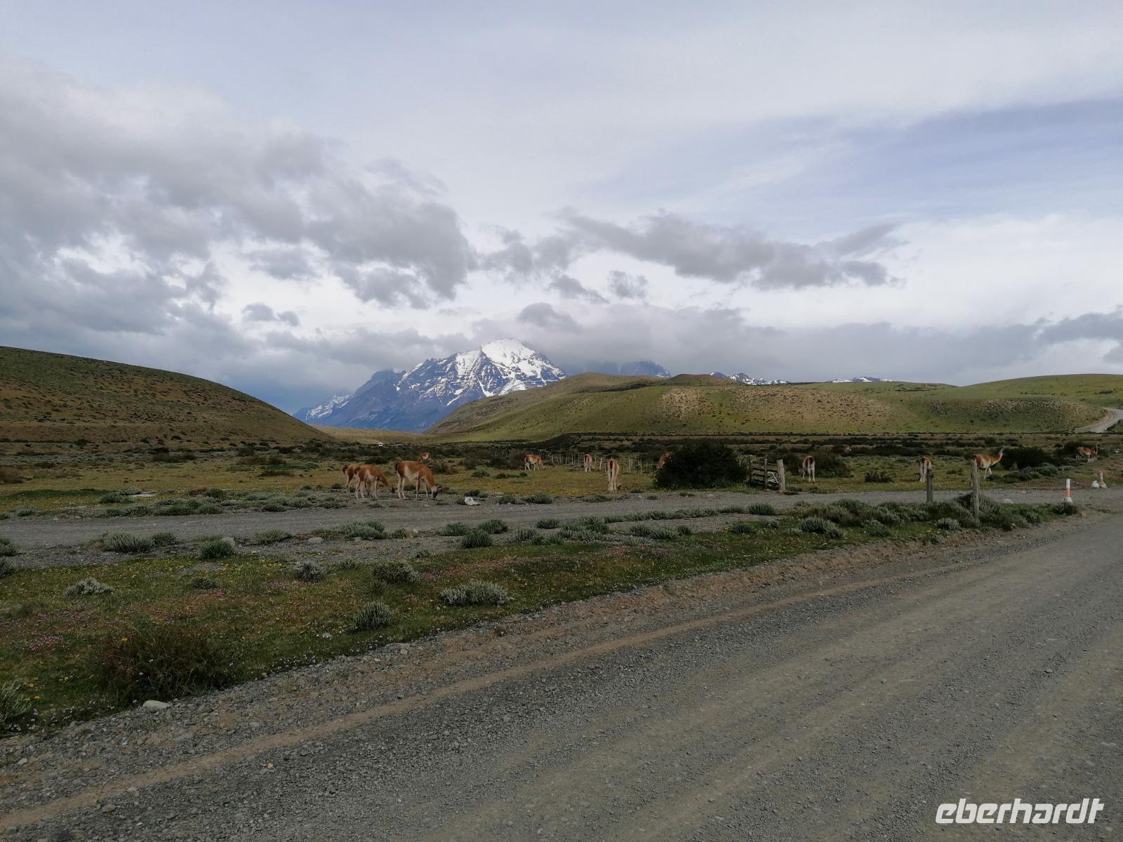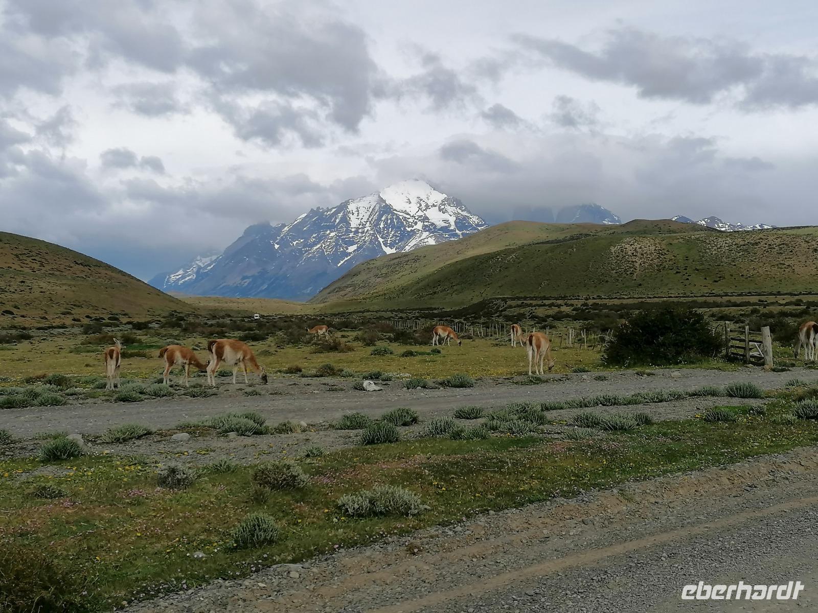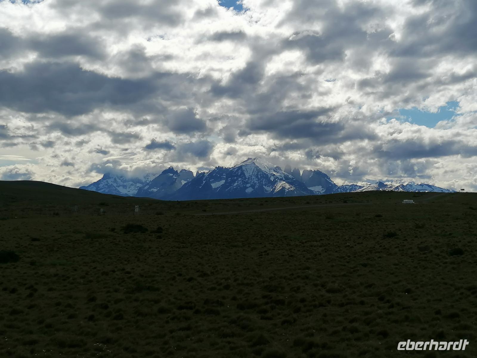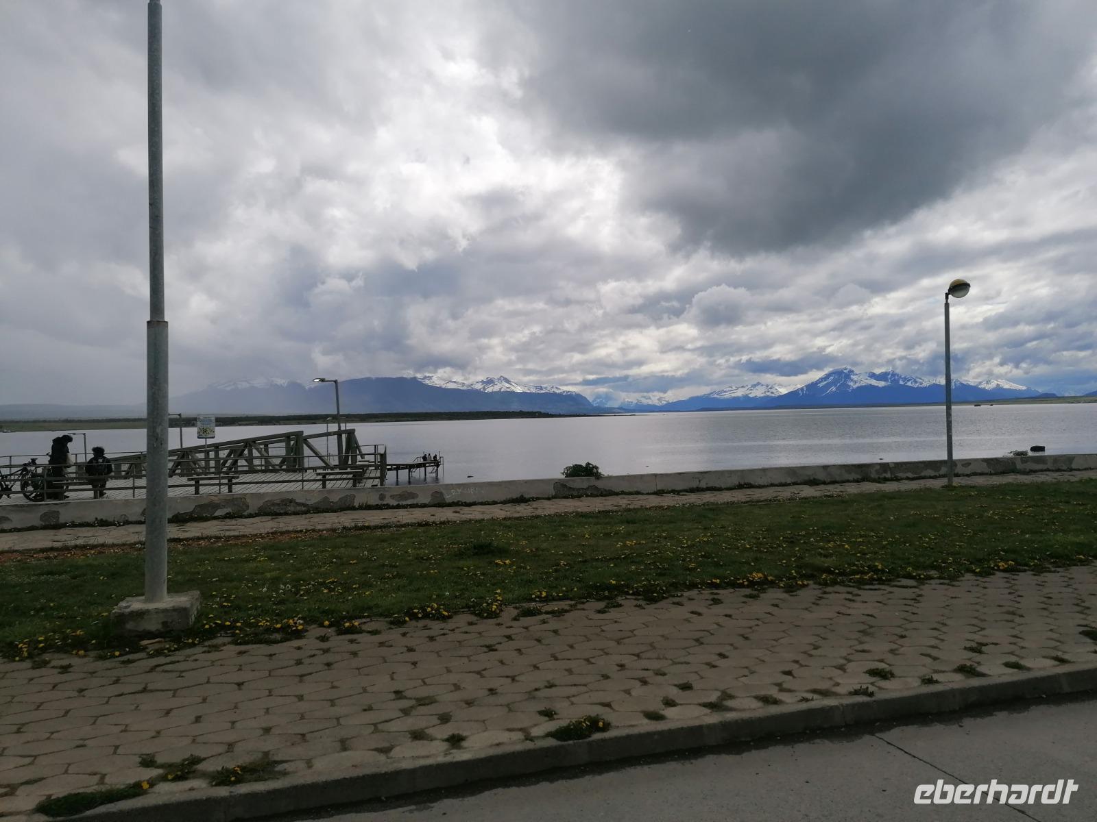 Schon früh am Morgen hieß es Abschied von der chilenischen Hauptstadt Santiago de Chile nehmen. Wir waren erleichtert, dass wir die Tage in Santiago de Chile so positiv gestalten konnten. Aber jetzt freuen wir uns auf Patagonien. Mit dem ersten Flieger flogen wir von der Hauptstadt nach Punta Arenas. Nachdem alle Koffer eingetroffen waren, wie uns mit Wasser versorgt hatten, gingen wir zum Bus. Leider hatten wir nicht ganz so viel Glück mit dem Wetter, aber wir waren guter Dinge und freuten uns auf Patagonien. In Puntarenas war es am Vortag zu Ausschreitungen gekommen, sodass wir nicht ins Zentrum fuhren. Nach einer kleinen Fahrtstrecke machten wir unseren ersten Stopp. Bei einem kleinen Café holen wir unser Frühstück nach und stärken uns mit einem frischen Sandwich und einen Kaffee. Weiter führt uns unser Route nach Puerto Natales. Hier machten wir einen kleinen Spaziergang entlang der Promenade und knipsen viele Bilder von dem wunderschönen Bergpanorama in Hintergrund und der Strandpromenade. Da wir mittlerweile die Mittagszeit erreicht hatten, beschlossen wir in einem Restaurant zu speisen. Wir bestellten frischen Fisch, Meeresspinne, Muscheln und andere Leckereien. Nach dem Mittagessen hielten wir noch bei einem kleinen Supermarkt und fuhren weiter in den Nationalpark Torres del Paine. Die letzte Teilstrecke unsere Route führte über eine Schotterstraße bis hin in unser Hotel, das mitten in den Nationalpark Torres del Paine gelegen war. Auch hier war das Wetter uns nicht hold, aber wir wärmten uns im hoteleigenen Restaurant und genossen den Ausblick auf die Bergkette.